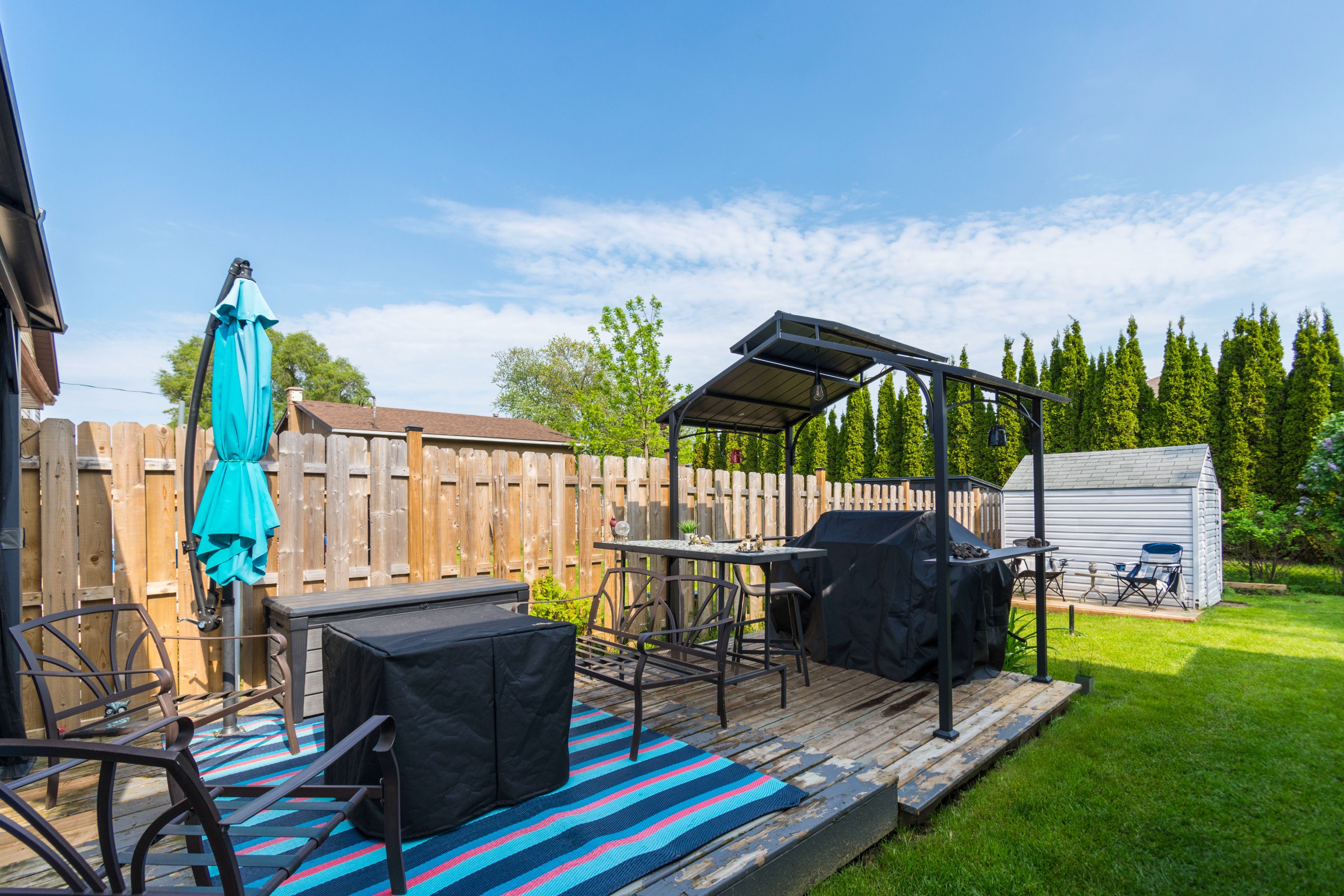 • Fully fenced backyard with an above-ground pool for summer enjoyment.
