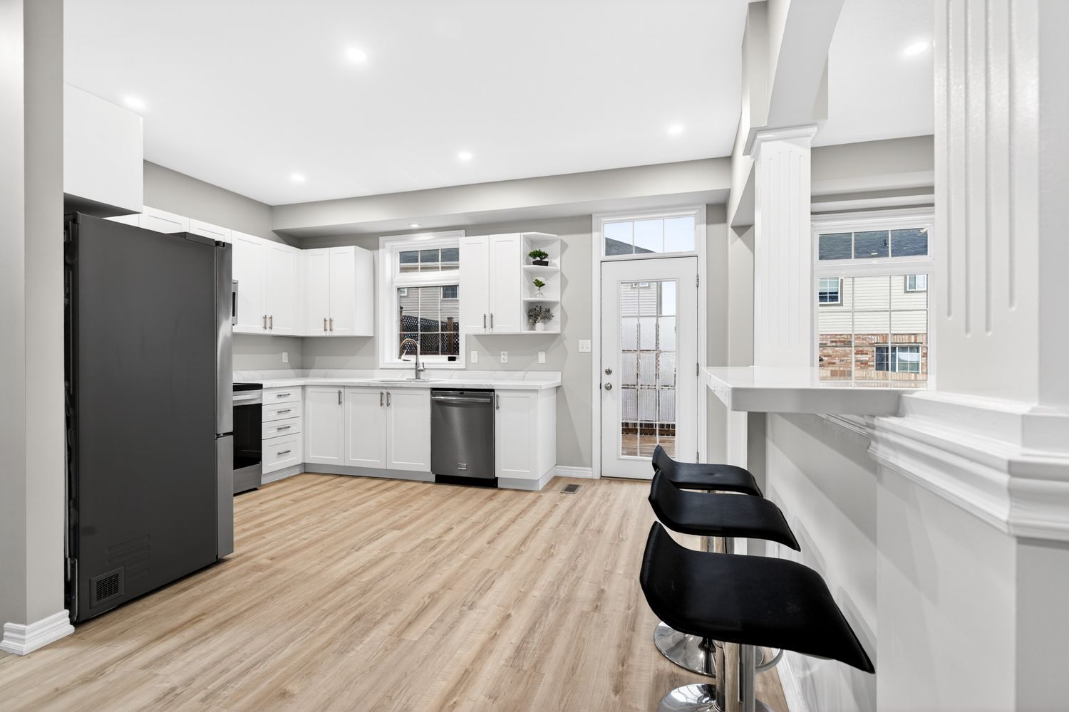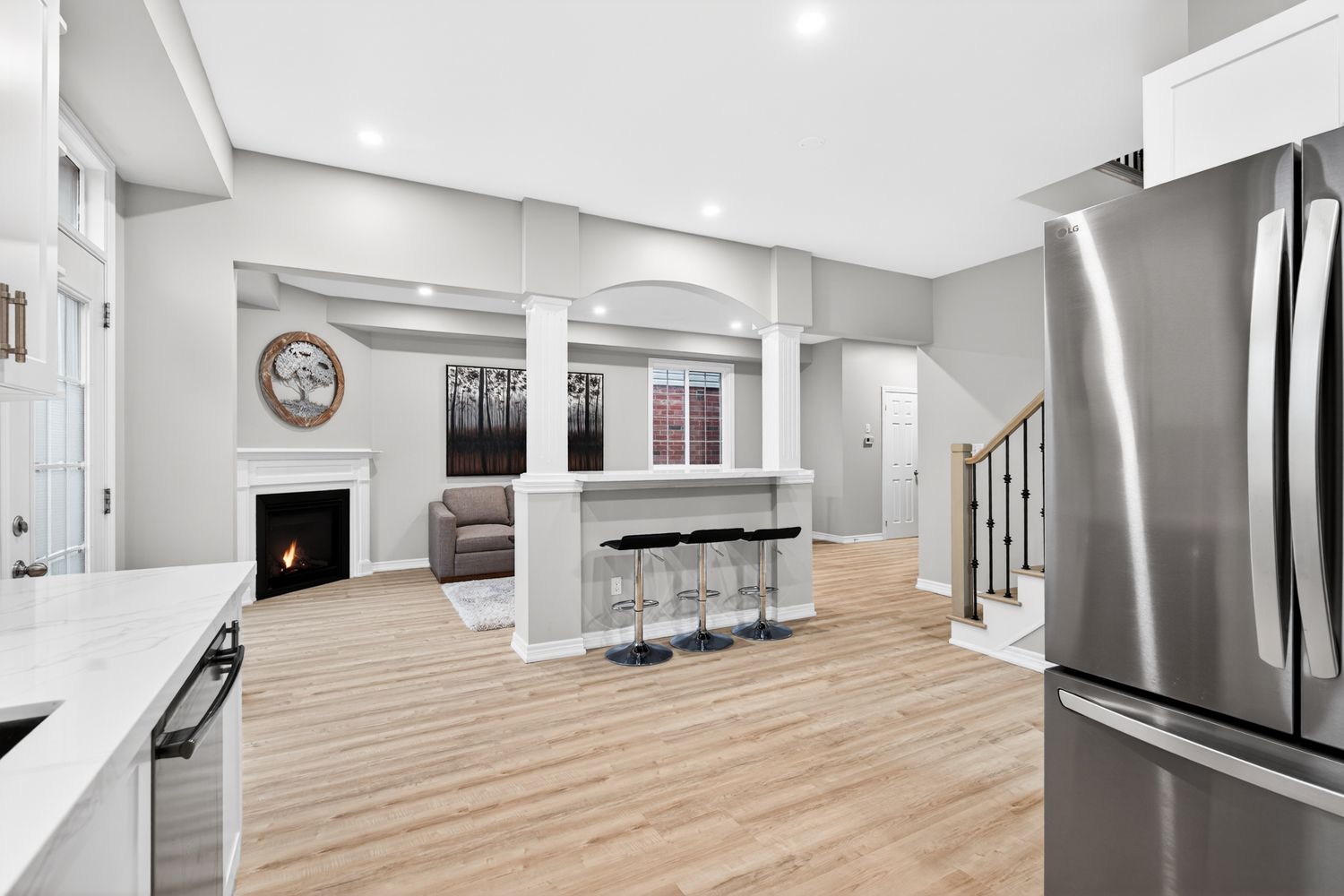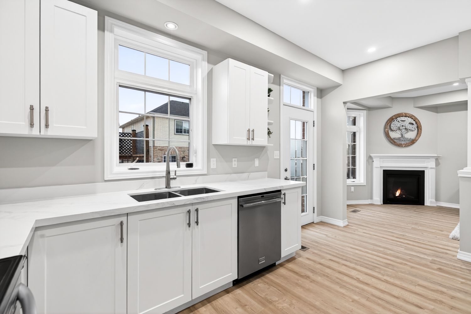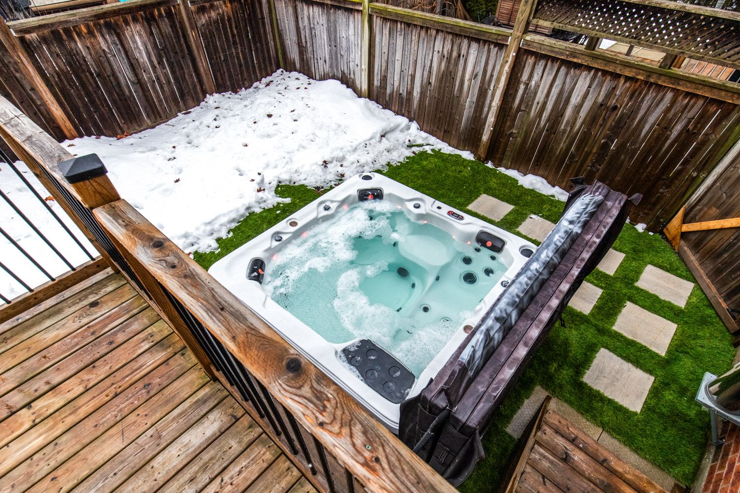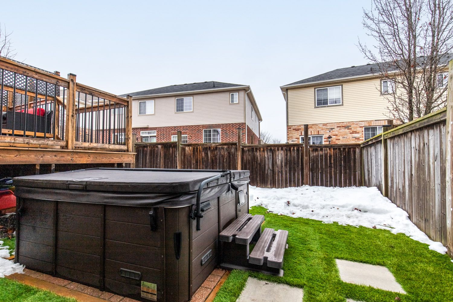 Stunning updated family home at the end of a quiet cul-de-sac in desirable waterdown! This fully finished 3-bedroom, 2. 5-bath detached home offers over 2,700 sq ft of living space and features extensive 2025 upgrades, including new flooring throughout the main and second floor, fresh paint throughout, modern pot lights on the main floor, updated bedroom and bathroom lighting, new quartz countertops, new stairs and railings, and a redesigned front entrance feature wall. The home offers two fireplaces, one gas and one wood-burning, adding warmth and character to multiple living spaces. Enjoy outdoor living with a newly installed hot tub (2025) and low-maintenance artificial grass (2025), plus a peaceful pond located at the end of the cul-de-sac. The 2-car garage features an epoxy floor, was freshly painted in 2024, and includes a mud area for added functionality. A perfect family home located close to parks, schools, shopping, highway access and more!