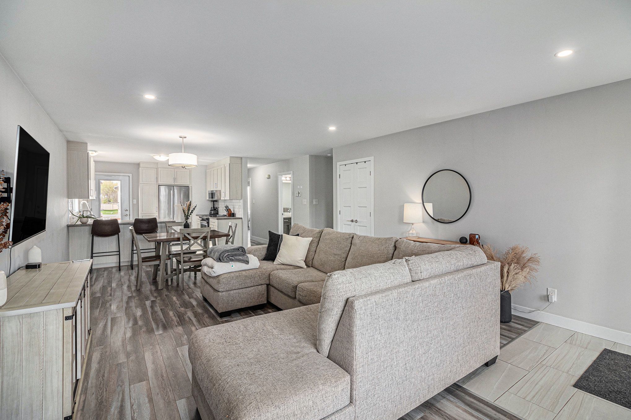 Welcome to this beautifully designed modern 3 bedroom, 3 bathroom, semi-detached home with attached garage, ideally located in a sought-after established subdivision with full municipal services and an easy commute to ottawa. The bright open-concept main floor creates a seamless flow between the living and dining areas, leading into a sleek custom kitchen featuring stainless steel appliances, a breakfast bar and contemporary finishes that make both everyday living and entertaining effortless. Offering 2+1 bedrooms and 3 full bathrooms, the spacious primary bedroom includes a walk-in closet and a private 3-piece ensuite with a tiled shower. A second bedroom and full 4-piece bathroom complete the main level. The fully finished basement expands your living space with a large family room, third bedroom, an additional 3-piece bathroom, plus dedicated laundry and storage areas. Step outside to enjoy the rear deck overlooking a fenced backyard, perfect for relaxing, barbecues or letting pets and kids play safely. A stylish home in a great location offering comfort, space and convenience. Quick commute to ottawa! *some photos have been virtually staged. As per seller direction allow 24 hour irrevocable on offers.