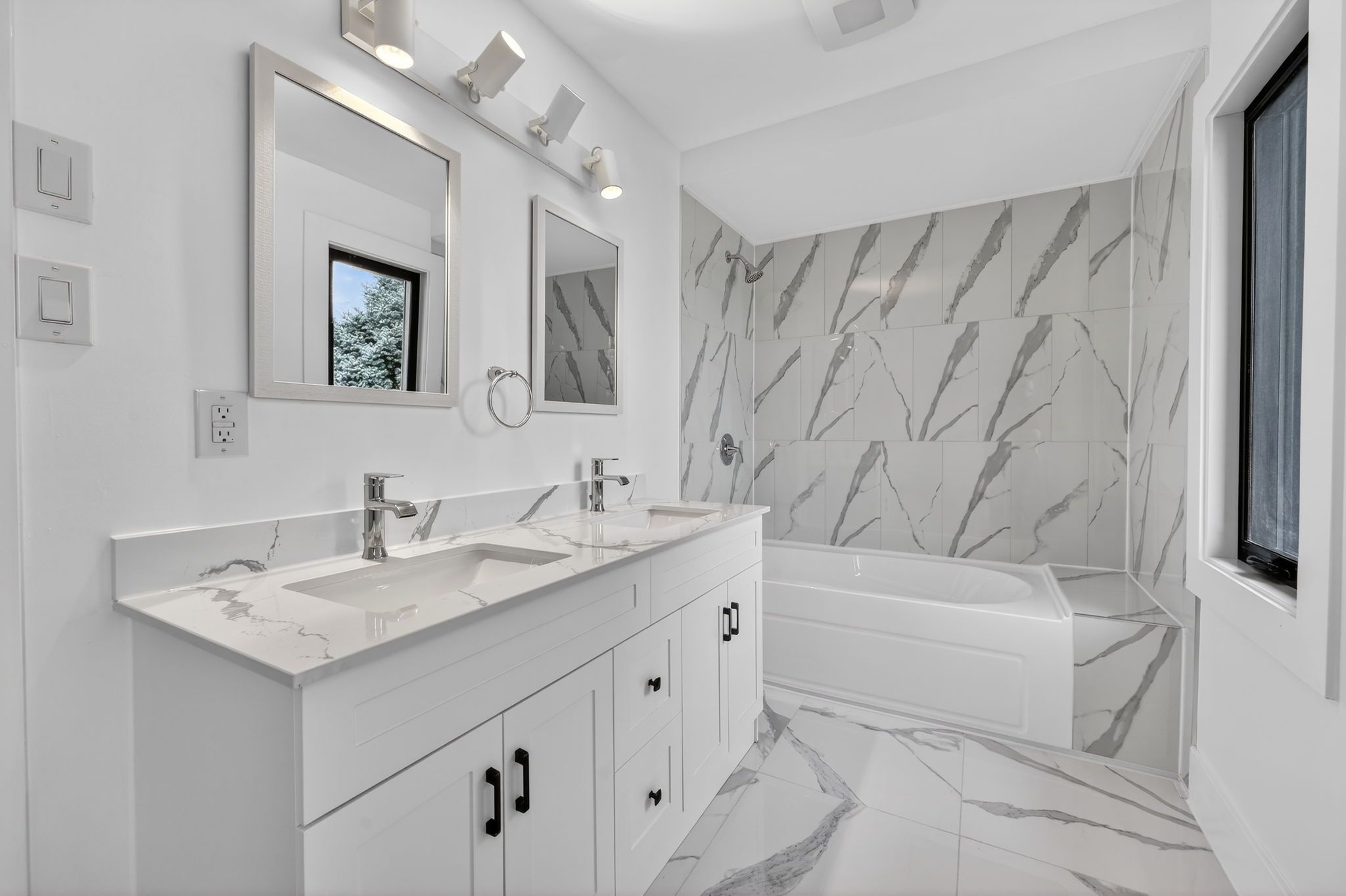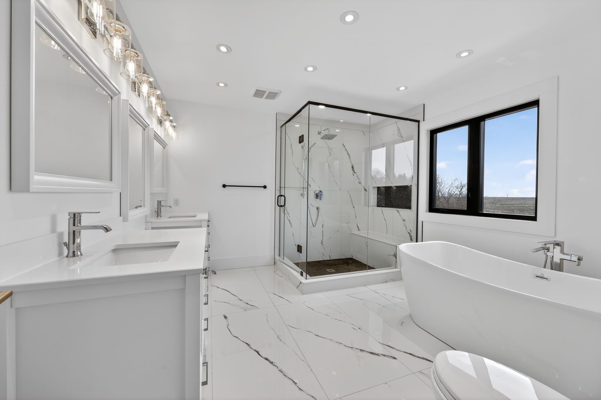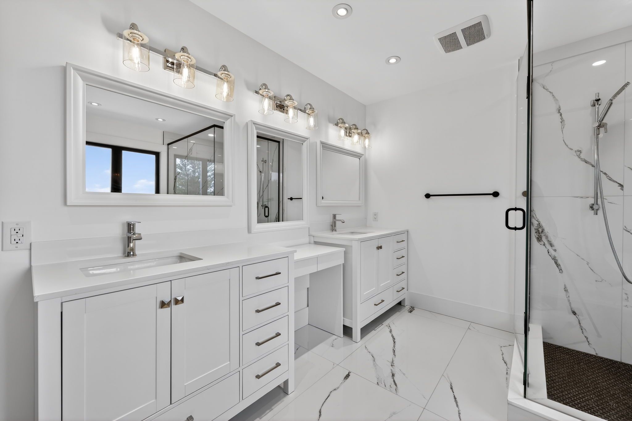 • Renovated primary suite with luxurious ensuite bathroom amenities.