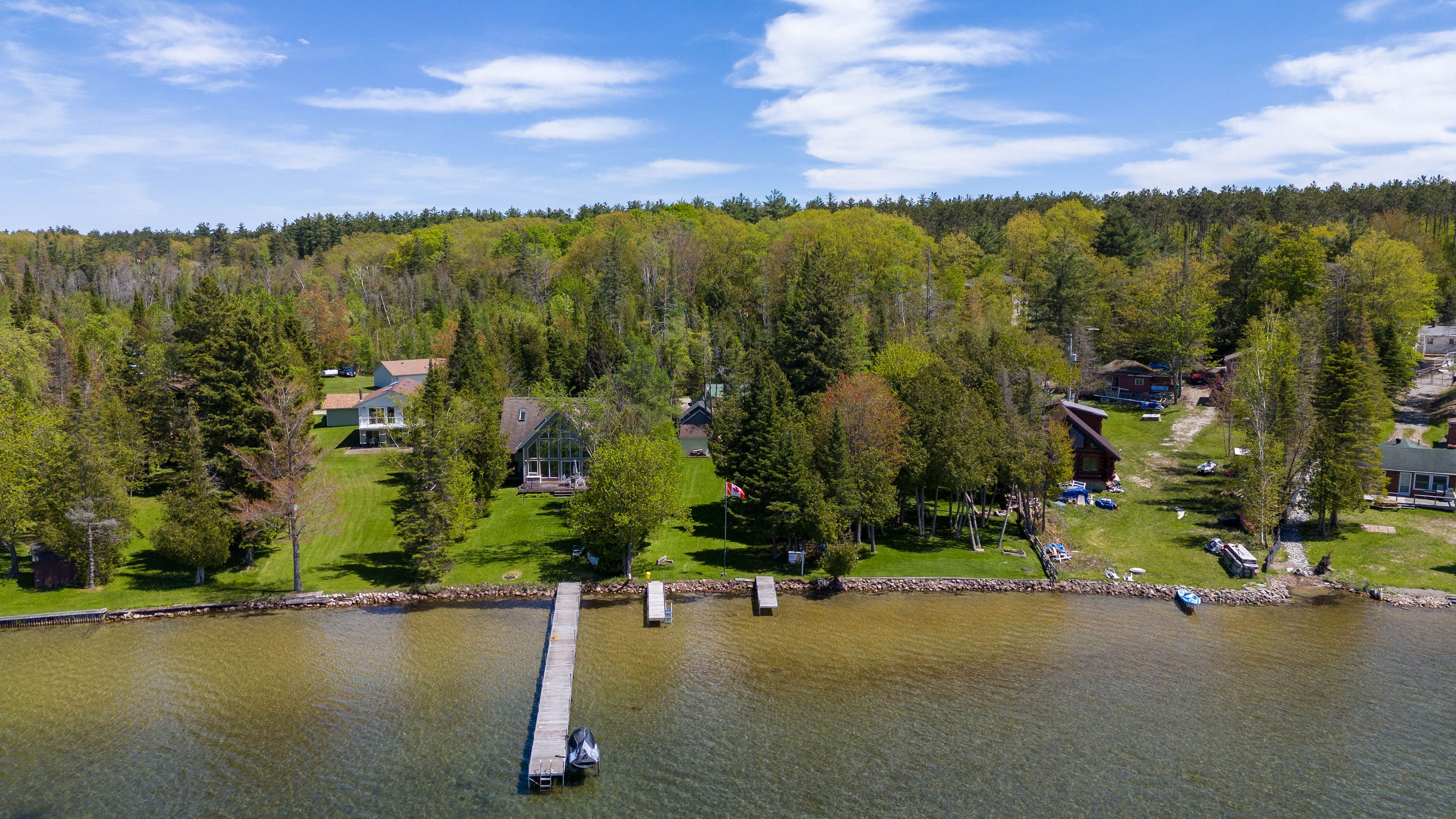 Nestled along the southern shores of orr lake, this charming seasonal one-bedroom waterfront cottage offers the perfect retreat for friends and families. Currently set up to accommodate up to 6 adults using existing sleeping arrangements, including one queen bedroom, a pull-out couch, and a futon. The cottage blends rustic charm with modern amenities, featuring a warm and inviting interior designed for relaxation. Enjoy peaceful lakefront living with desirable south-west exposure, ideal for stunning sunsets, and take full advantage of the private dock for swimming or boating. Spend your evenings gathered around the fire pit, creating unforgettable memories under the stars. The newly built garage, equipped with electrical, provides great storage and may offer potential for a future bunkie conversion, subject to all applicable approvals. Additional features include a 2000-gallon holding tank, propane heater, portable a/c unit, newer pump and water tank, plus alarm and camera system for added security. With strong income potential as a short-term rental or a serene personal getaway, this property delivers the best of waterfront living in a picturesque setting.