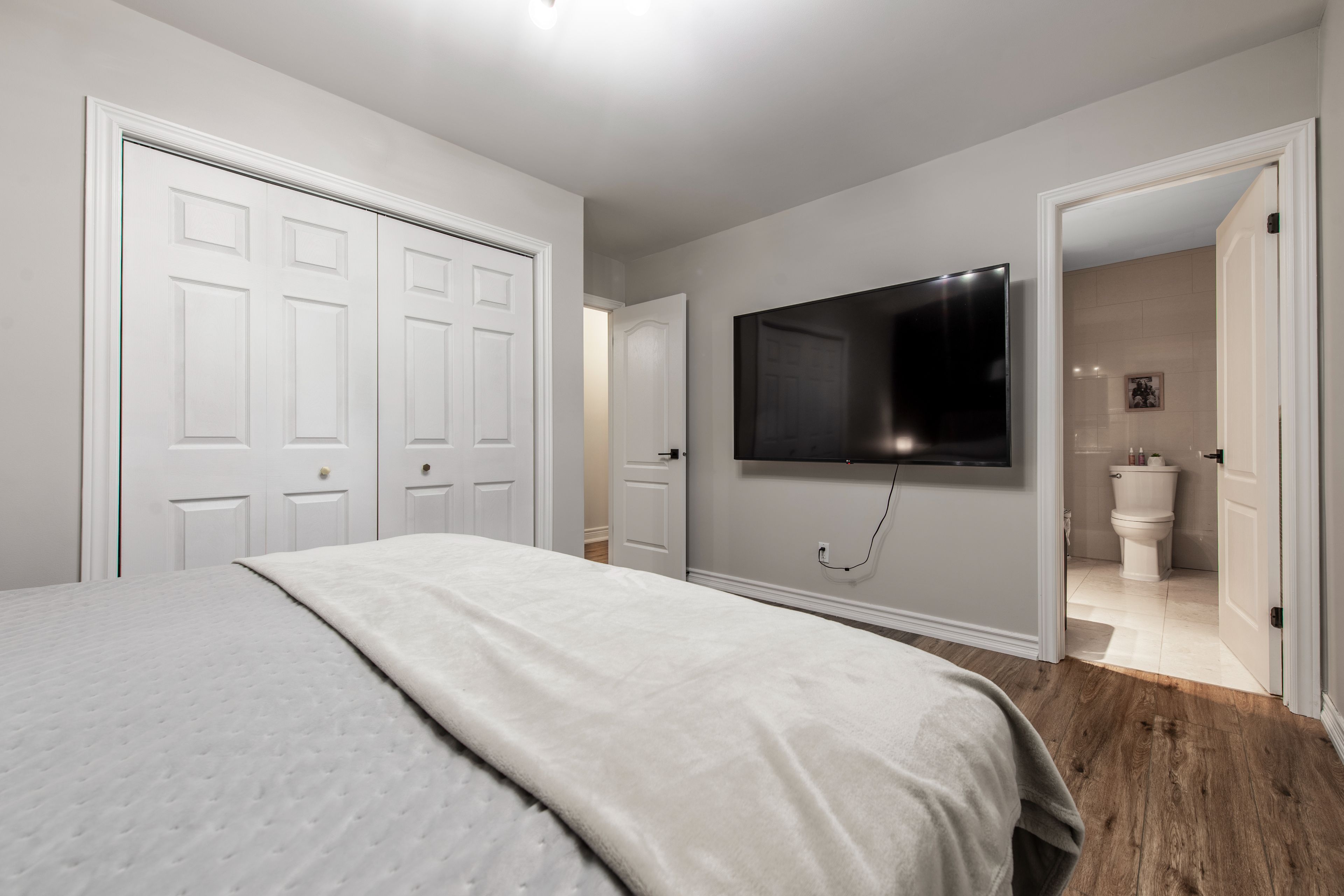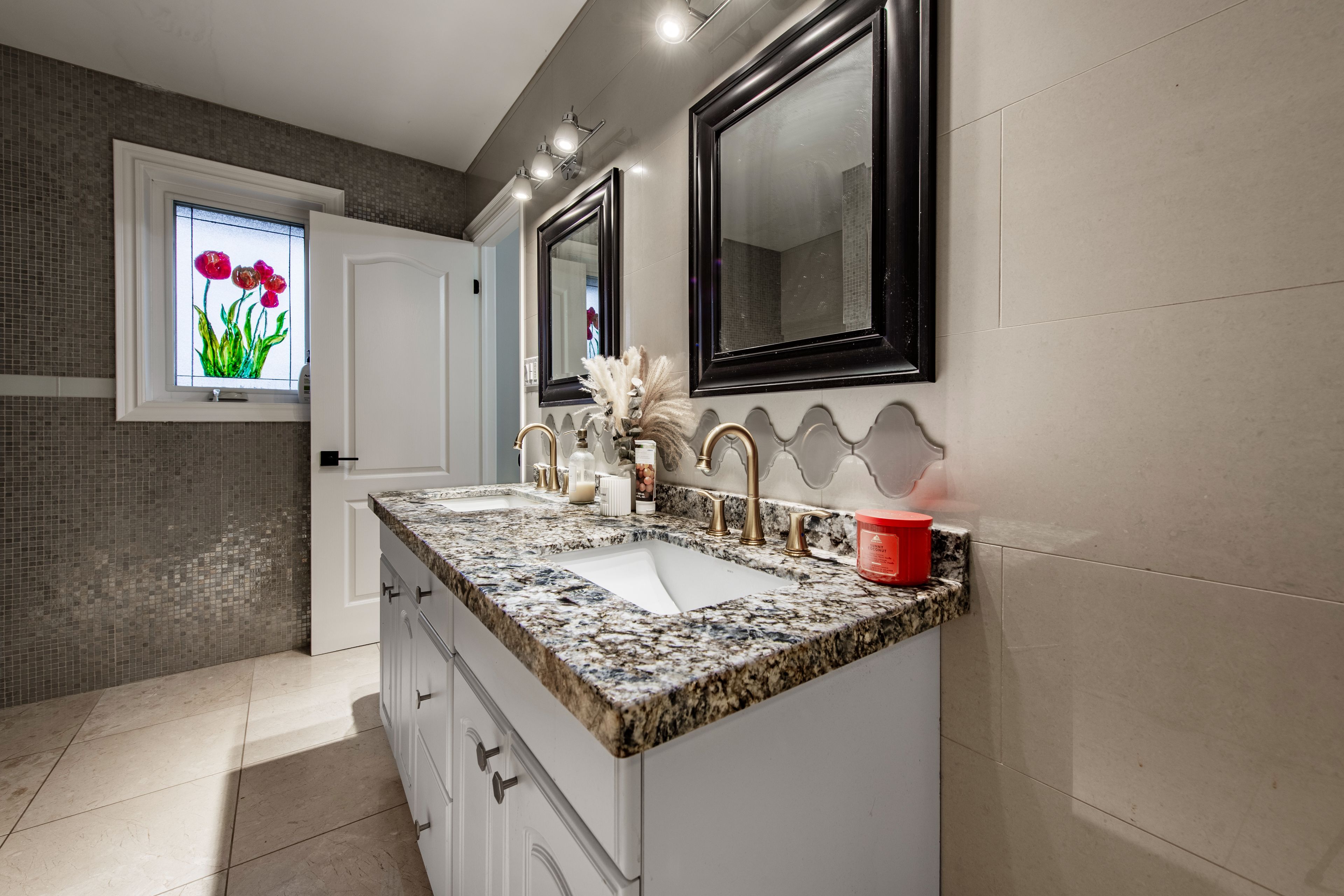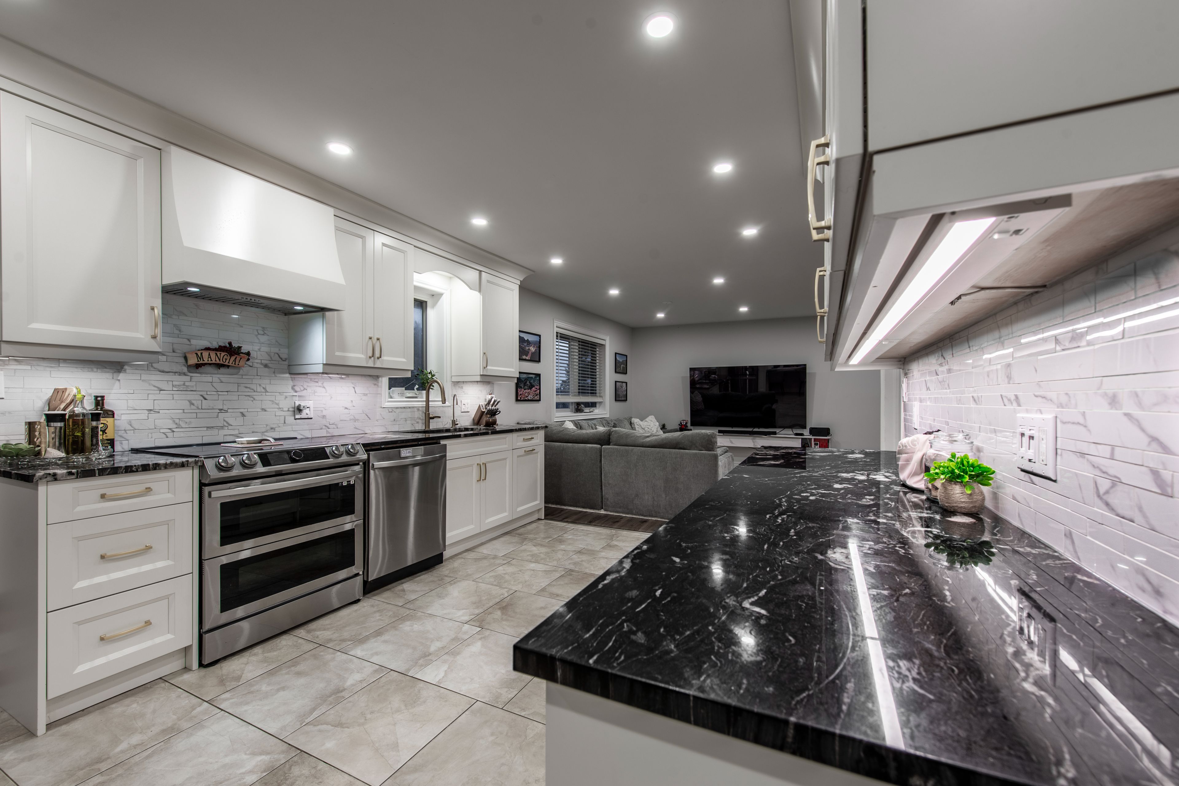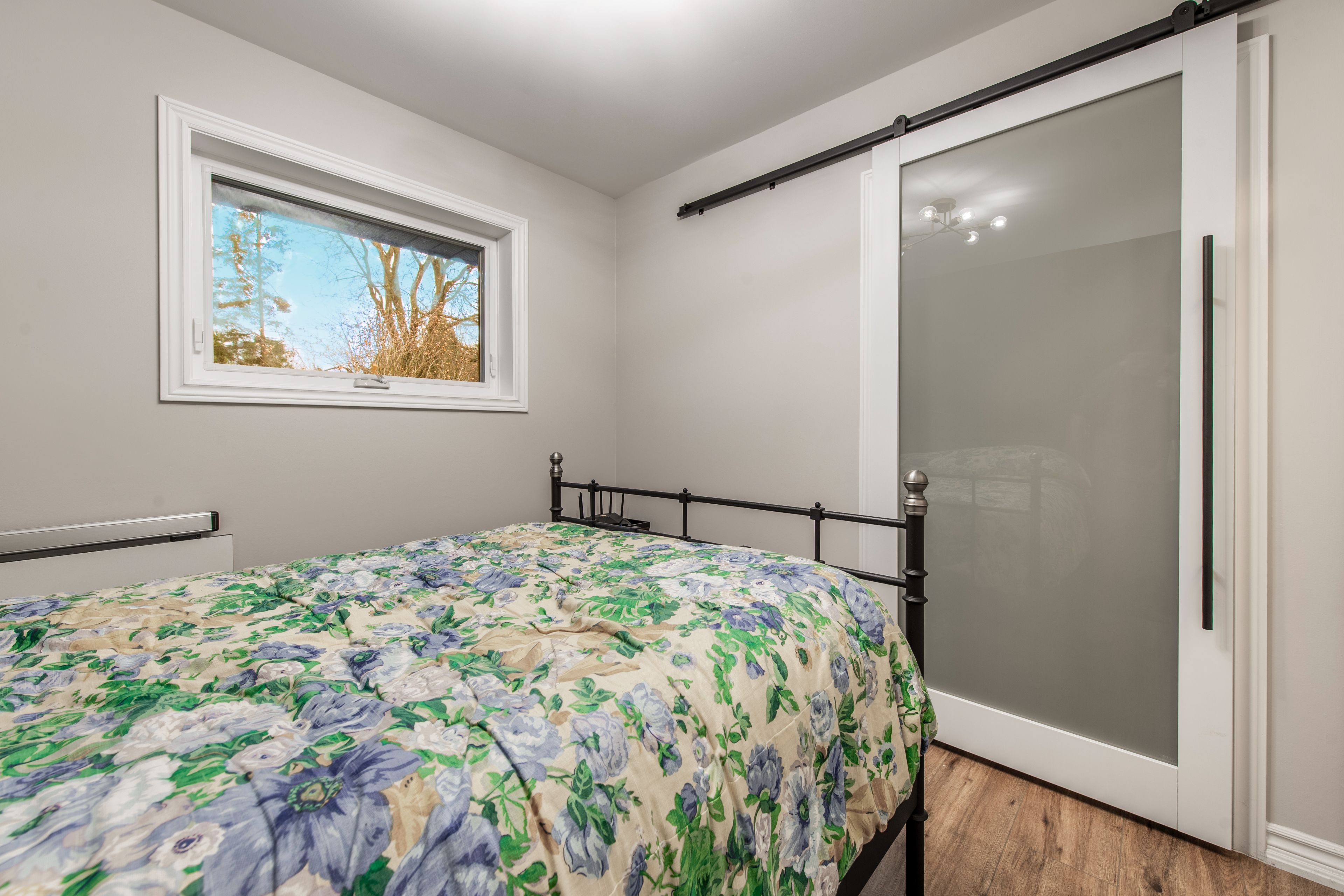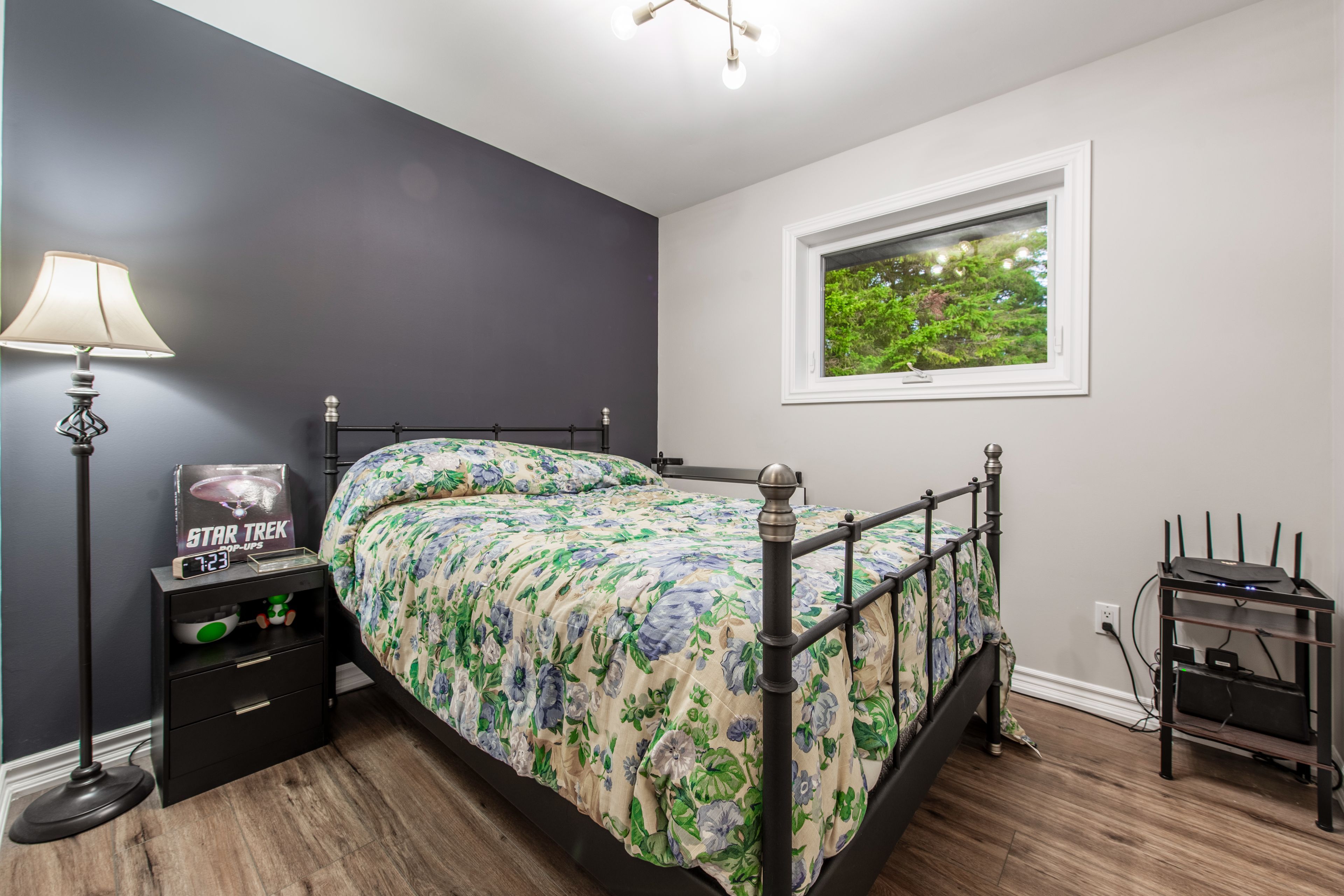 Remarkable high end bungalow in extremely quiet "keenansville" family friendly area. Large property! As you enter you are welcomed by open layout lovely modern dining,family and wonderful kitchen area with all the special touches. Enjoy the unique serene sunroom walking out to breathtaking backyard area with very private mature trees, that you are sure to spend many sunset hours in. Updated bathrooms. 3 great bedrooms. An additional bedroom in fully finished stylish lower with a 3 pc bathroom creates more ideas. Some features include : renovated kitchen w/titanium granite countertop, most flooring, driveway - all 2023; ibc on-demand hot water system , natural gas in back, 240 volt in garage, r/o system