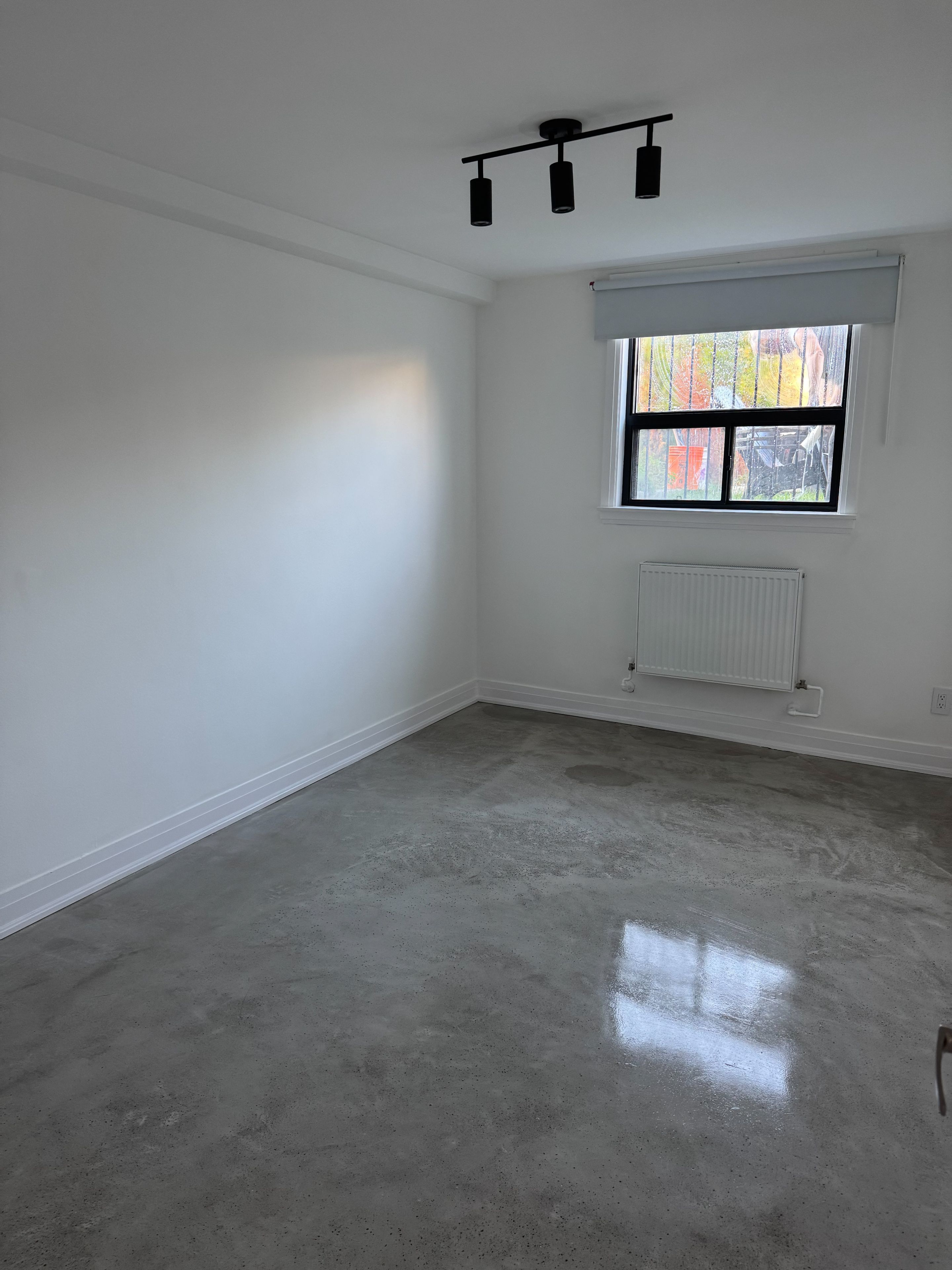 • Polished concrete floors and large windows for natural light.
