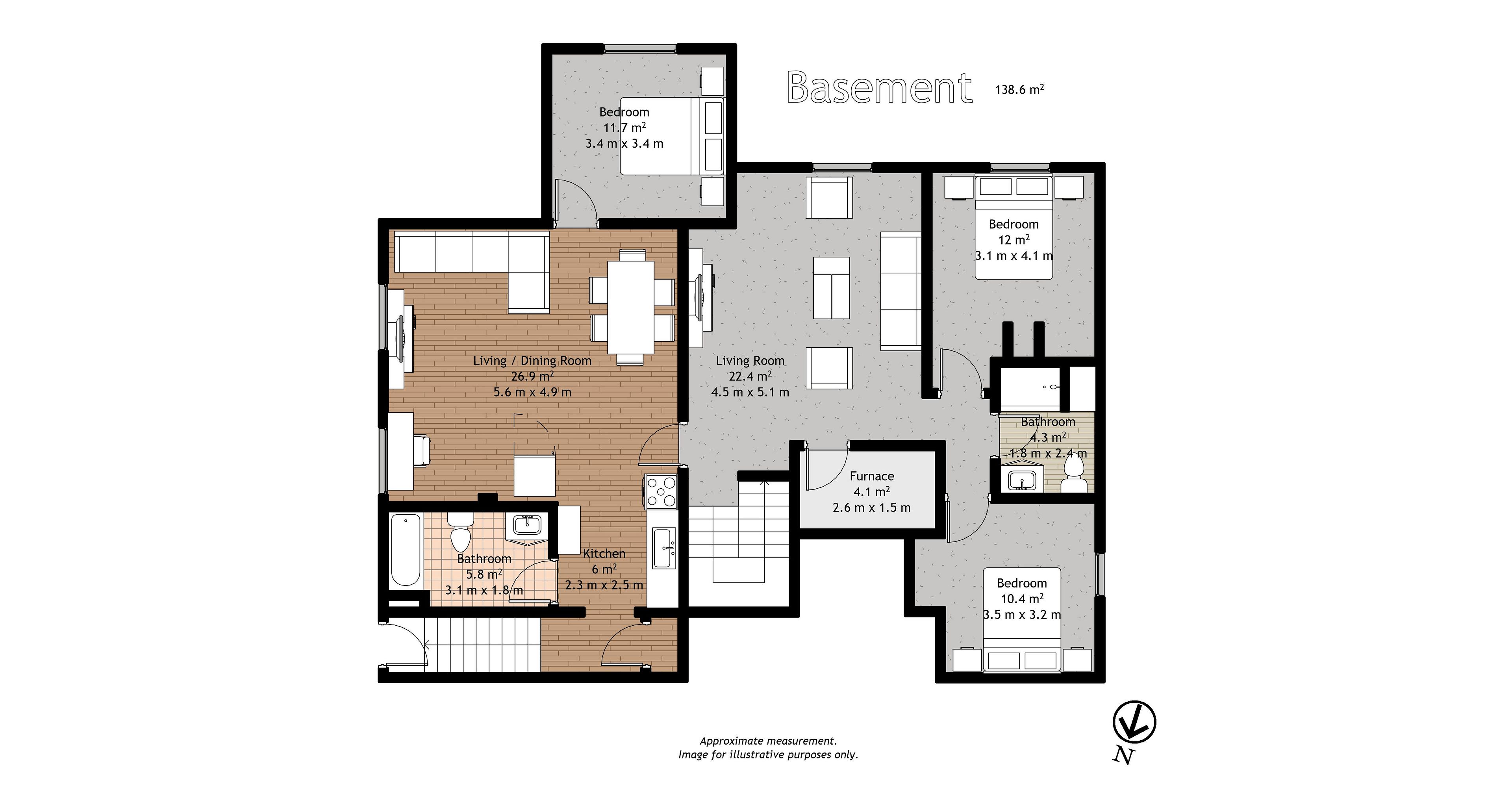 • Fully finished basement includes family room and in-law suite.