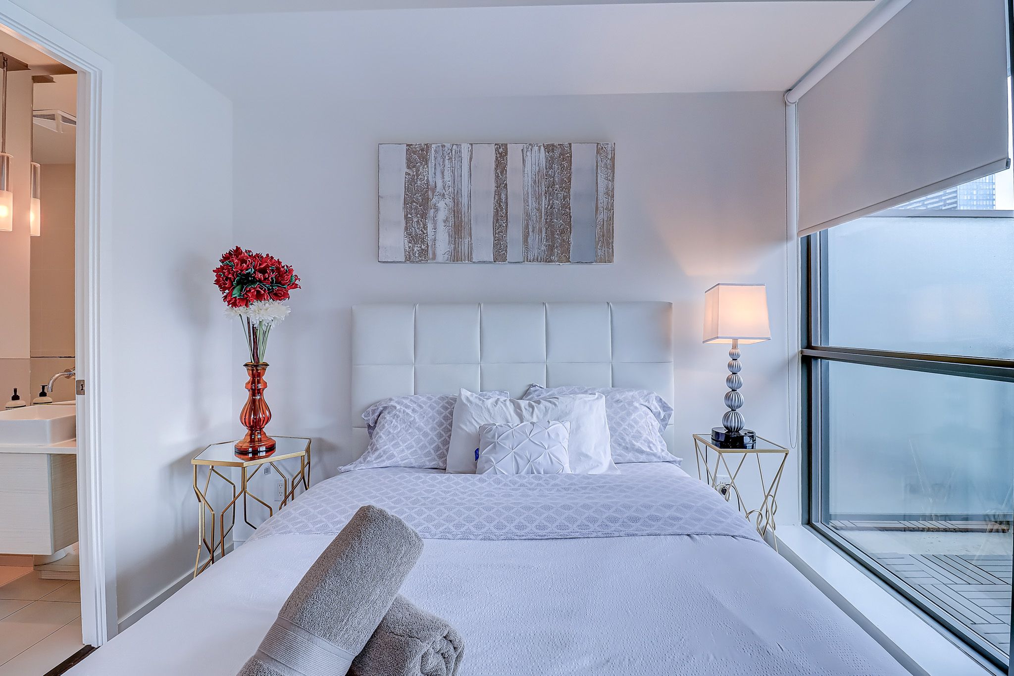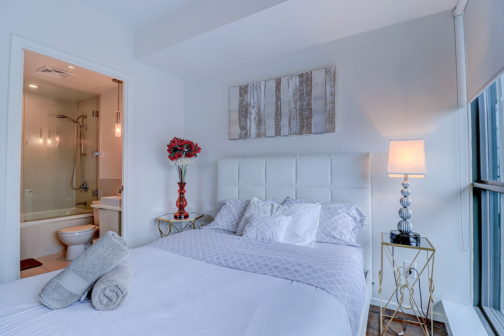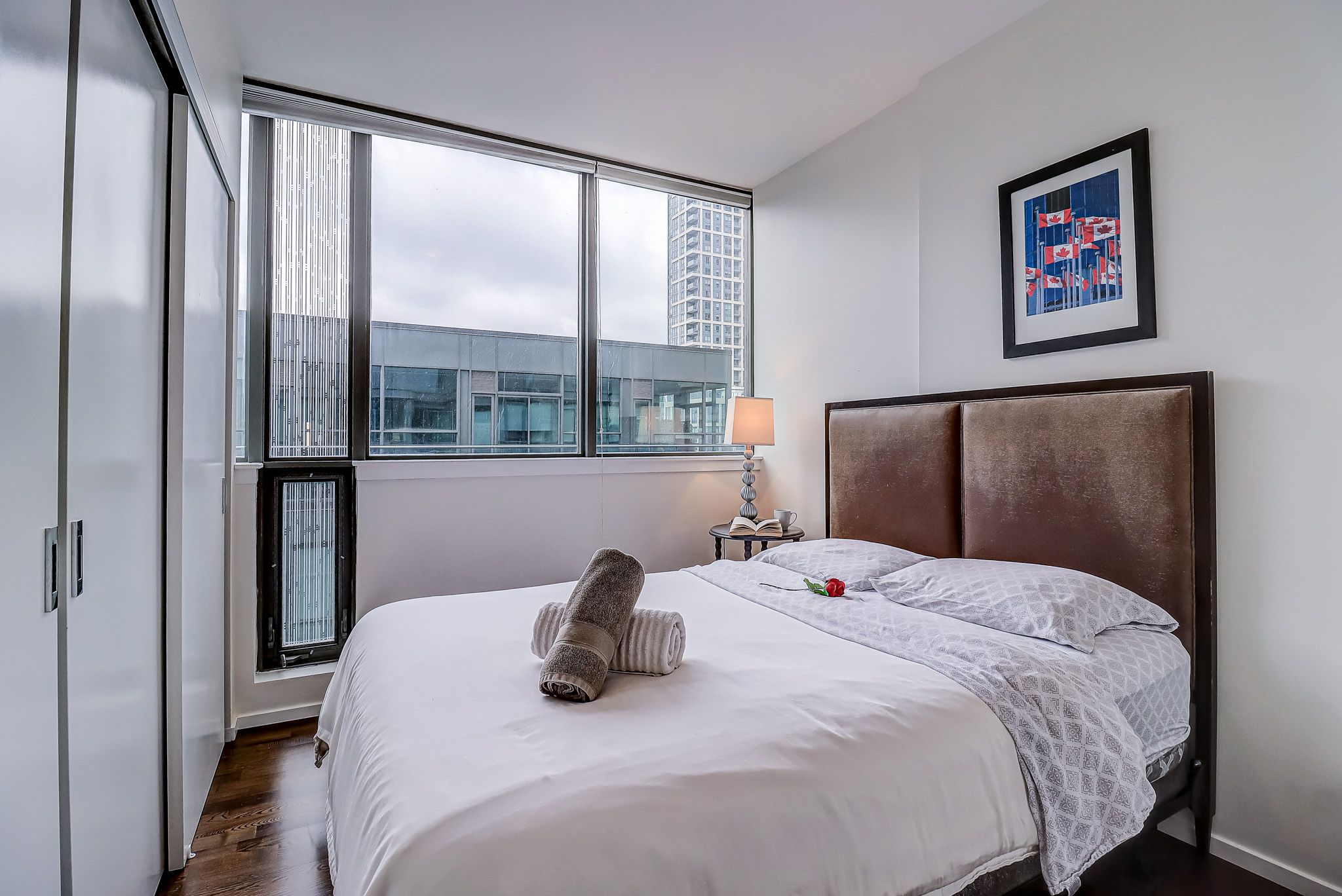 • Bright corner suite with floor-to-ceiling windows and city/lake views.