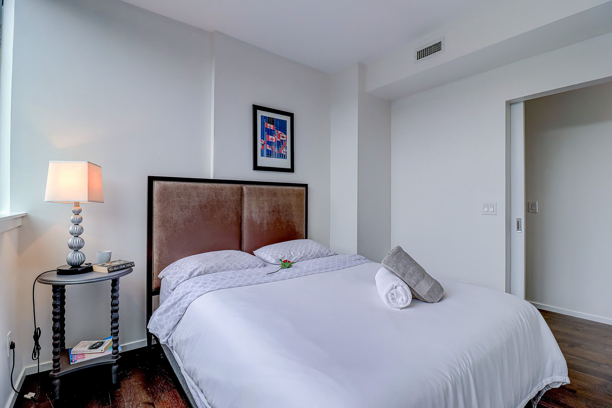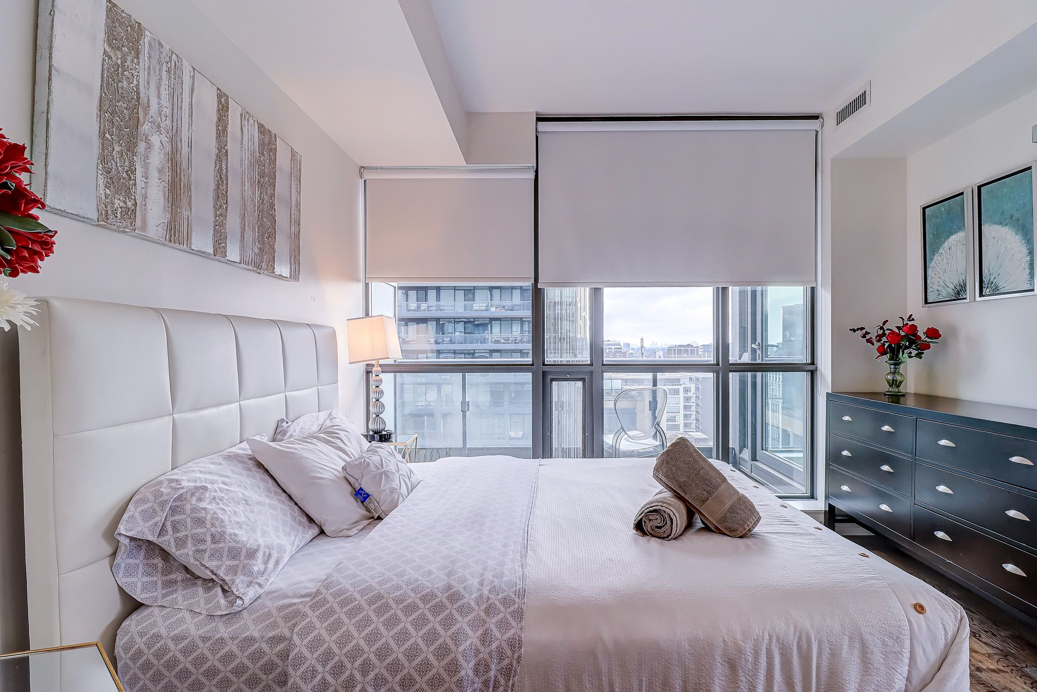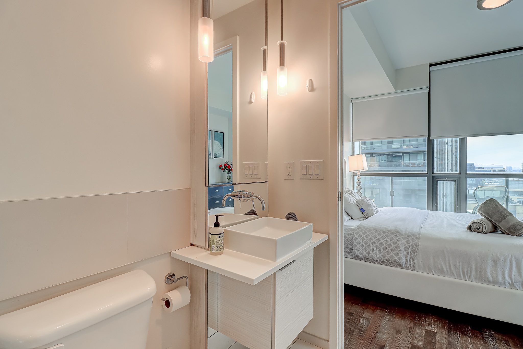 • Bright corner suite with floor-to-ceiling windows and city/lake views.