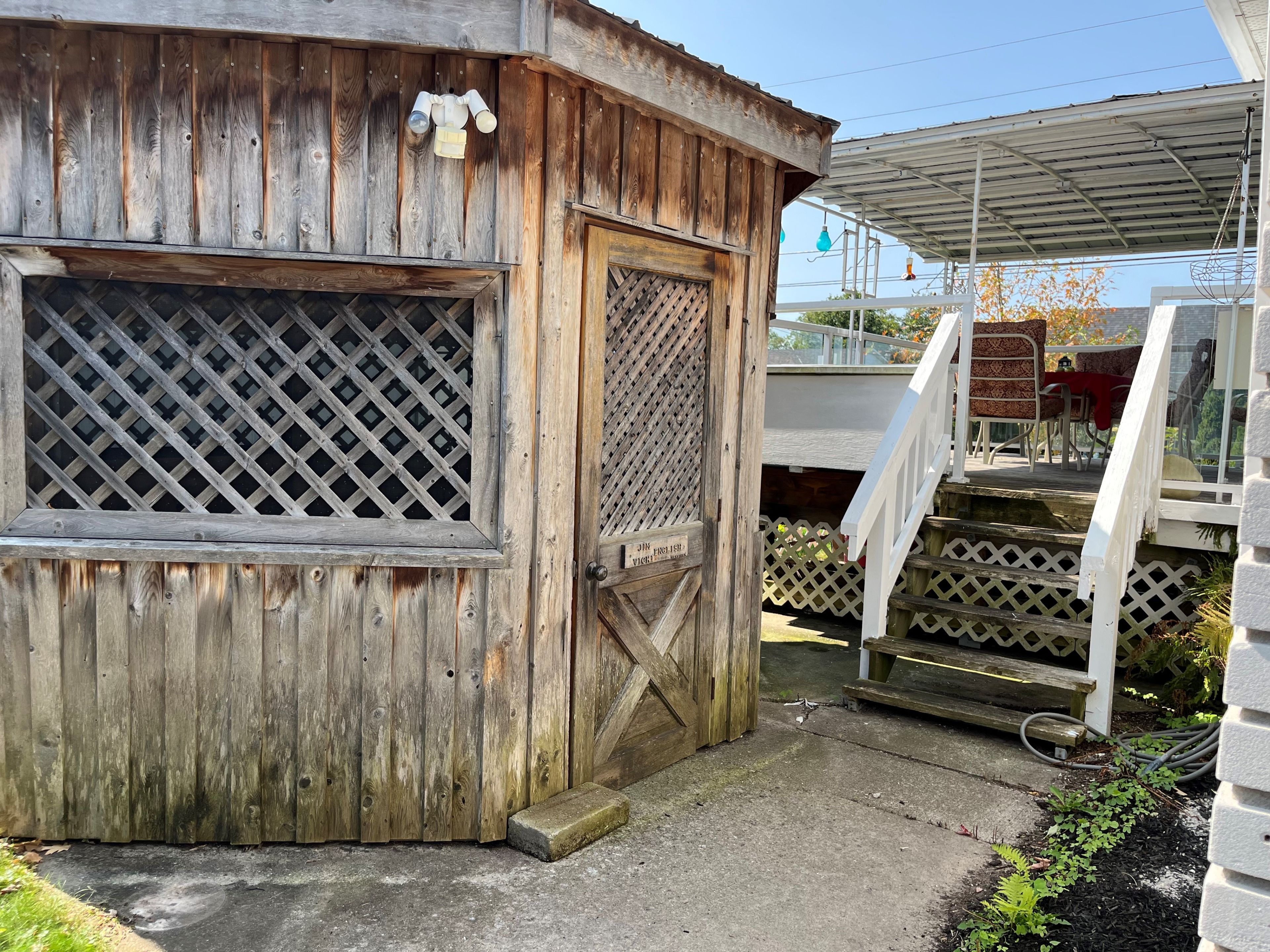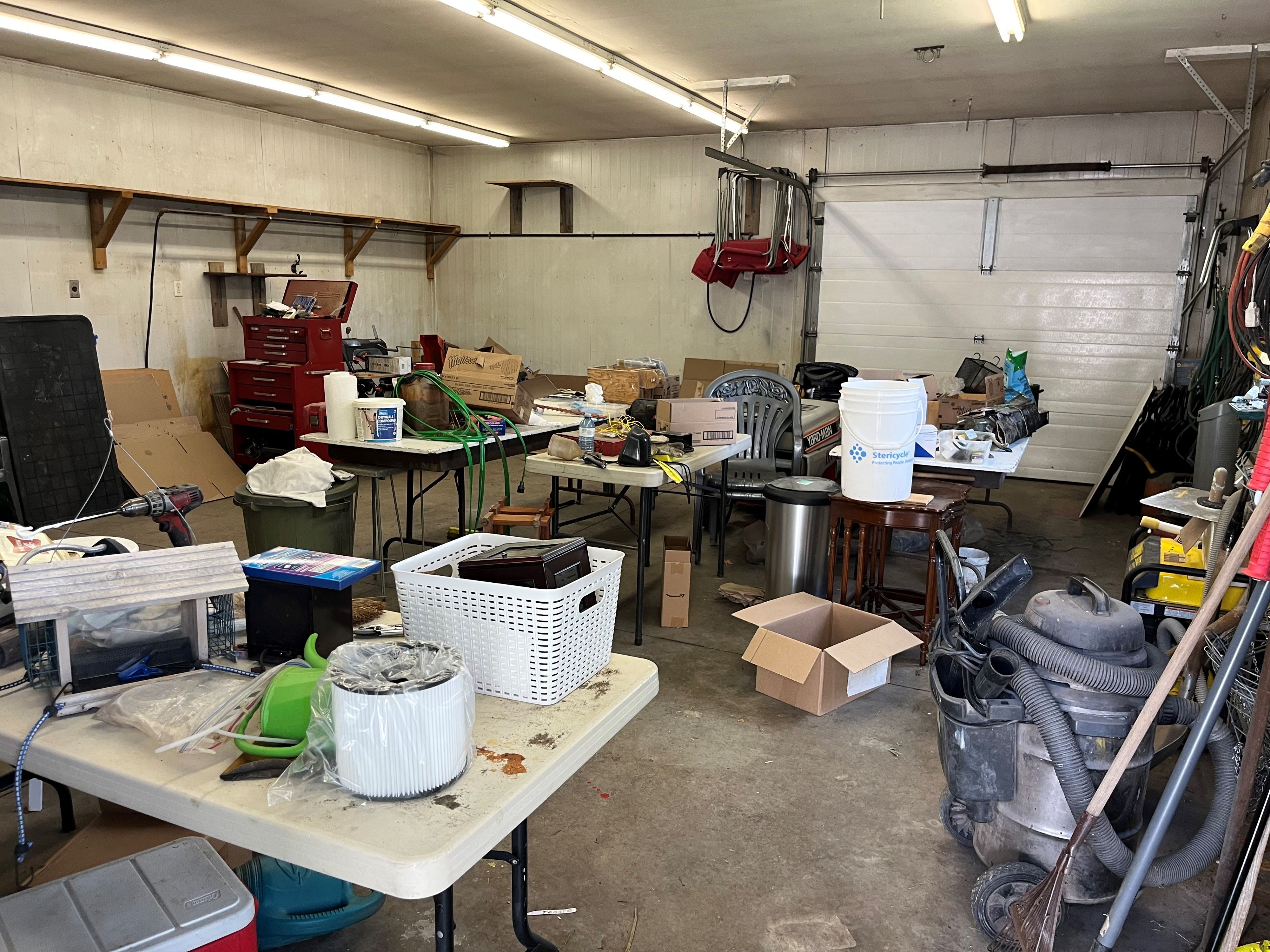 • Two garages provide ample storage, parking, and workshop space.