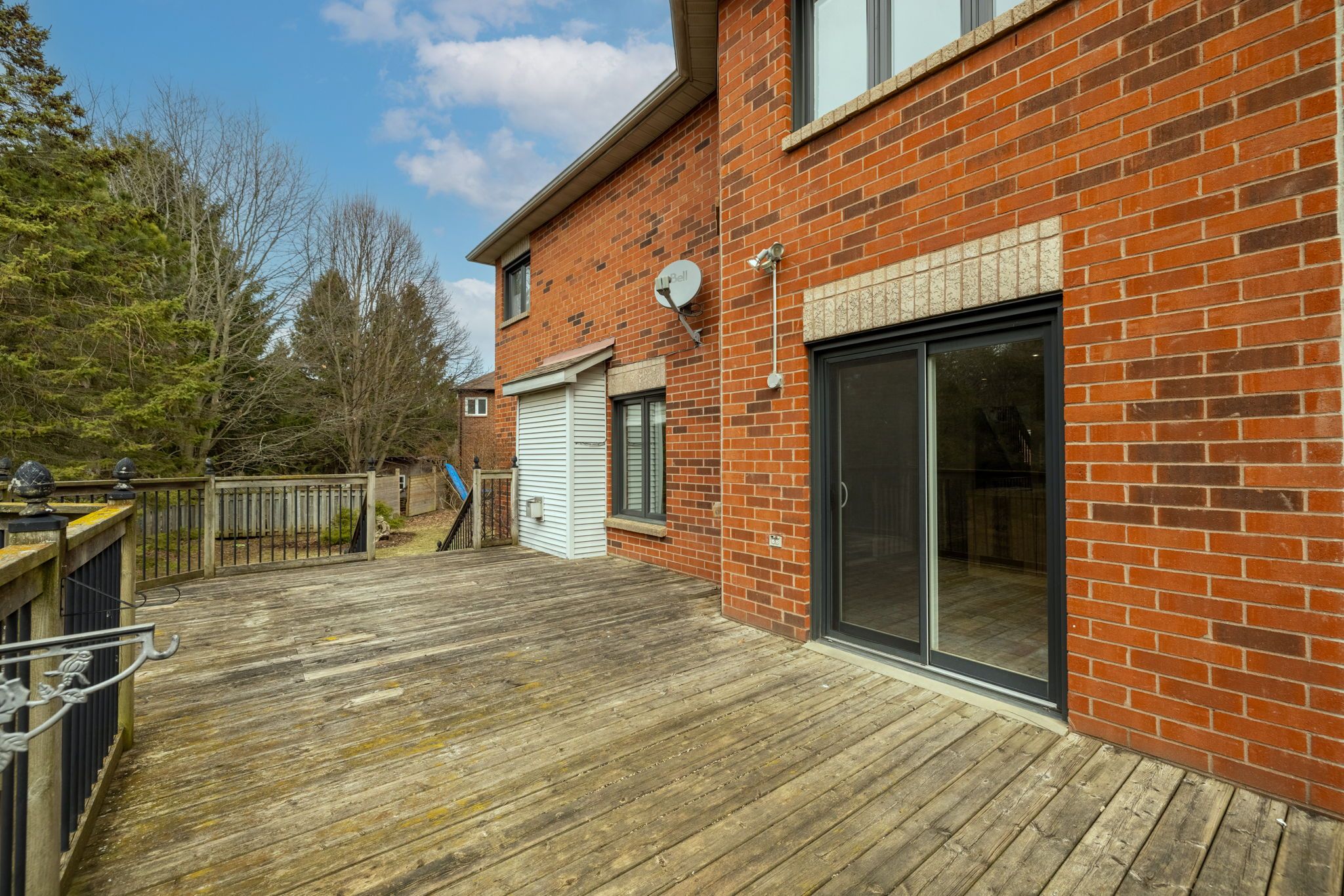 • Private backyard deck with scenic views of green space for relaxation.