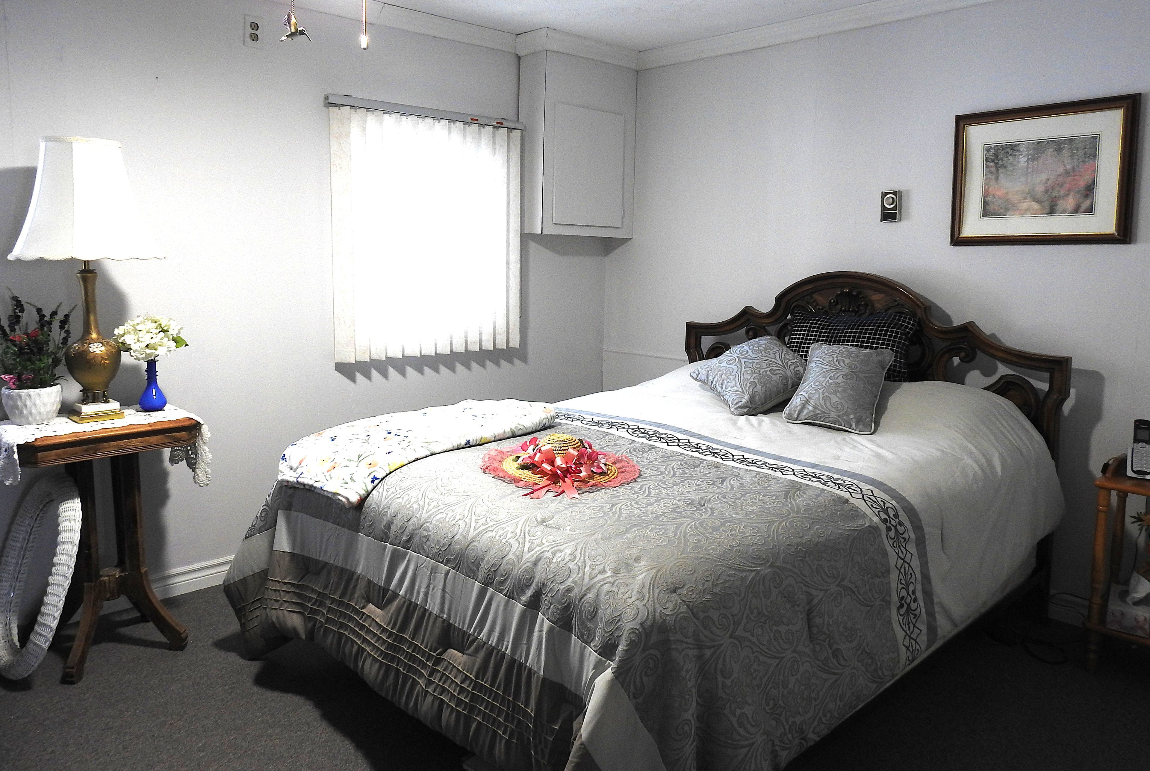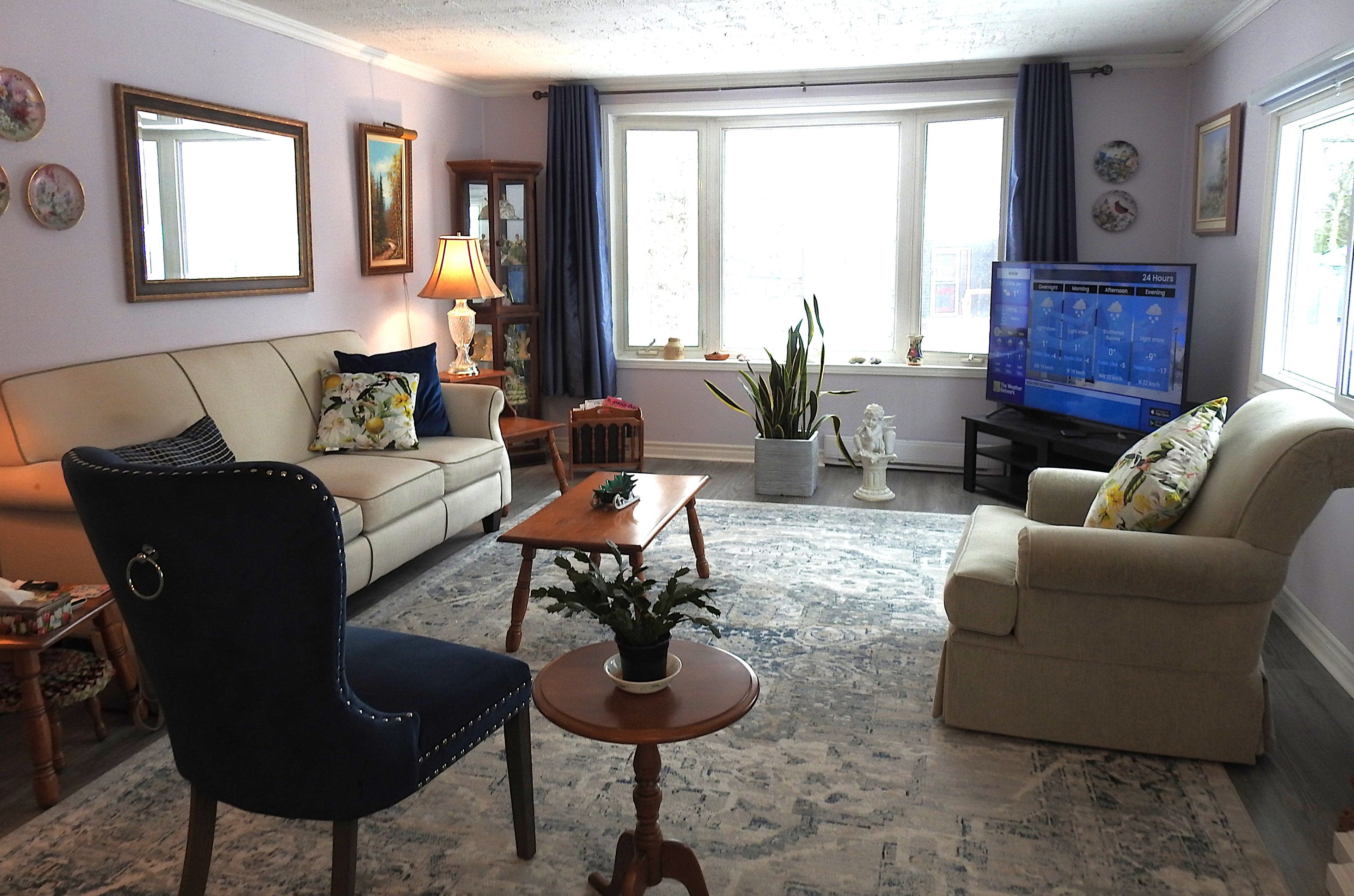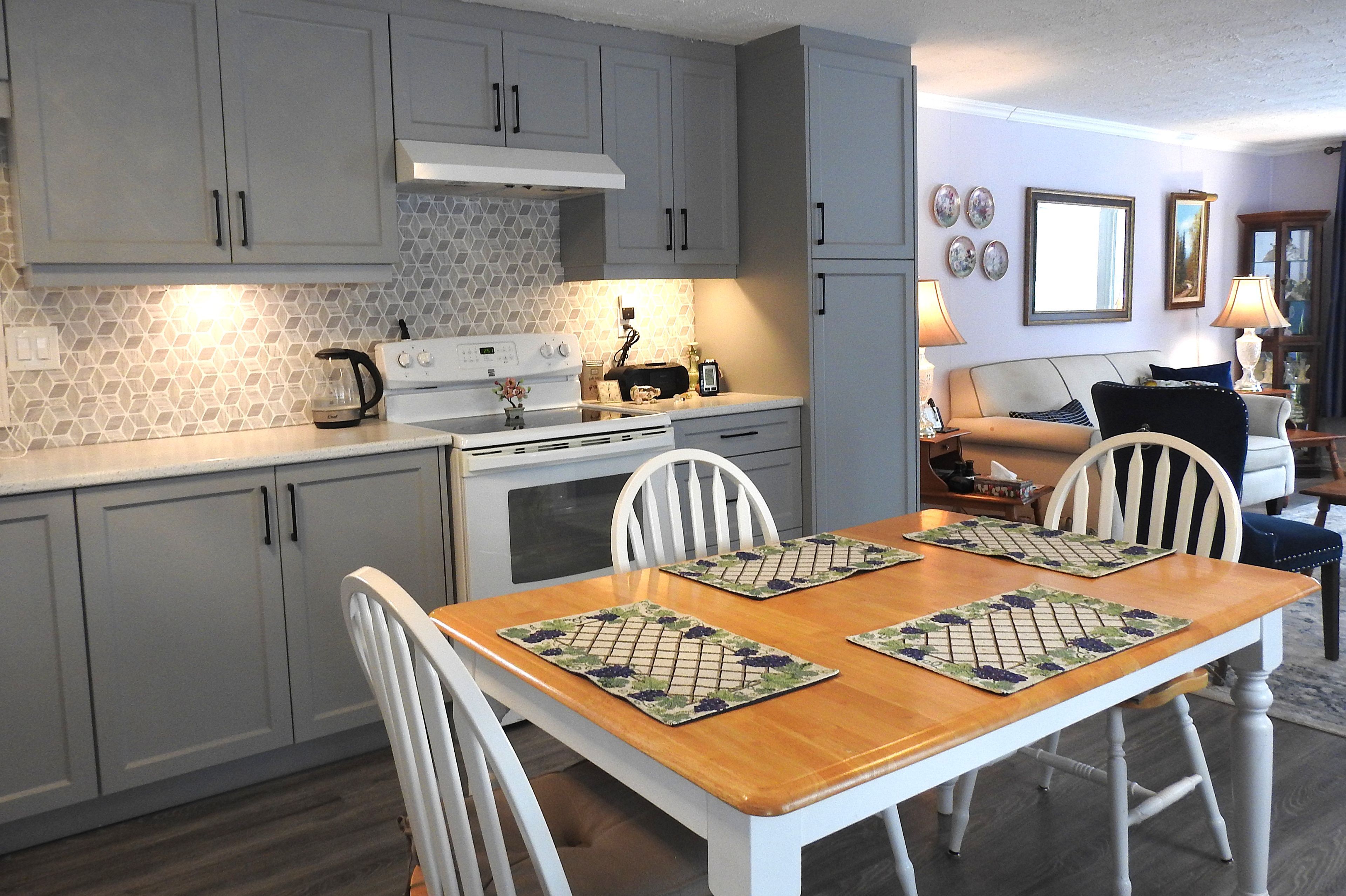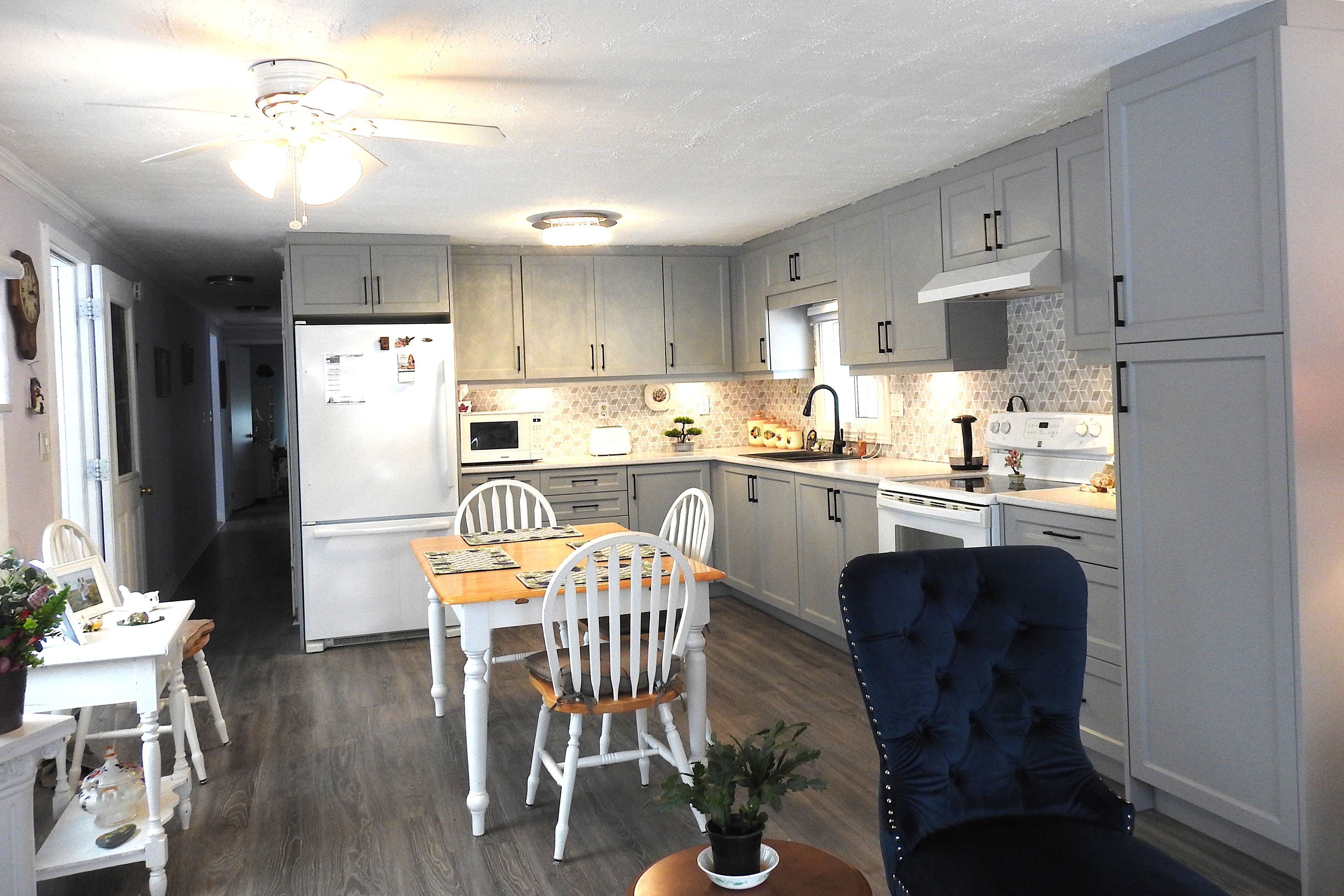 Welcome to a peaceful country setting in fergushill estates. Close to town with many amenities and several lakes close by. The convenient front entrance through the 3 season sunroom into this home is a great sitting area. The mobile has 2 bedrooms and 1-3 pce washroom. The updated (2025) kitchen features newer counter tops, sink, cabinets, hidden garbage/recycle bins, deep pantry, cutlery drawer, laminate flooring with lots of room for several cooks in the kitchen. The spacious living room has a large front bay window, electric fireplace with (2025) laminate flooring. The updated (2025) 3 pce washroom, sink, flooring, features walk-in shower combined with laundry area. The added living area of a family room with broadloom with walk-out to deck and a large storage area for all christmas decor. And odds and ends. Primary bedroom has window, wardrobe and broadloom. 2nd bedroom has broadloom with window and closet. 7 newer windows in (2022), new front deck (2025). Spray foam insulation added underneath & attic insulation 2023. This home sits on a mature landscaped lot surrounded by incredible neighbours. 2 parking spaces and 1 garden shed. The new land lease fee to buyer is $742. 00 (lease $680 tax $17 water $45) per month. Septic was pumped at the landlords expense summer 2025. Application fee of $250. 00 for park approval at the buyers expense.