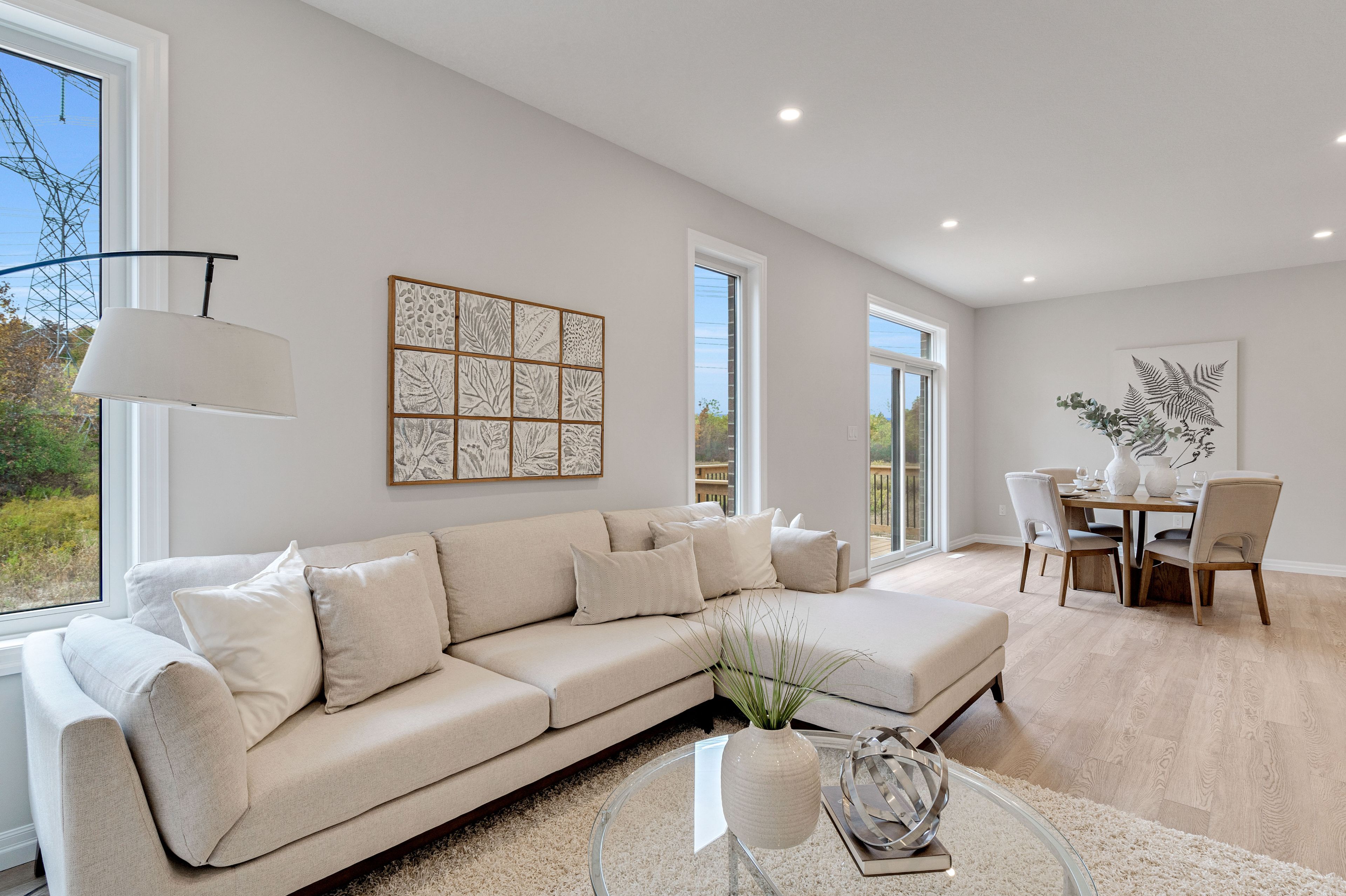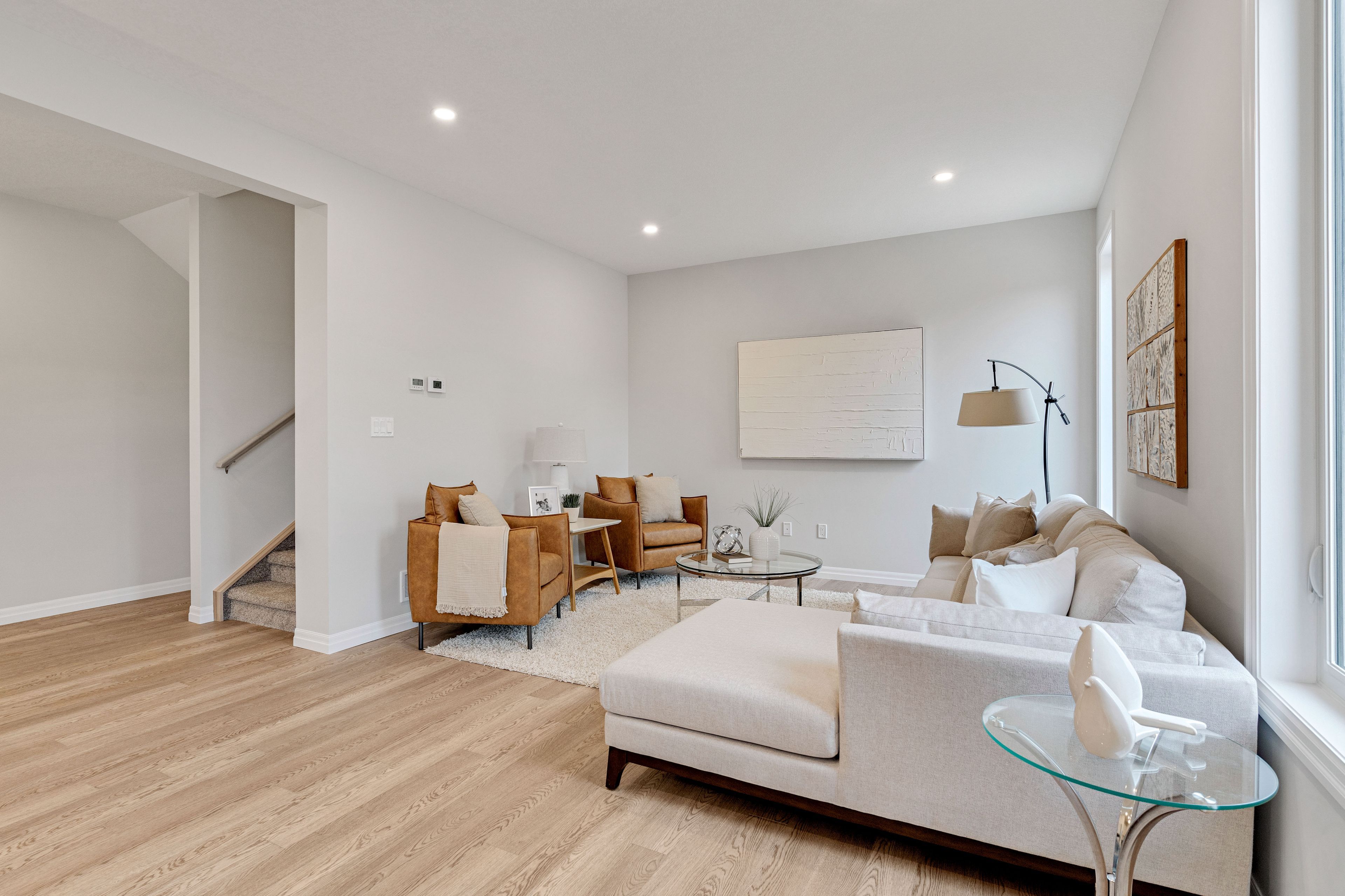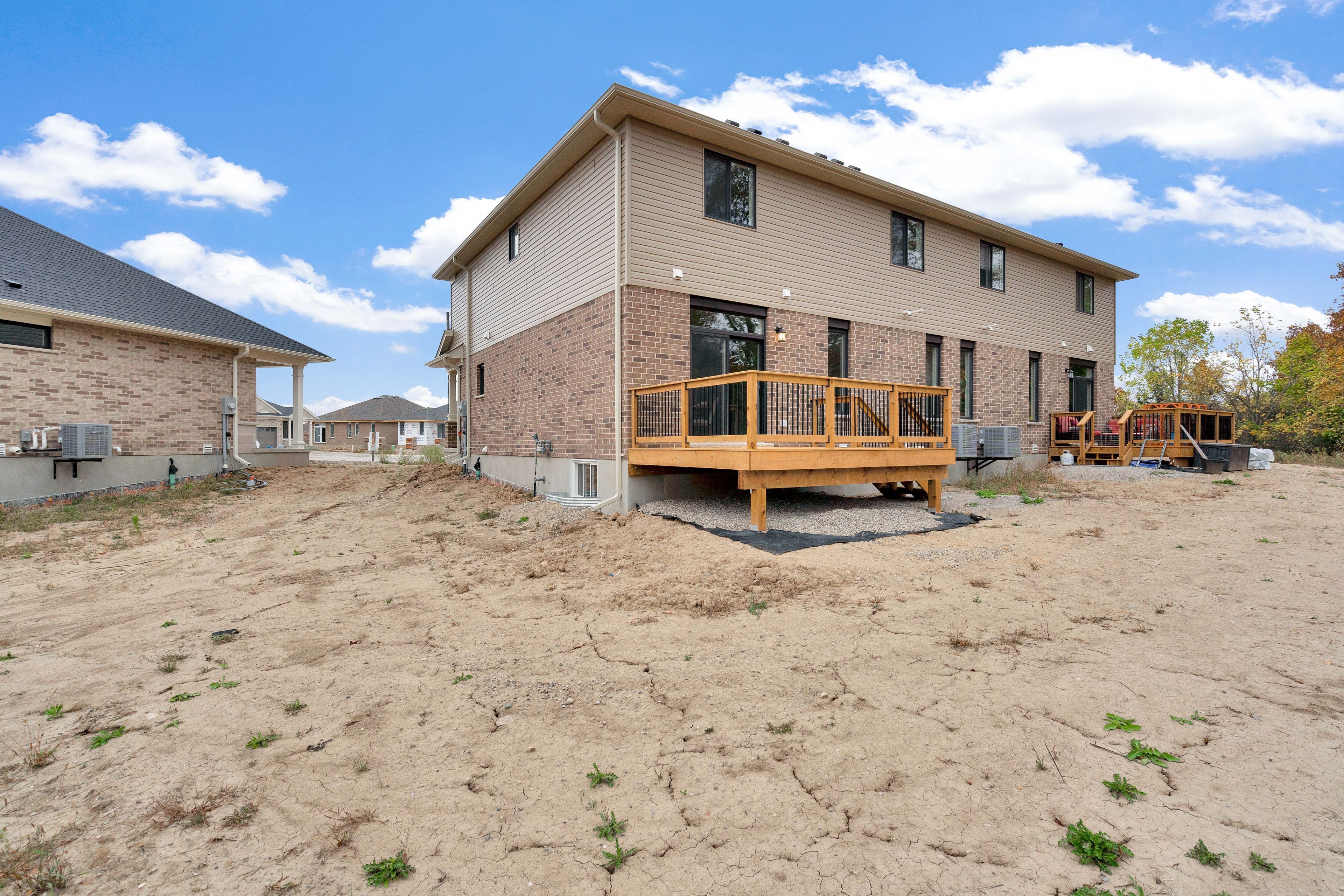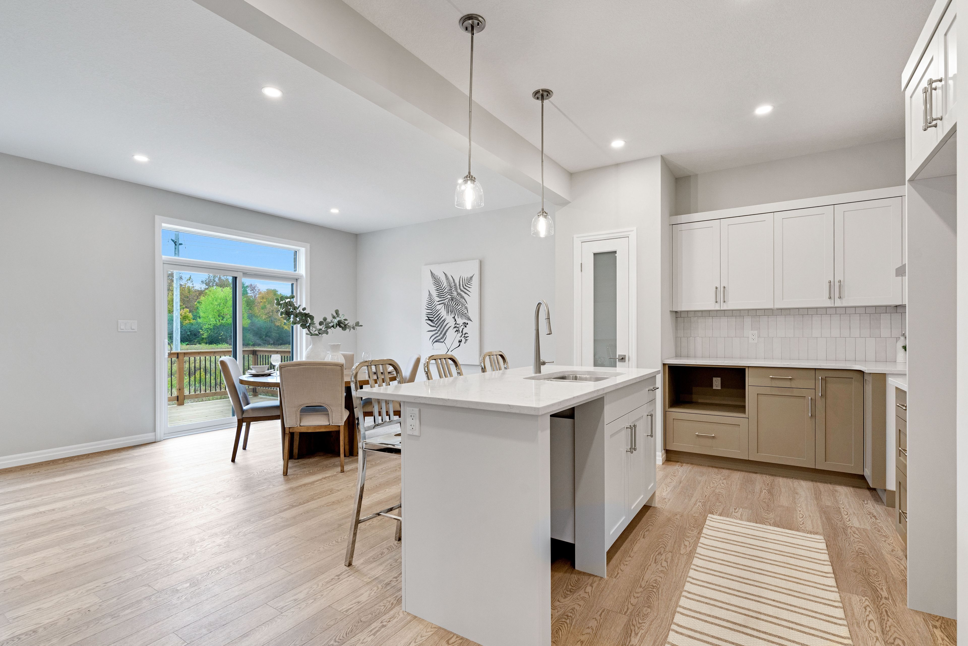 Move-in ready and thoughtfully crafted by hayhoe homes, this beautifully designed 2-storey semi-detached home offers 4 bedrooms, 2. 5 bathrooms, and an attached single-car garage, situated on a large pie-shaped lot at the end of a quiet cul-de-sac in the highly sought-after community of lynhurst heights. The open-concept main floor features 9' ceilings and luxury vinyl plank flooring throughout, with a designer kitchen boasting quartz countertops, tile backsplash, pantry, and a large central island that flows seamlessly into the great room and dining area, where patio doors lead to a rear deck overlooking green space. Upstairs, the spacious primary suite includes a walk-in closet and private 4-piece ensuite with double sinks and a walk-in shower, complemented by three additional bedrooms, a full bathroom, and a convenient second-floor laundry closet for stacked washer/dryer units. The unfinished basement offers excellent development potential for a future family room and additional bathroom. Additional highlights include a covered front porch, central air, hrv system, tarion new home warranty, and numerous upgrades throughout. Taxes to be assessed.