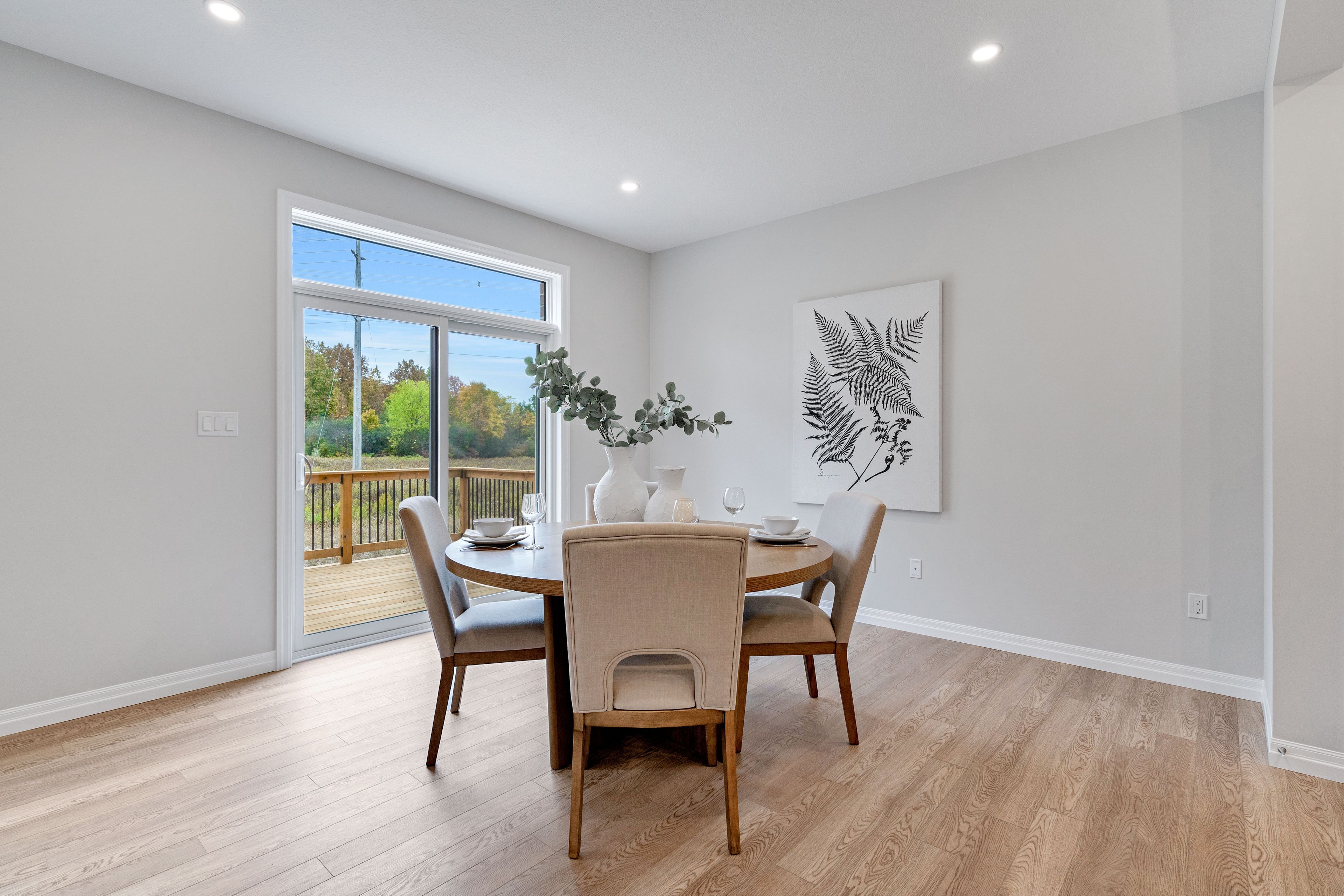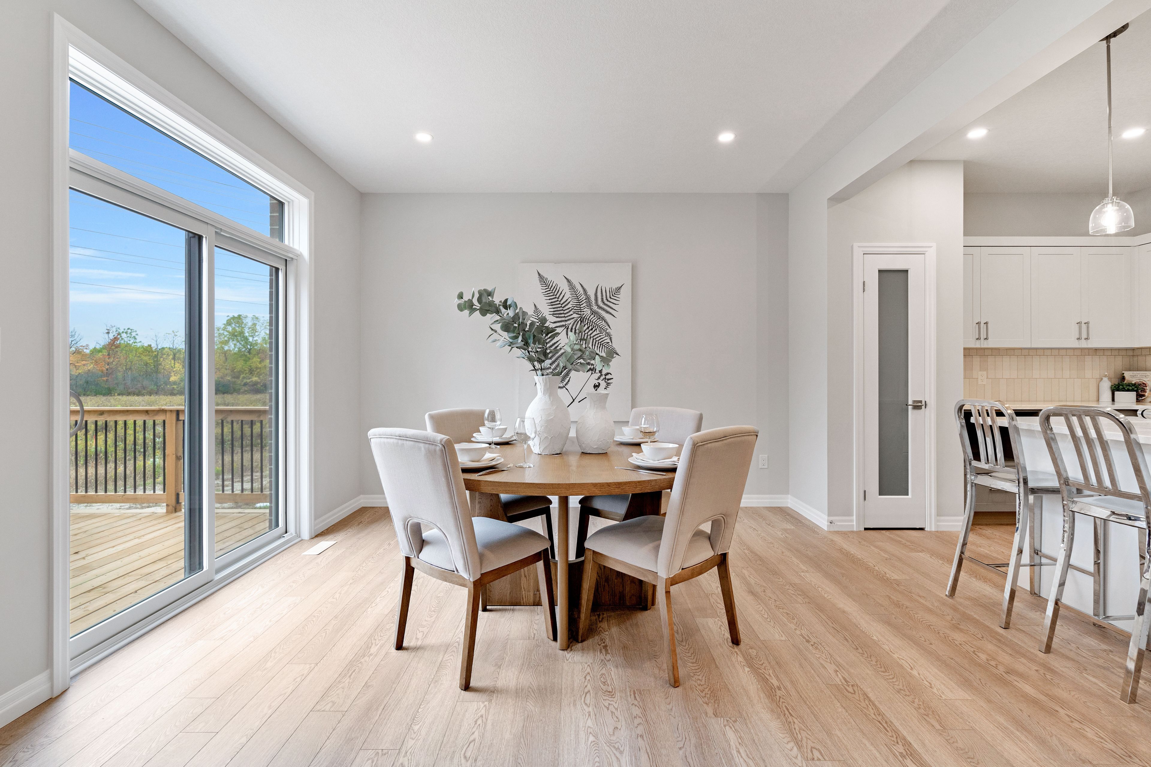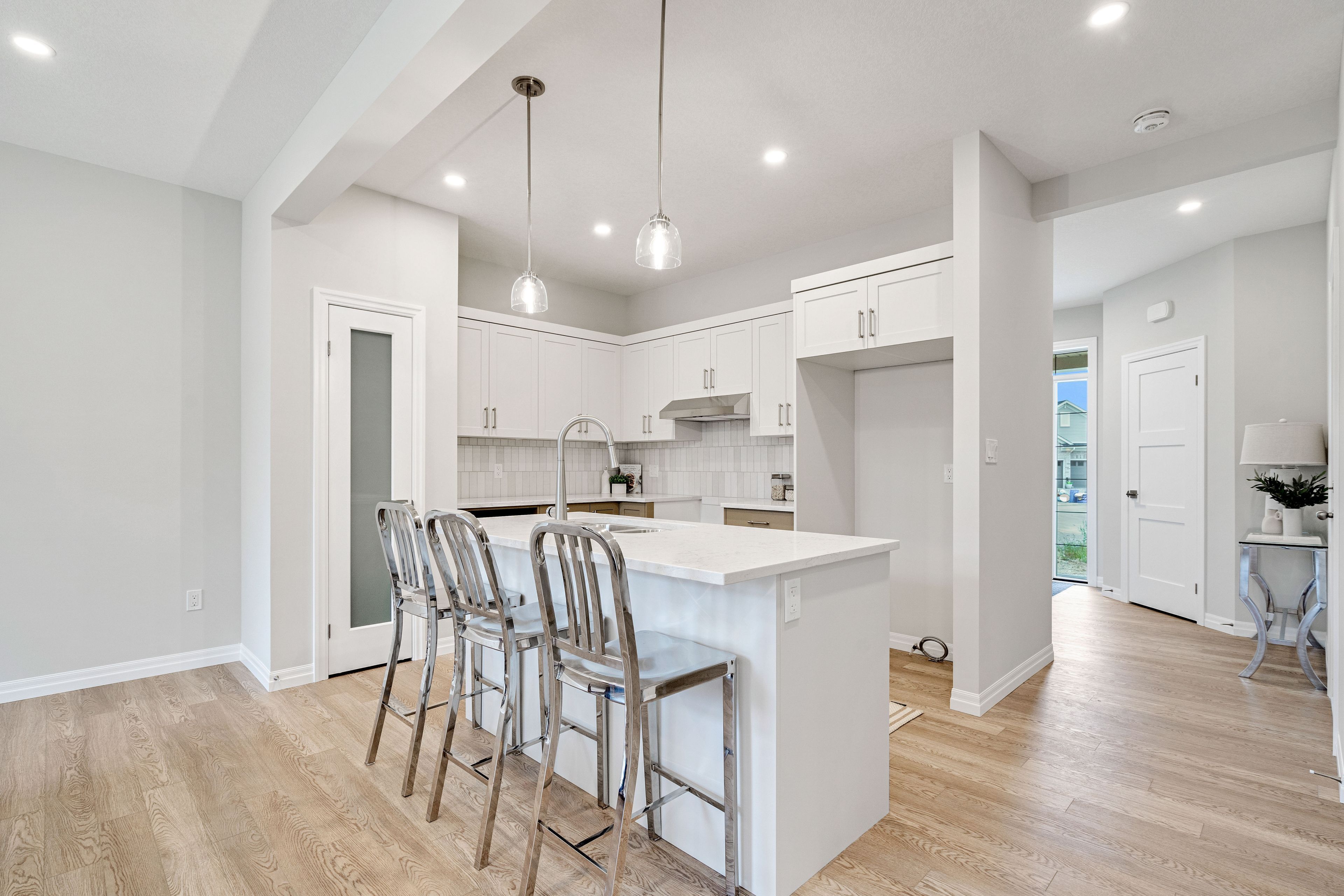 Move-in ready and thoughtfully crafted by hayhoe homes, this beautifully designed 2-storey semi-detached home offers 4 bedrooms, 2. 5 bathrooms, and an attached single-car garage, situated on a large pie-shaped lot at the end of a quiet cul-de-sac in the highly sought-after community of lynhurst heights. The open-concept main floor features 9' ceilings and luxury vinyl plank flooring throughout, with a designer kitchen boasting quartz countertops, tile backsplash, pantry, and a large central island that flows seamlessly into the great room and dining area, where patio doors lead to a rear deck overlooking green space. Upstairs, the spacious primary suite includes a walk-in closet and private 4-piece ensuite with double sinks and a walk-in shower, complemented by three additional bedrooms, a full bathroom, and a convenient second-floor laundry closet for stacked washer/dryer units. The unfinished basement offers excellent development potential for a future family room and additional bathroom. Additional highlights include a covered front porch, central air, hrv system, tarion new home warranty, and numerous upgrades throughout. Taxes to be assessed.