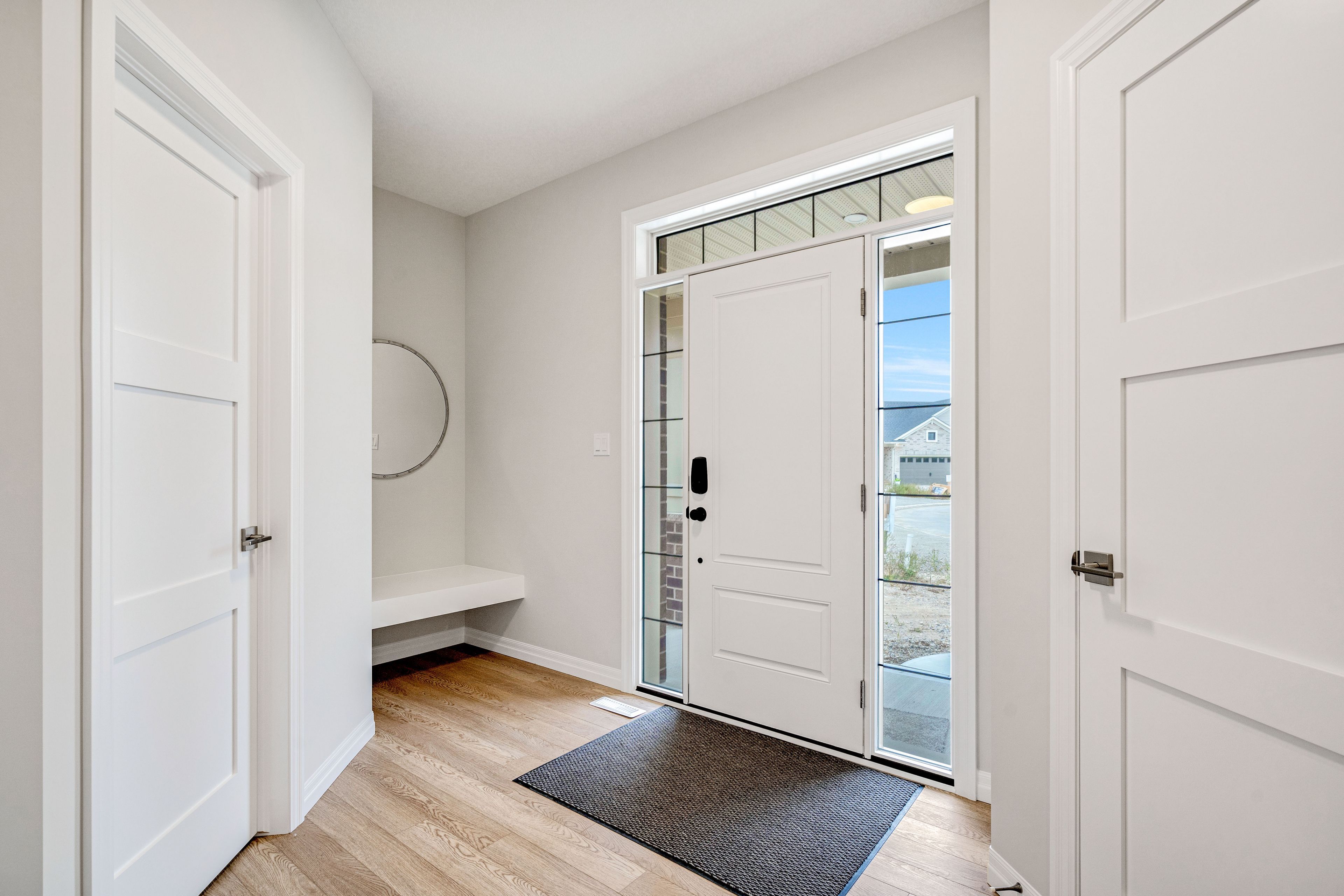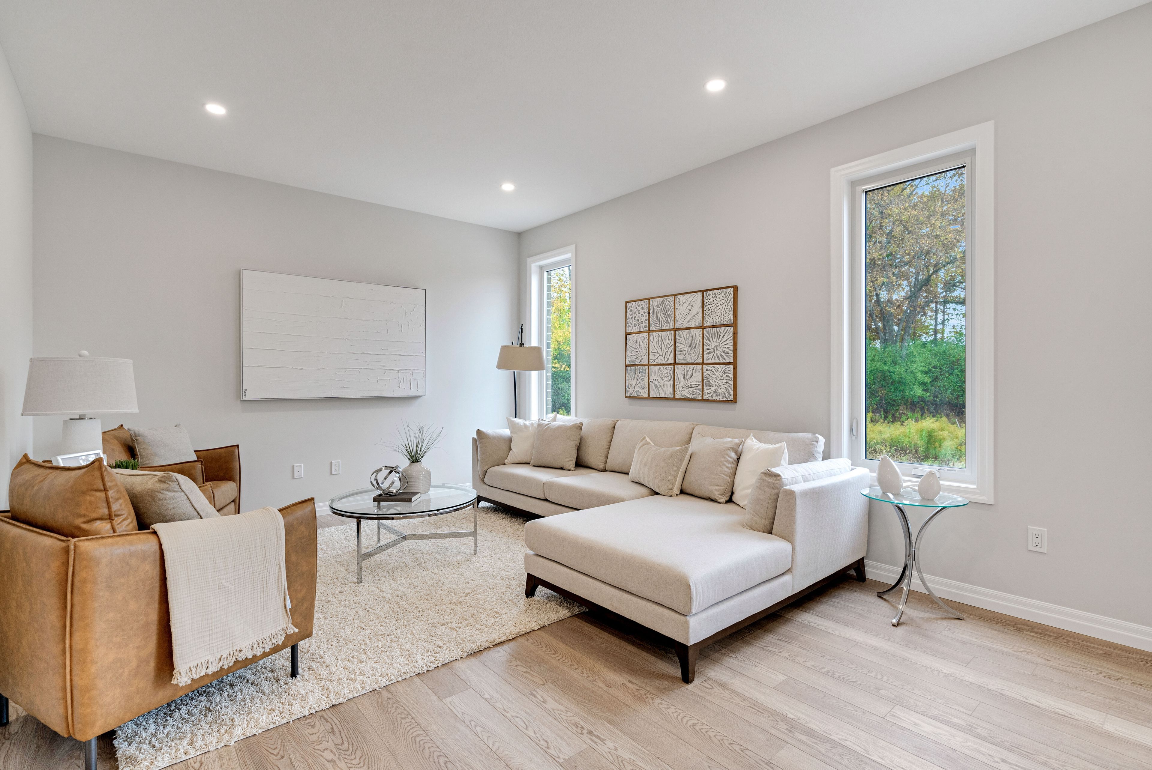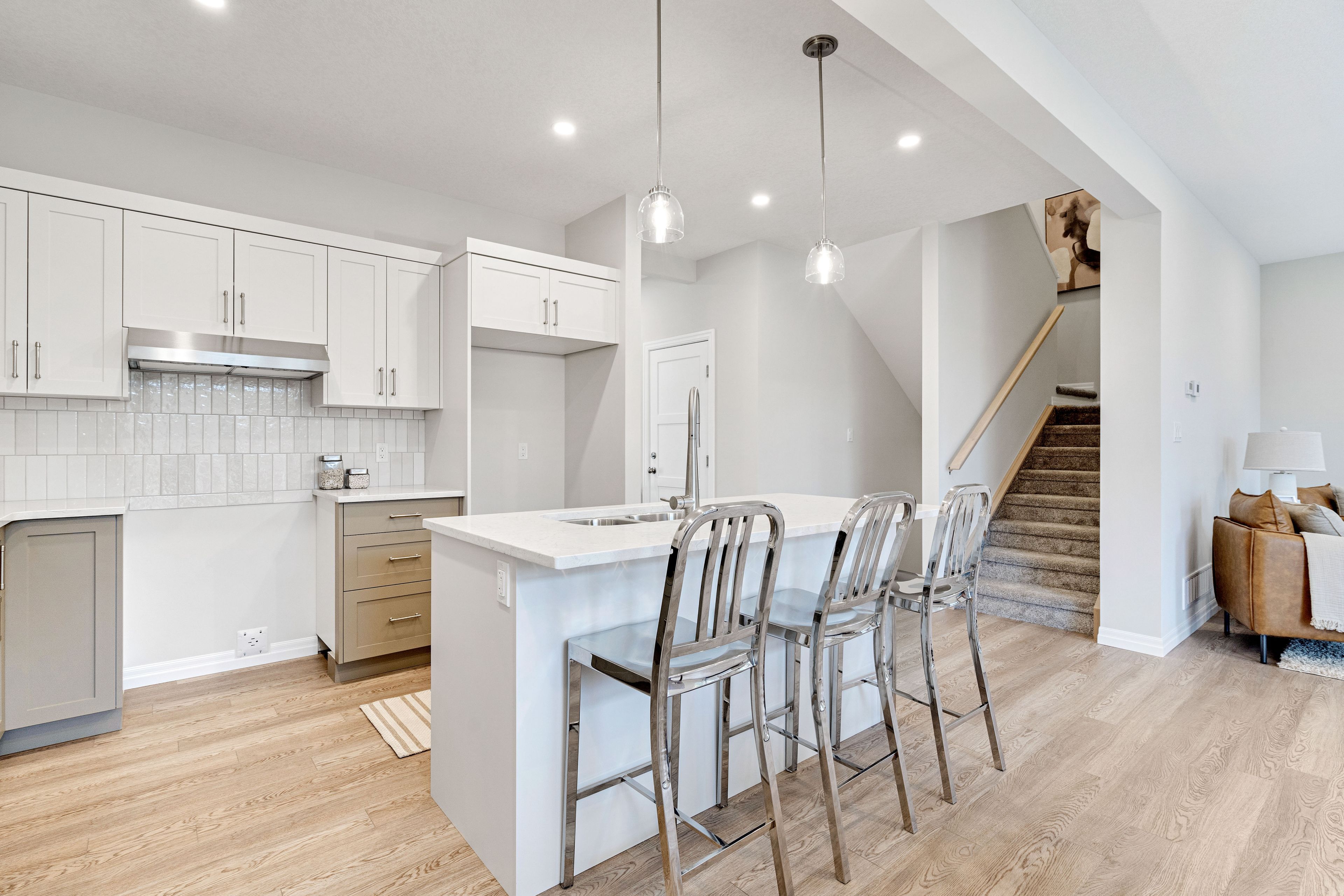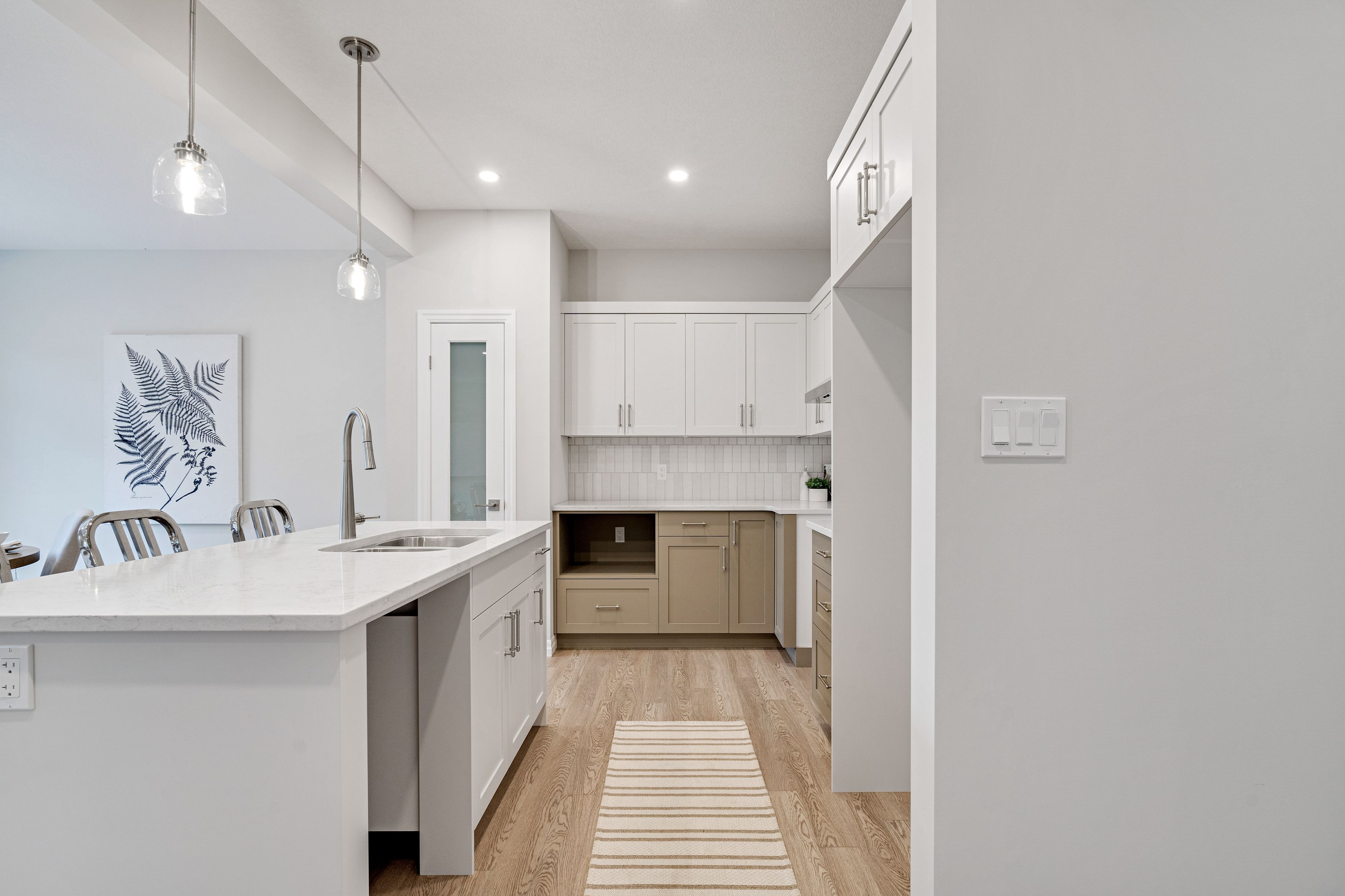 Move-in ready and thoughtfully crafted by hayhoe homes, this beautifully designed 2-storey semi-detached home offers 4 bedrooms, 2. 5 bathrooms, and an attached single-car garage, situated on a large pie-shaped lot at the end of a quiet cul-de-sac in the highly sought-after community of lynhurst heights. The open-concept main floor features 9' ceilings and luxury vinyl plank flooring throughout, with a designer kitchen boasting quartz countertops, tile backsplash, pantry, and a large central island that flows seamlessly into the great room and dining area, where patio doors lead to a rear deck overlooking green space. Upstairs, the spacious primary suite includes a walk-in closet and private 4-piece ensuite with double sinks and a walk-in shower, complemented by three additional bedrooms, a full bathroom, and a convenient second-floor laundry closet for stacked washer/dryer units. The unfinished basement offers excellent development potential for a future family room and additional bathroom. Additional highlights include a covered front porch, central air, hrv system, tarion new home warranty, and numerous upgrades throughout. Taxes to be assessed.