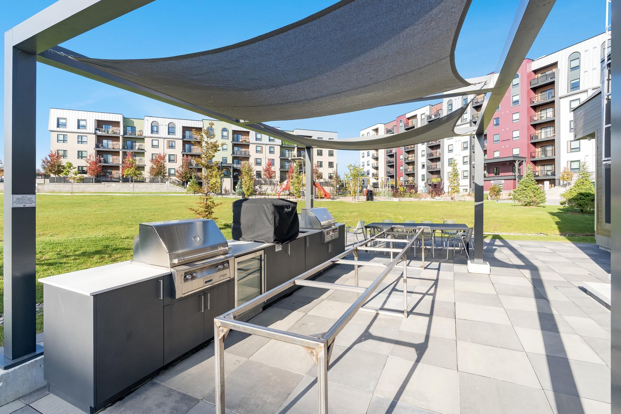 • Community amenities include a fitness centre, playground, and barbeque areas.