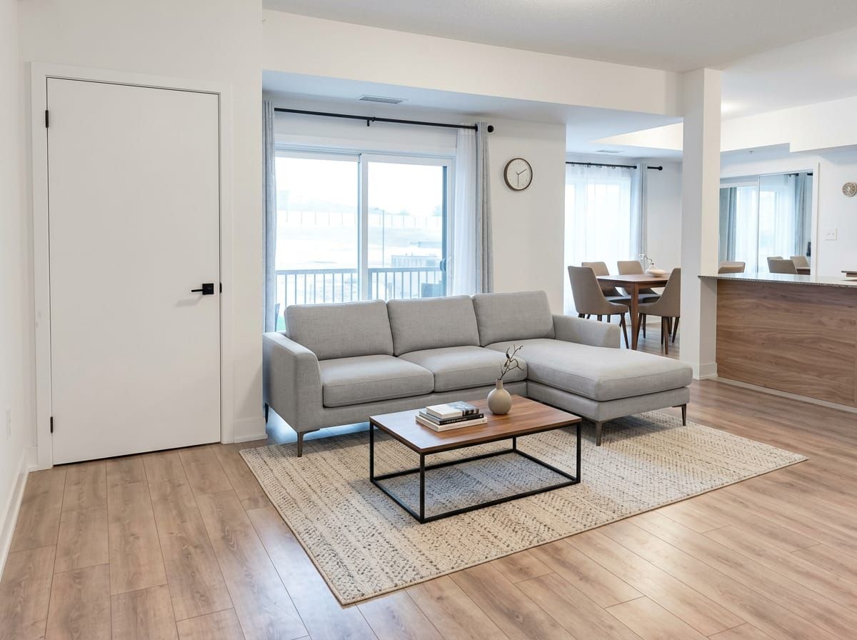 Discover your perfect home in the heart of barrie! This stunning 2+1 bedroom condo offers an exceptional living experience in a prime location. Some of the interior features include 9-foot ceilings, elegant laminate flooring throughout, quartz countertops, two full bathrooms, and in-suite laundry for convenience. This home is located just minutes away from key amenities, such as friday harbour, go station, local schools, and lake simcoe waterfront. Water, one underground parking spot, and community gym access are included in the rental cost.