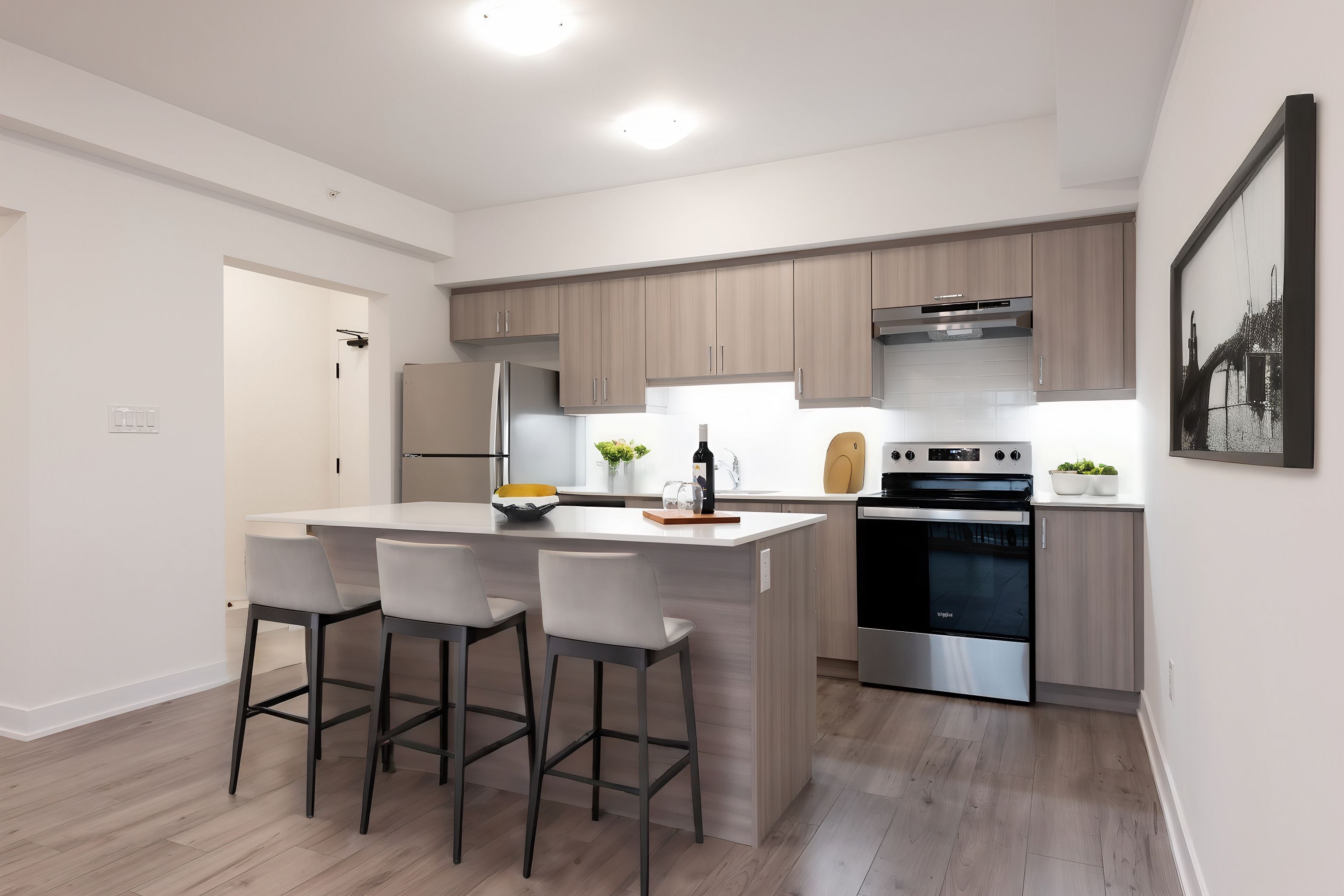 For lease this 2-bedroom plus den/office, 2 full bathroom condo that is flooded with natural sunlight. The primary bedroom boasts an ensuite bathroom and a spacious walk-in closet. Enjoy laminate flooring throughout and a stylish kitchen featuring a large island with ample room for barstools. This unit also offers in-suite laundry, stainless steel appliances with a dishwasher, and 1 underground parking spot. The balcony is equipped with a convenient bbq gas line hook-up. Situated within walking distance of barrie south go train station and a short drive to park place and costco, and with easy access to hwy 400 for commuting. Plus, enjoy some of the fantastic amenities such as a gym, party room, and nearby walking trails. Water is included. Tenant pays hot water heater rental, heat, hydro, cable, internet. *some pictures are virtually staged.