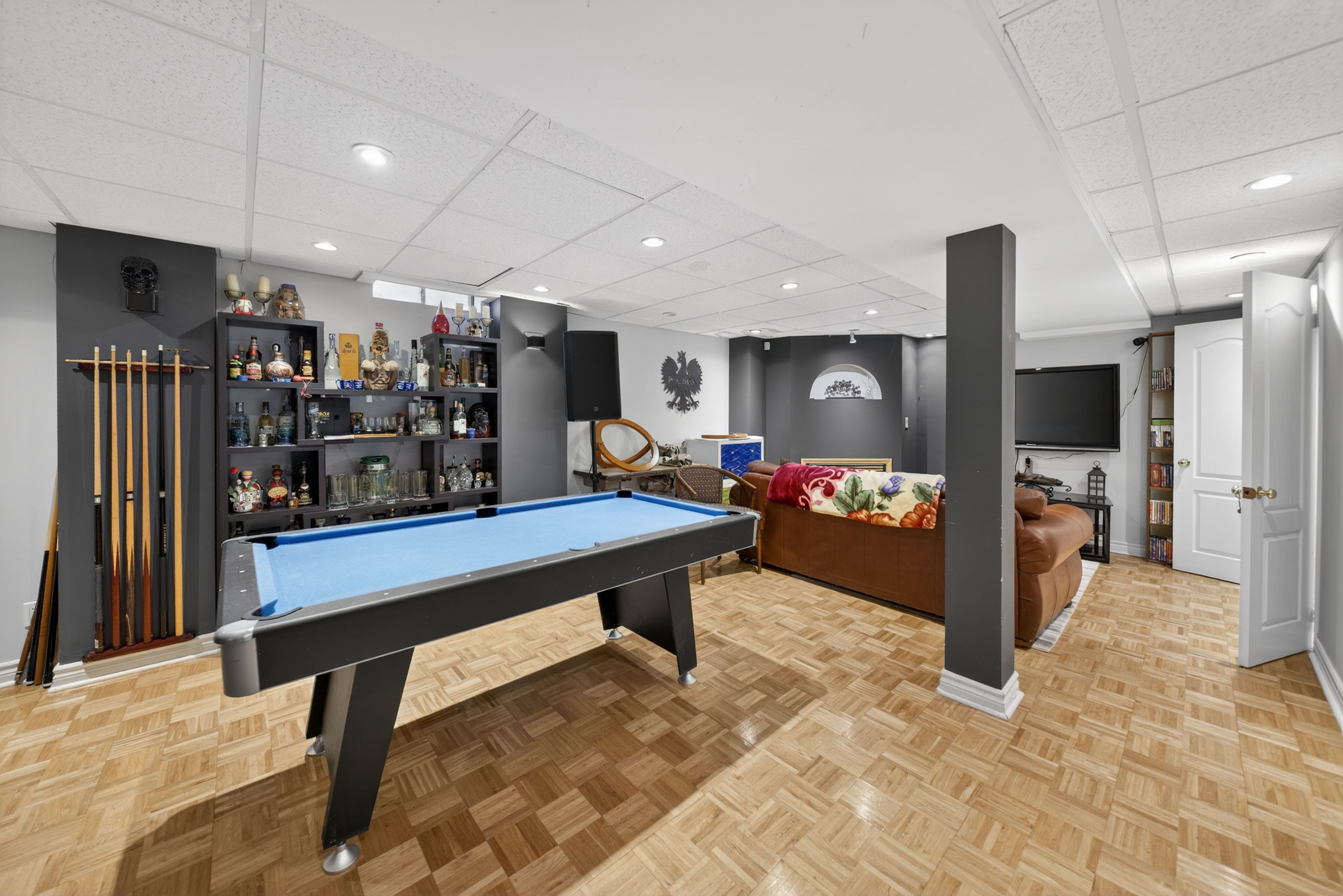 • Professionally finished basement with a gas fireplace and additional living space.