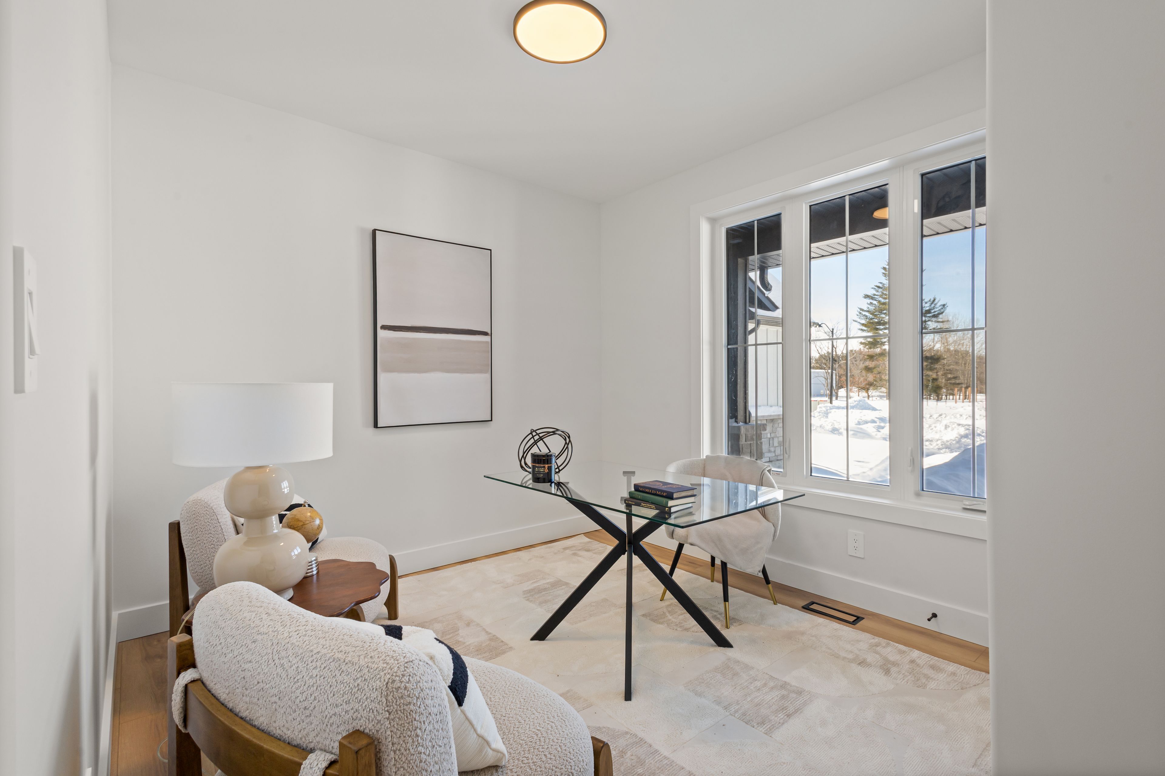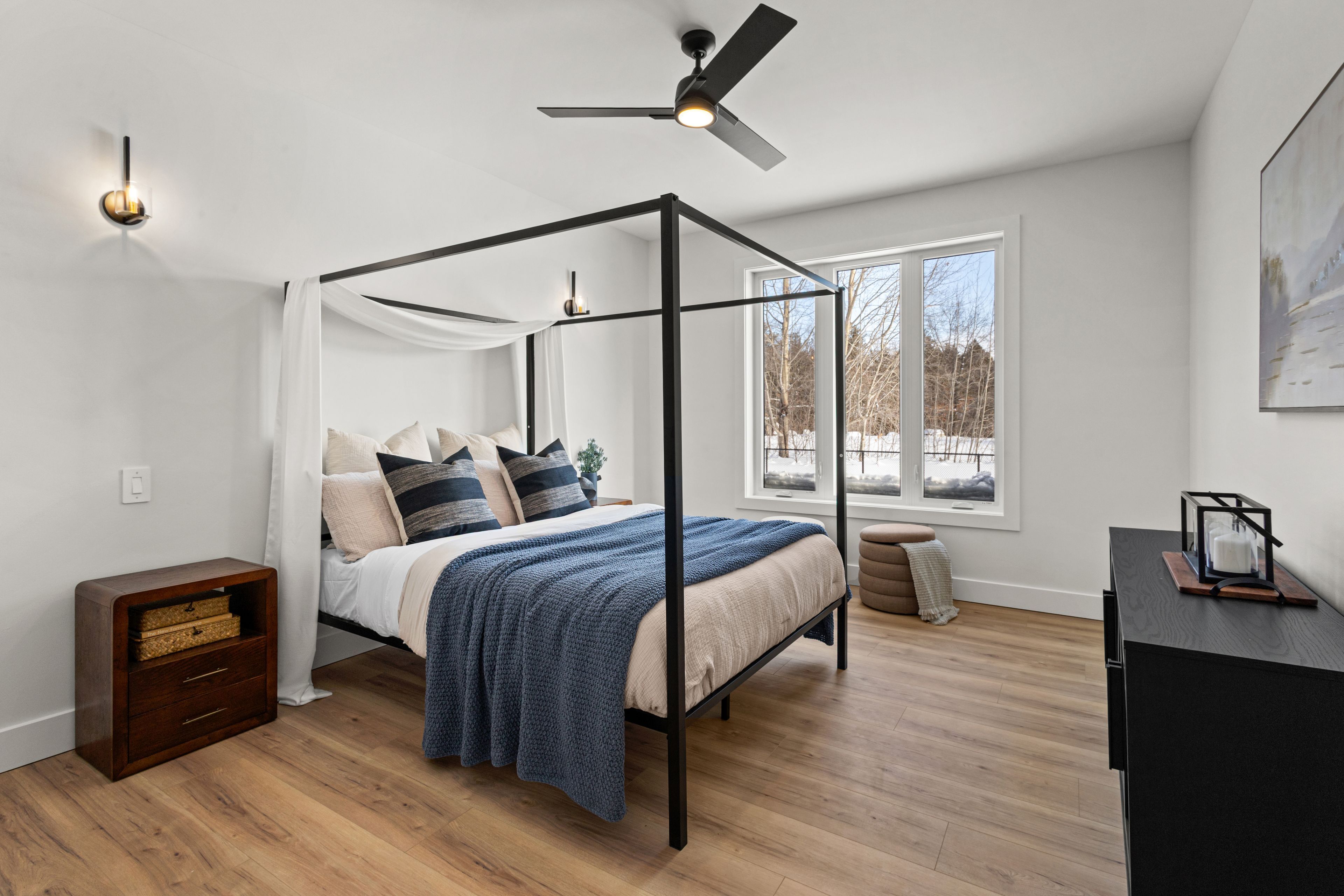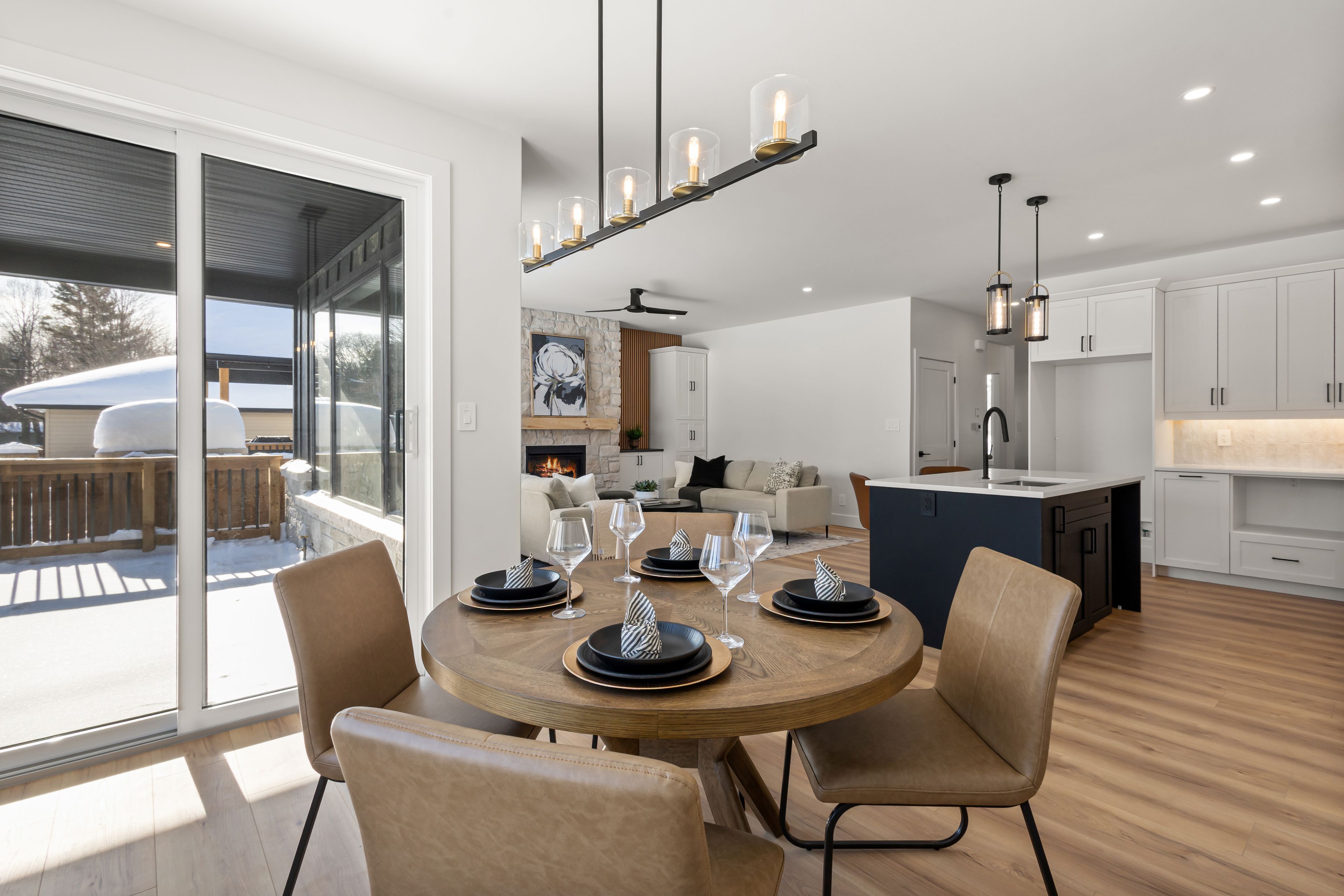 Located in woodland heights, this 2-bedroom, 2-bath craftsman-style bungalow is engineered for a simplified, worry-free lifestyle. Situated on full municipal services, the home features a strategically designed open-concept living area. The space is anchored by an integrated gas fireplace featuring a stone surround, fluted wood detailing, and custom built-in cabinetry. This area flows directly into the kitchen and dining zones-finished with precision cabinetry and quartz surfaces-with a walk-out to the covered deck for an optimized indoor-outdoor living experience. The primary suite includes a practically designed ensuite with a double vanity and a custom-tiled shower. A private second bedroom, 4 pc bathroom and a large mudroom/laundry with access to an insulated double garage complete the main level. The full unfinished basement is pre-plumbed and wired, allowing for a seamless future expansion of a 3rd bedroom and bath. Delivery is completely turn-key, including a paved driveway, sodded lawn, and high-efficiency hvac systems. Ideally situated for professionals or downsizers requiring proximity to the 401 and prince edward county.