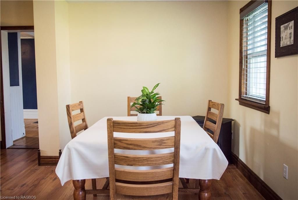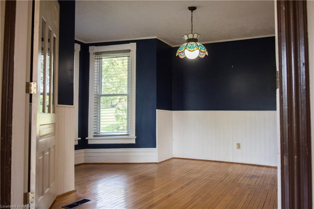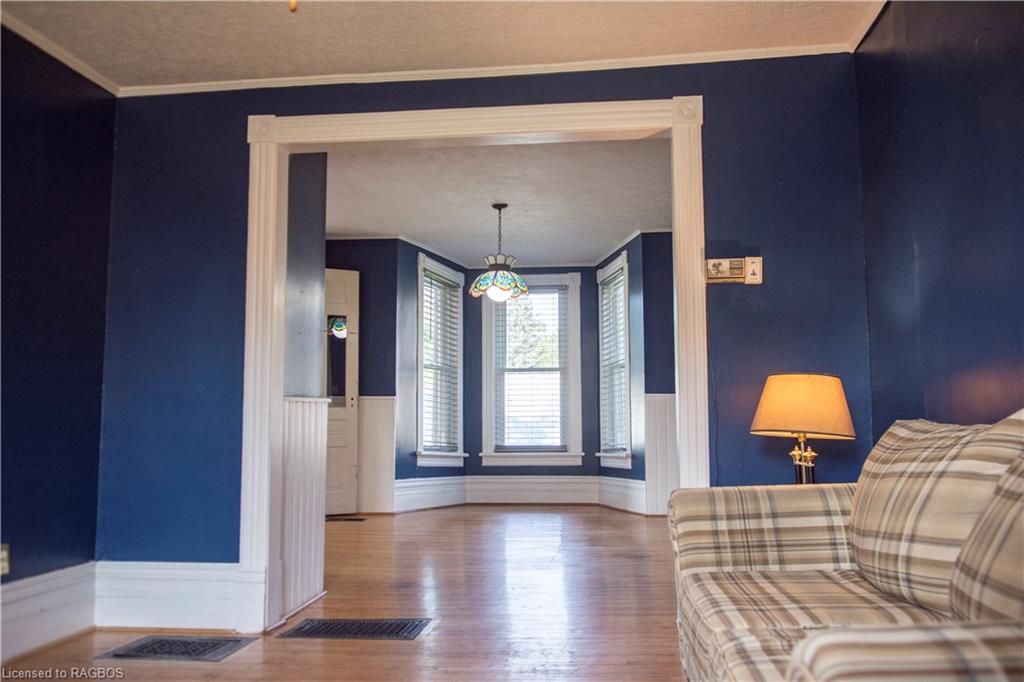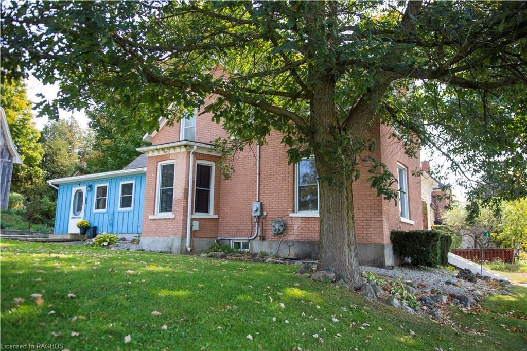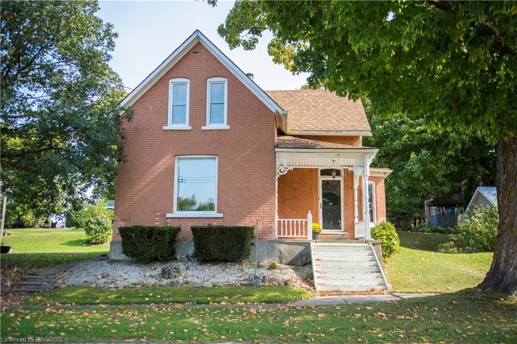 This charming victorian in the quaint village of allenford is the perfect place to call home. This home boasts large main floor rooms consisting of an eat-in kitchen with custom cabinets. No laundry in the basement as there is large laundry room with a shower on the main floor just off the kitchen. As you walk through this charming home you will find a large dinning room with a bay window. From here you have your choice of a good size living room and a second living space with a bay window that would make a great family room or den. As you enter through to the front foyer you will go up the original wooden stair case that takes you to 3 bright bedrooms and a family bathroom with clawfoot tub waiting for your personal decorating potential. This home has a detached garage for all your gardening and lawn care needs. Big enough for a handy mans work shop. The home has newer vinyl windows and loads of charm. Easy to manage yard with a small fountain in the side yard. Do not miss out on this victorian charmer. All measurements are approximate.