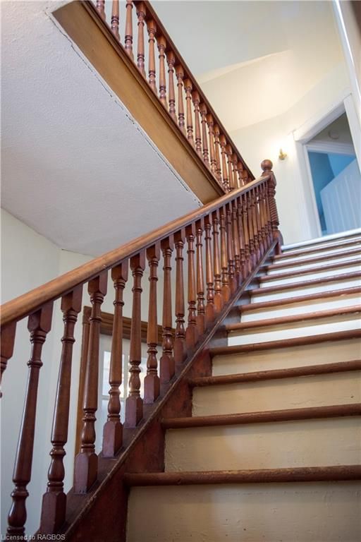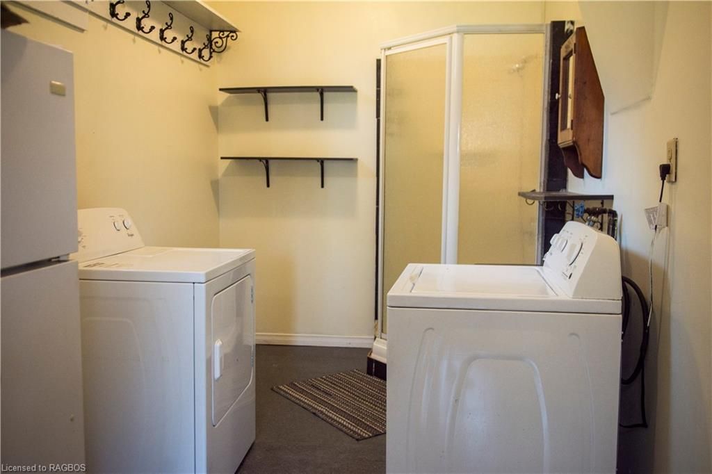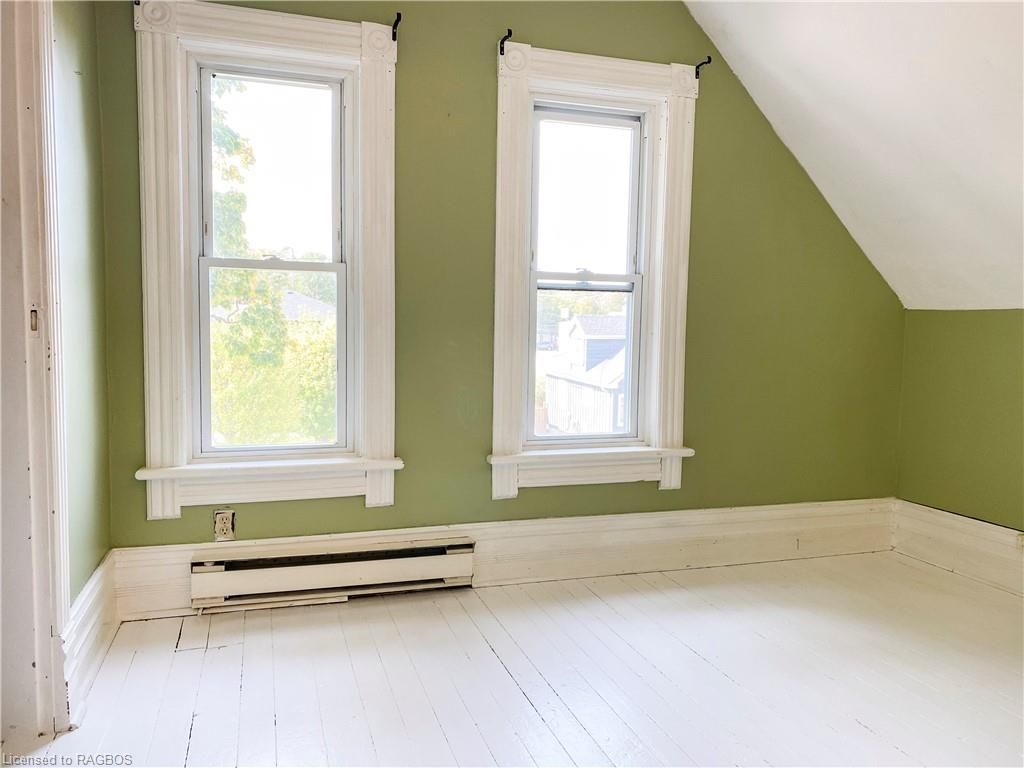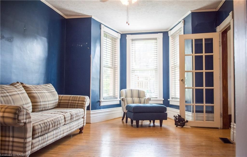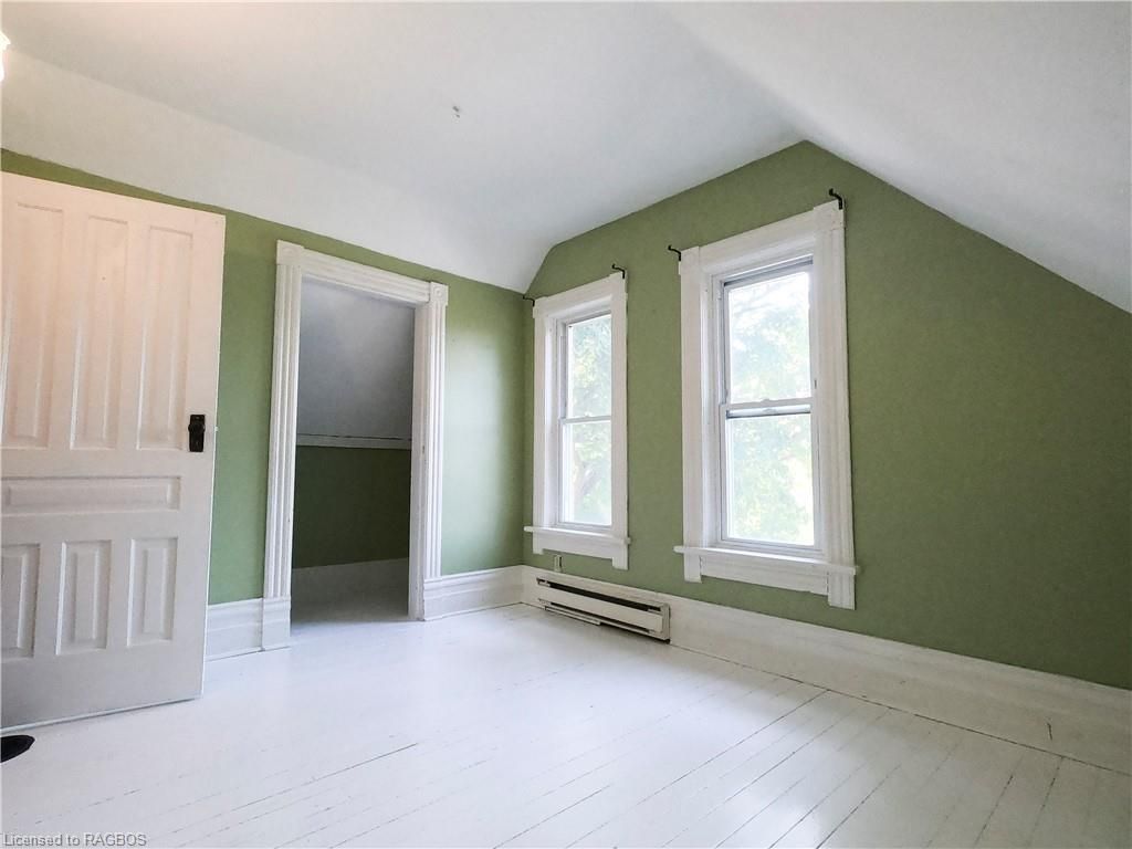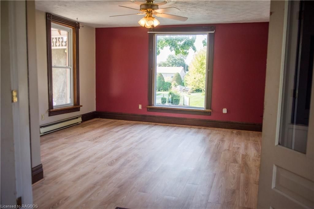 This charming victorian in the quaint village of allenford is the perfect place to call home. This home boasts large main floor rooms consisting of an eat-in kitchen with custom cabinets. No laundry in the basement as there is large laundry room with a shower on the main floor just off the kitchen. As you walk through this charming home you will find a large dinning room with a bay window. From here you have your choice of a good size living room and a second living space with a bay window that would make a great family room or den. As you enter through to the front foyer you will go up the original wooden stair case that takes you to 3 bright bedrooms and a family bathroom with clawfoot tub waiting for your personal decorating potential. This home has a detached garage for all your gardening and lawn care needs. Big enough for a handy mans work shop. The home has newer vinyl windows and loads of charm. Easy to manage yard with a small fountain in the side yard. Do not miss out on this victorian charmer. All measurements are approximate.