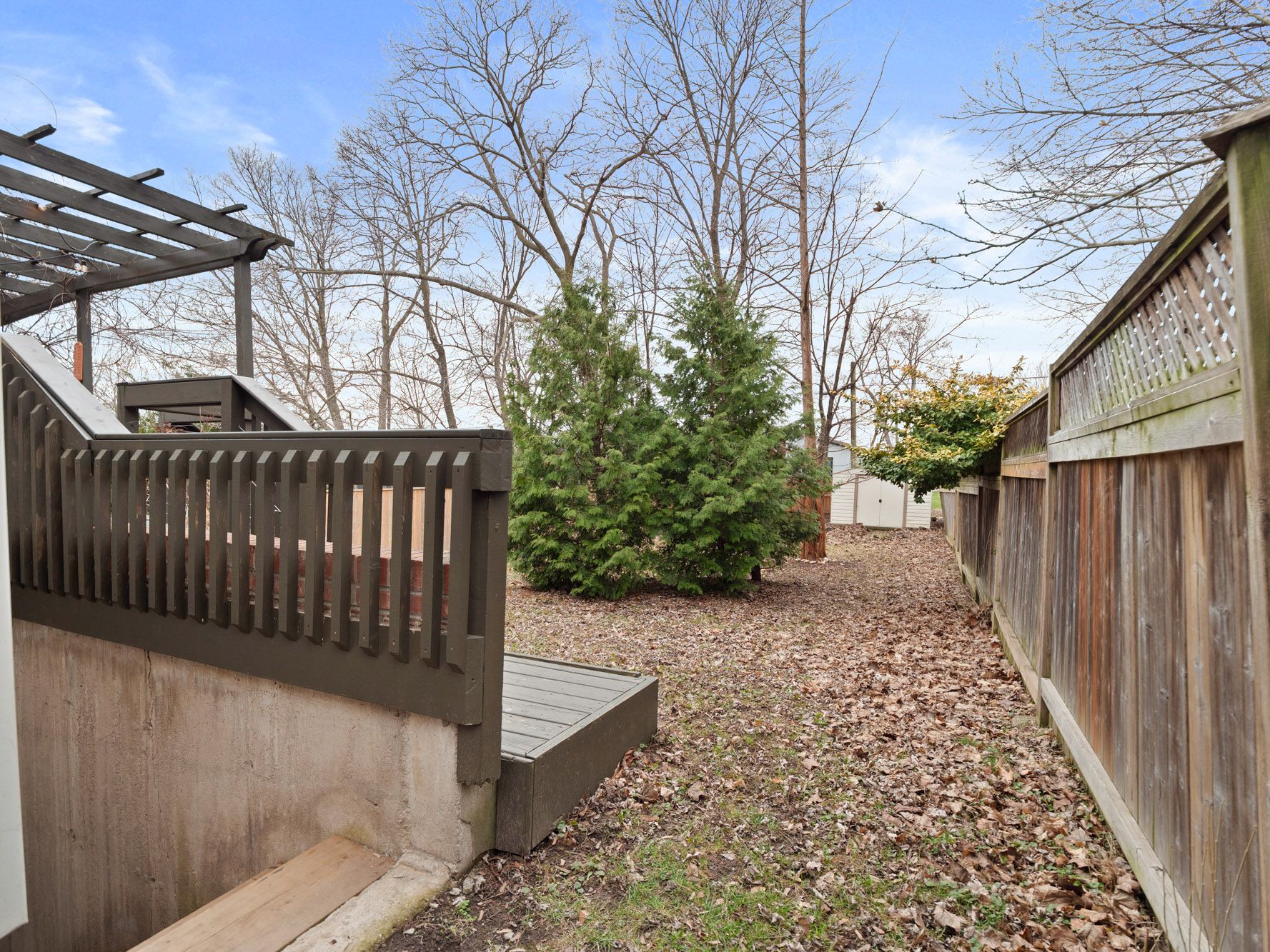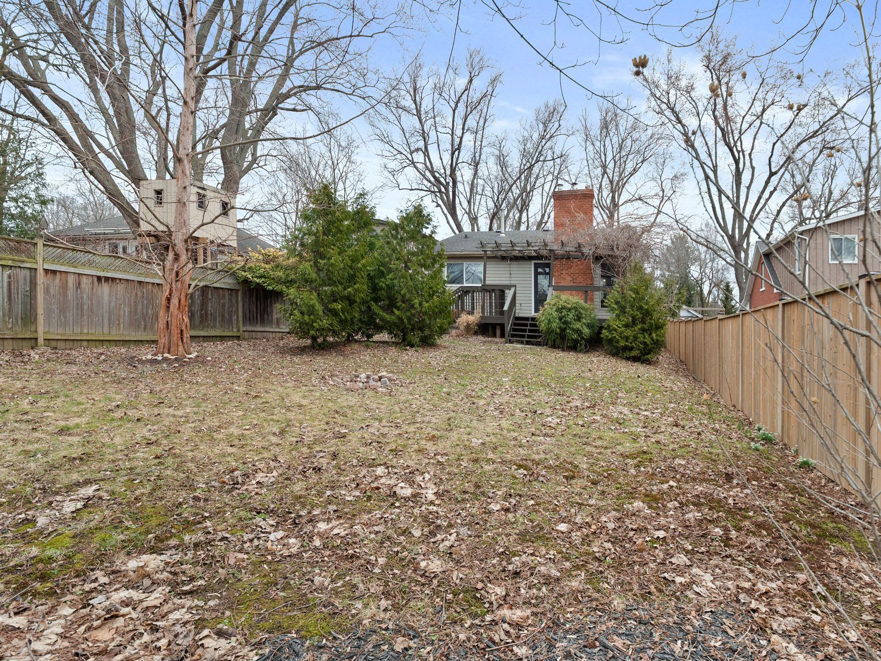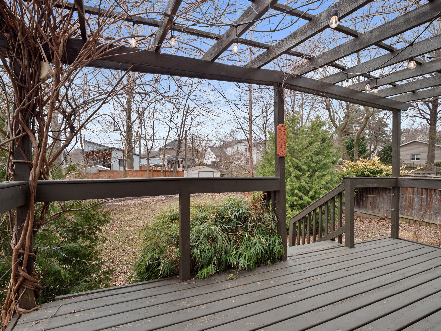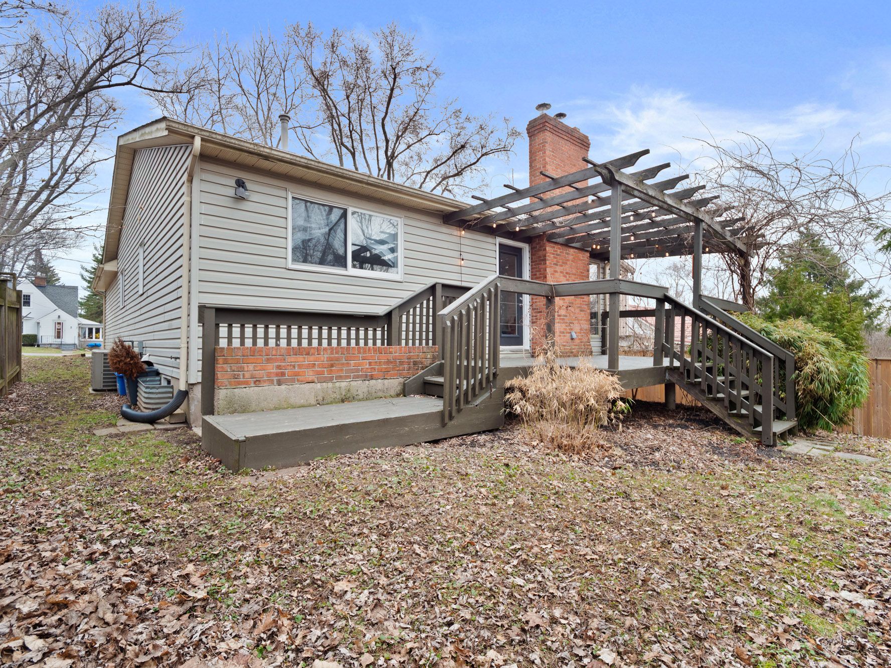 • Large yard with a deck and pergola for outdoor enjoyment.