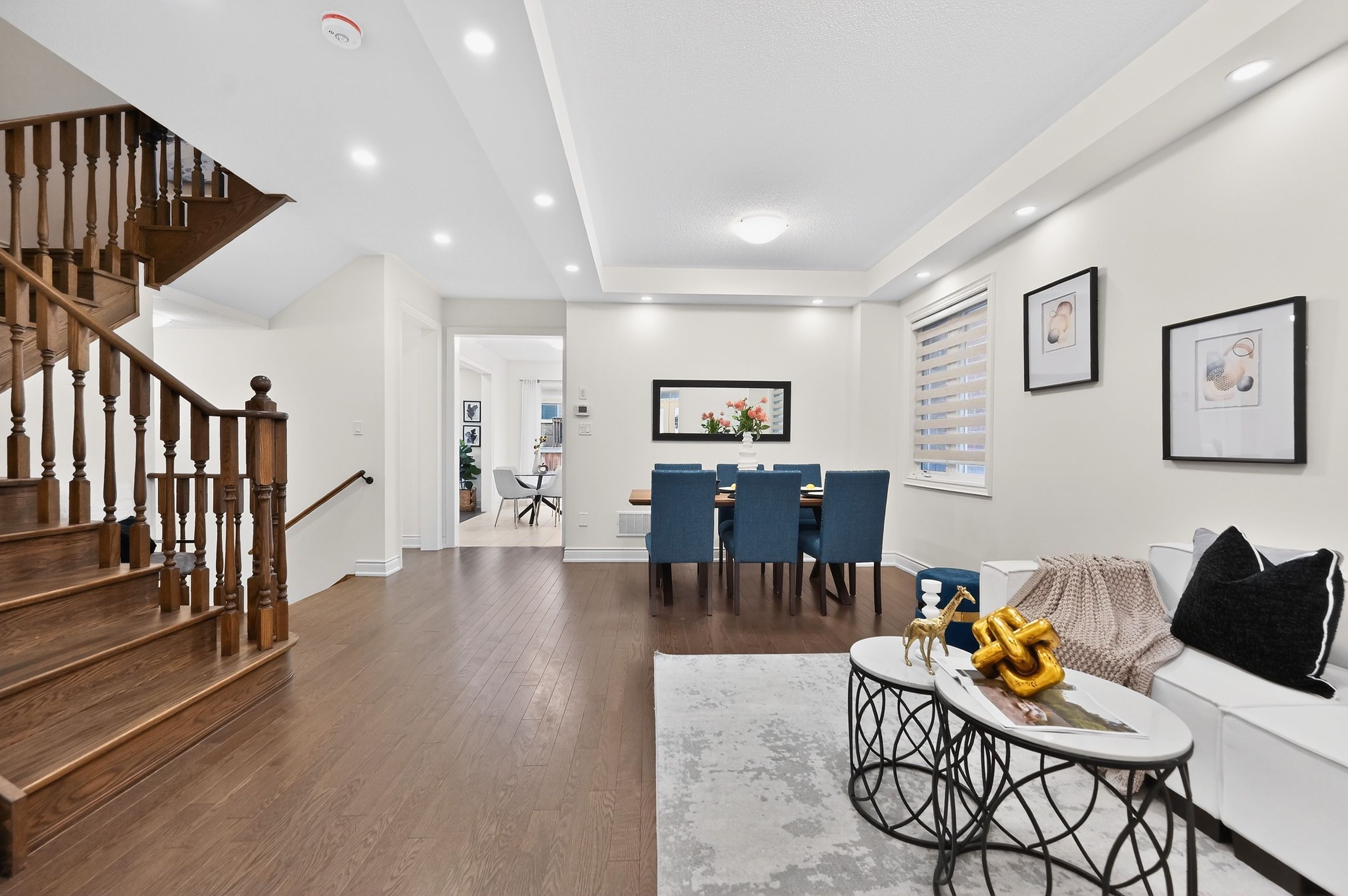 Bright and beautifully upgraded south-facing detached home offering a spacious open-concept layout perfect for modern living. Sunlight pours through large windows, filling the home with warmth throughout the day. The main floor features a seamless flow between the living, dining, and kitchen areas-ideal for both everyday comfort and entertaining. Located in a desirable neighborhood, this home combines natural light, functional design, and thoughtful upgrades-perfect for families seeking both style and convenience. D/doors entry/, pot light and hardwood floor through out main floor. Kitchen upgraded to quartz counter top.