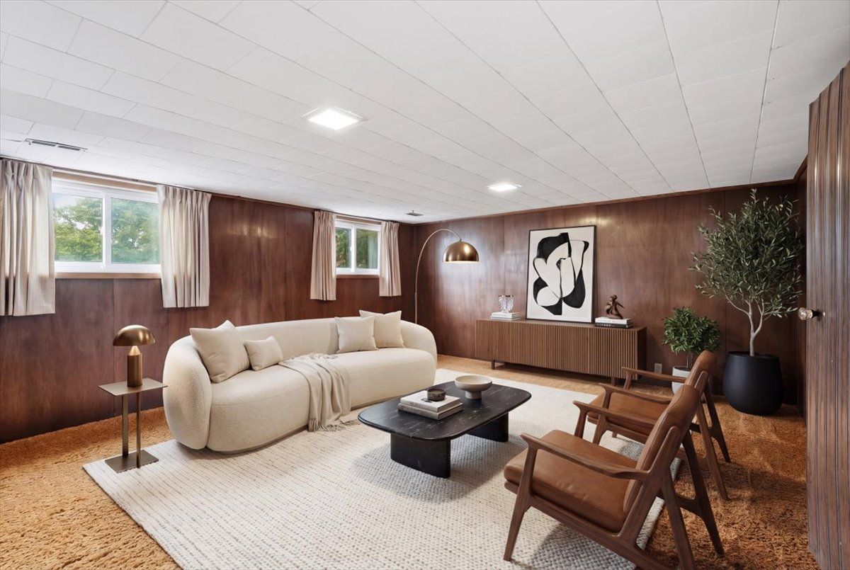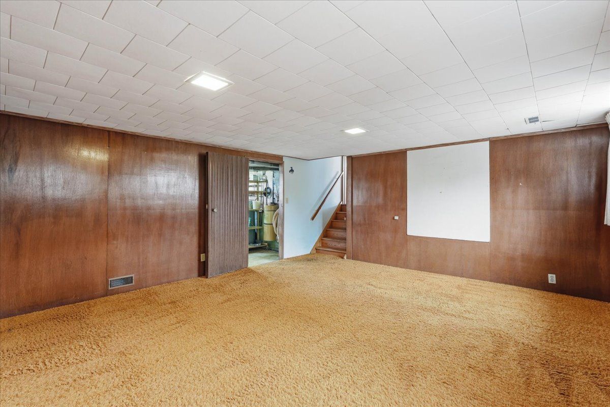 • Lower level features a large rec room and walkout to backyard.