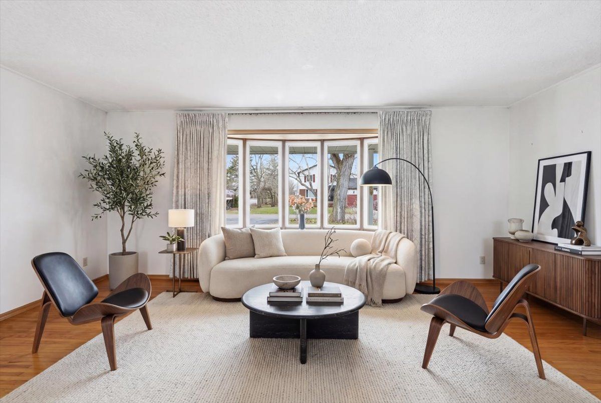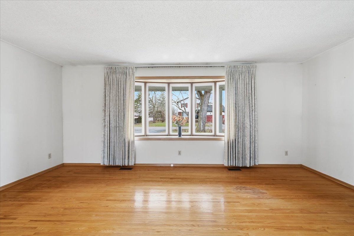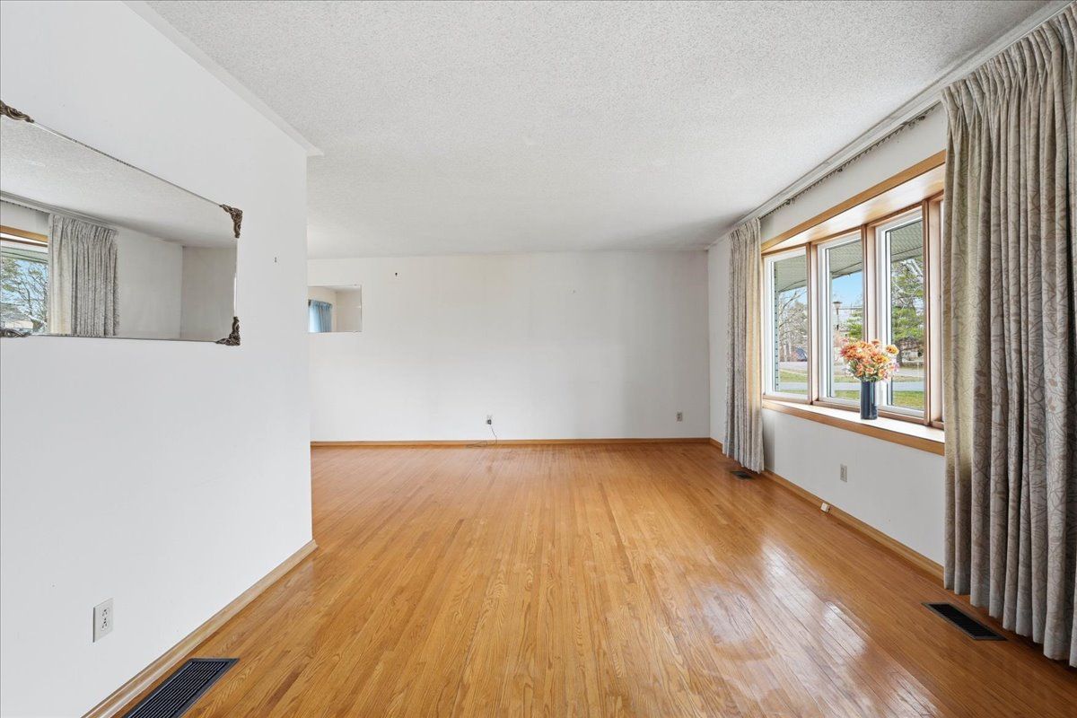 • Spacious living and dining area featuring hardwood floors.