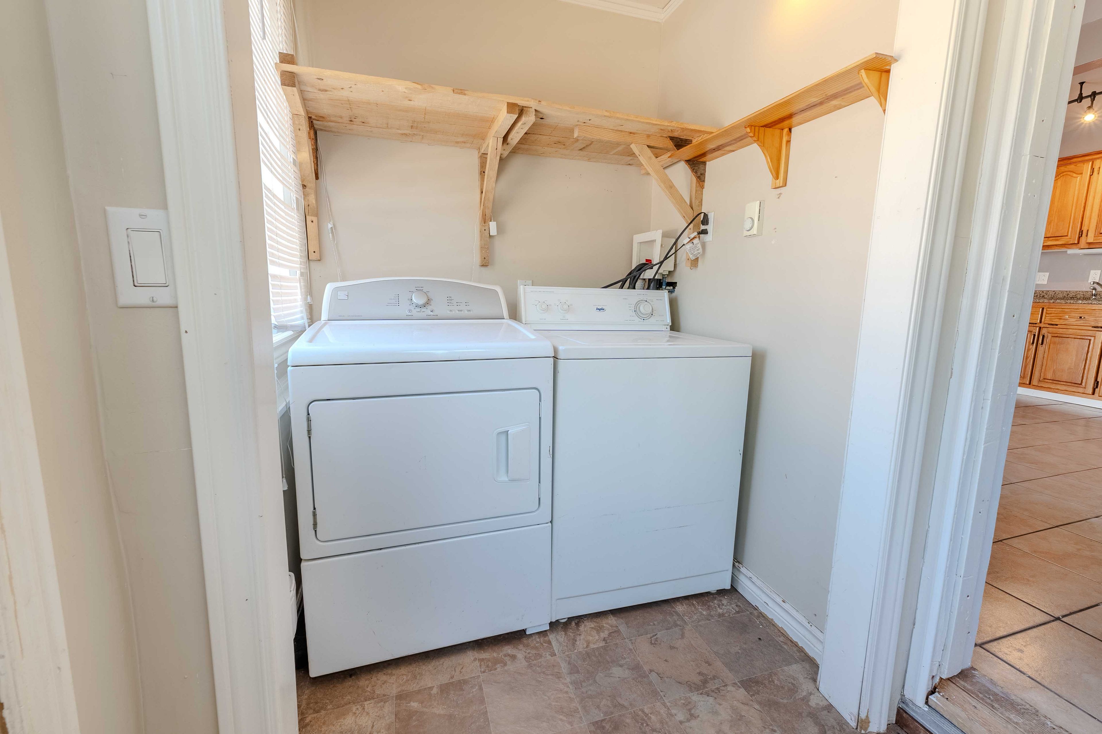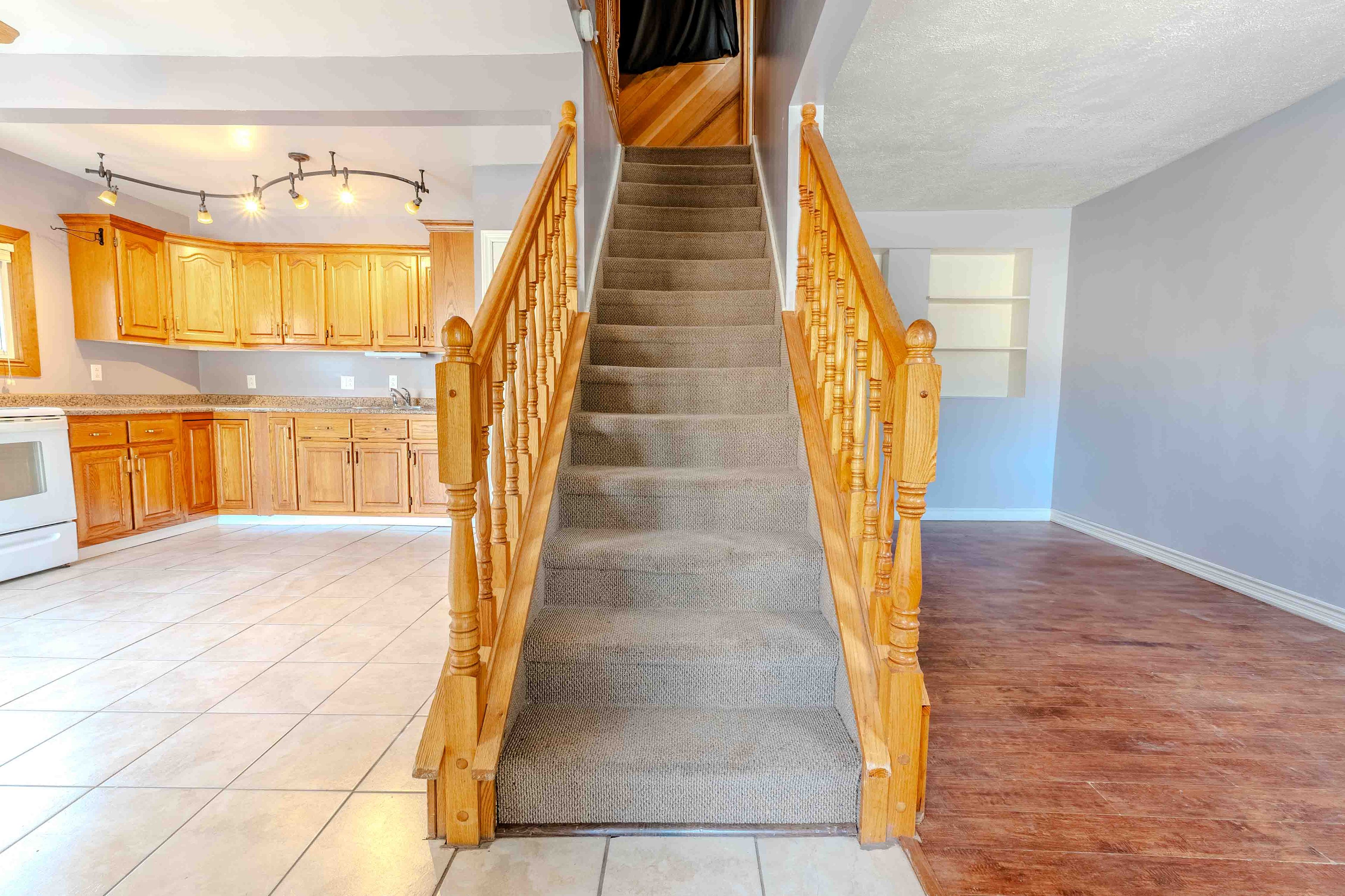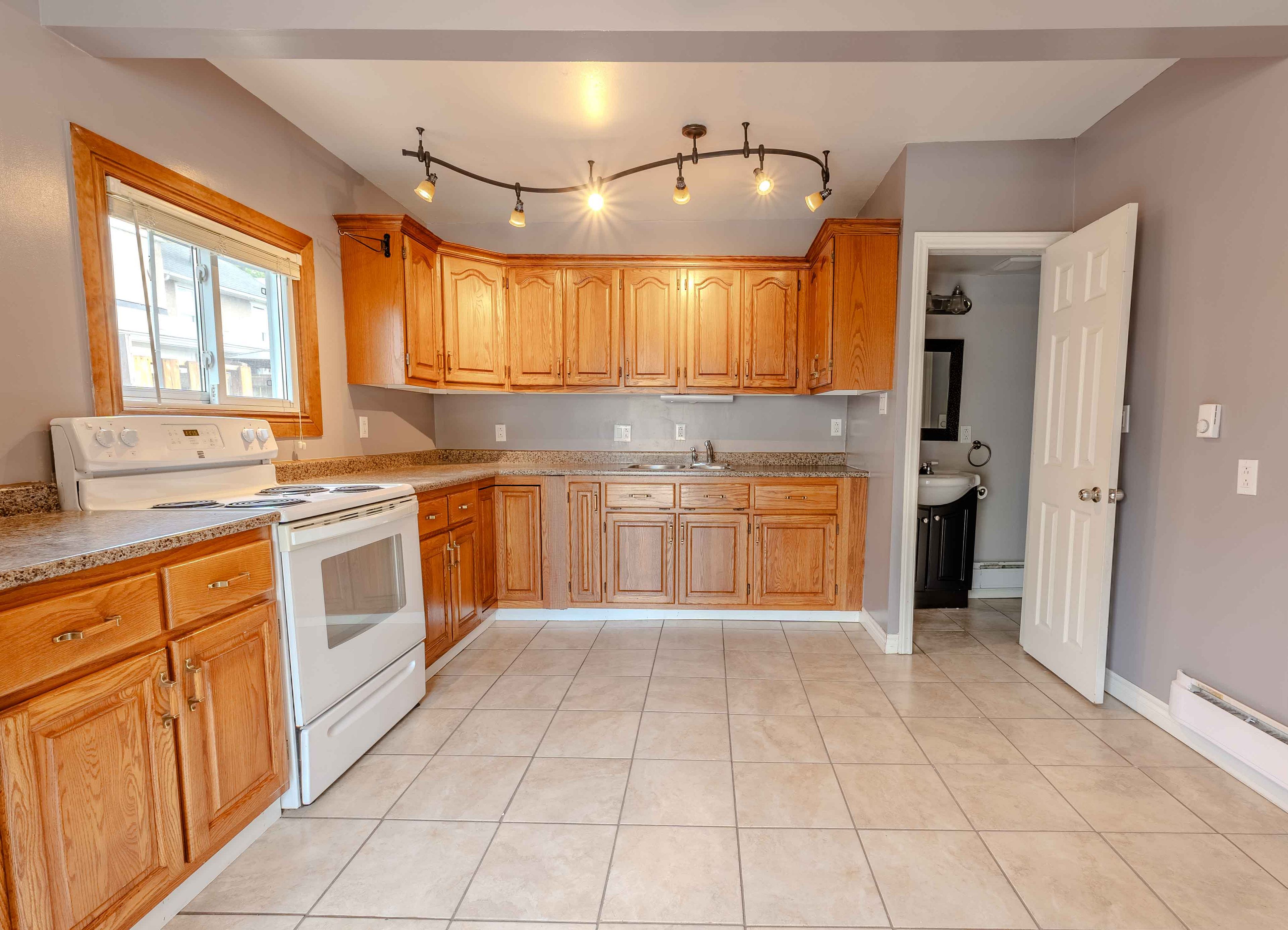 • Convenient main floor includes living room, eat-in kitchen, and laundry.