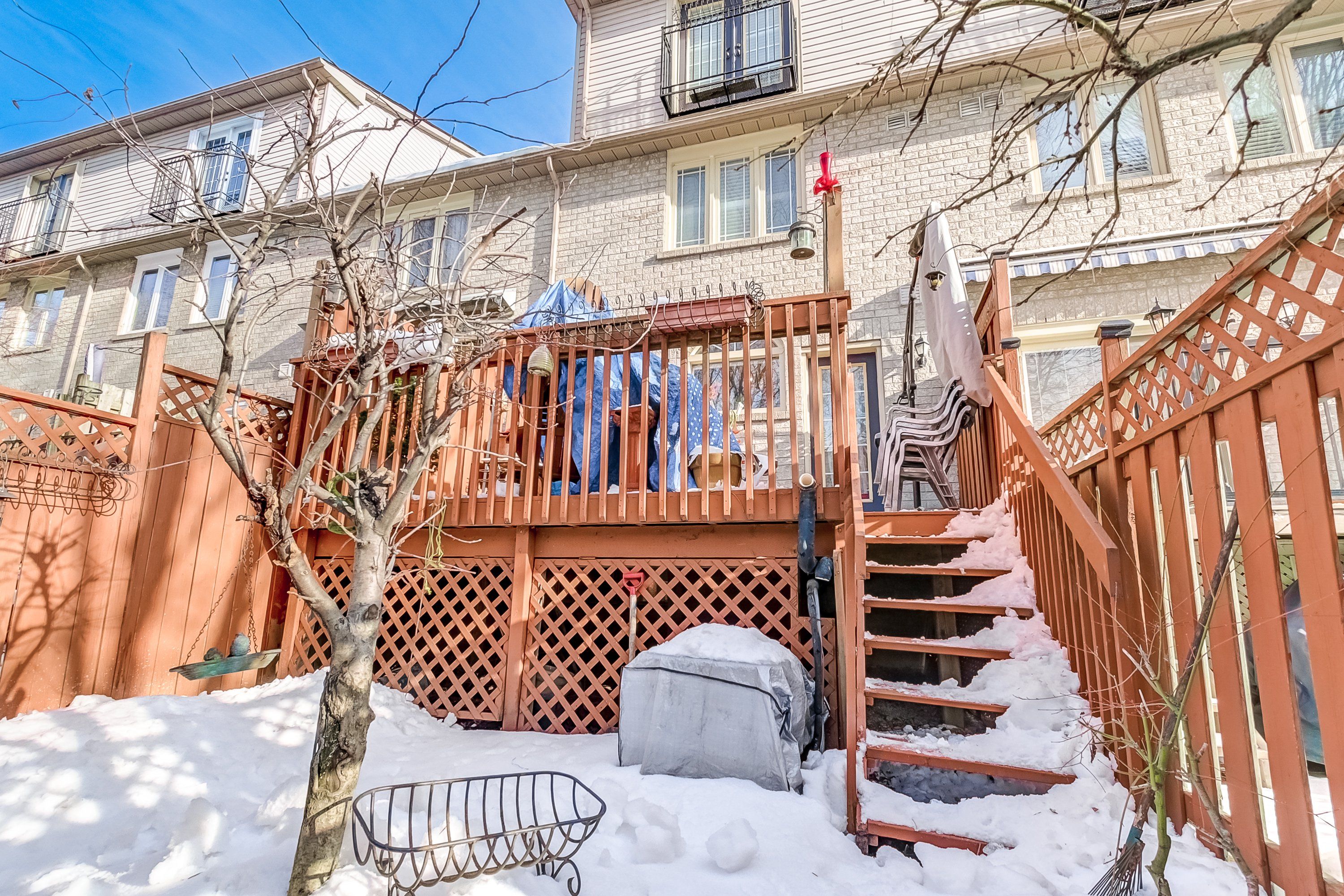 • Private deck and patio backing onto a park for outdoor relaxation.