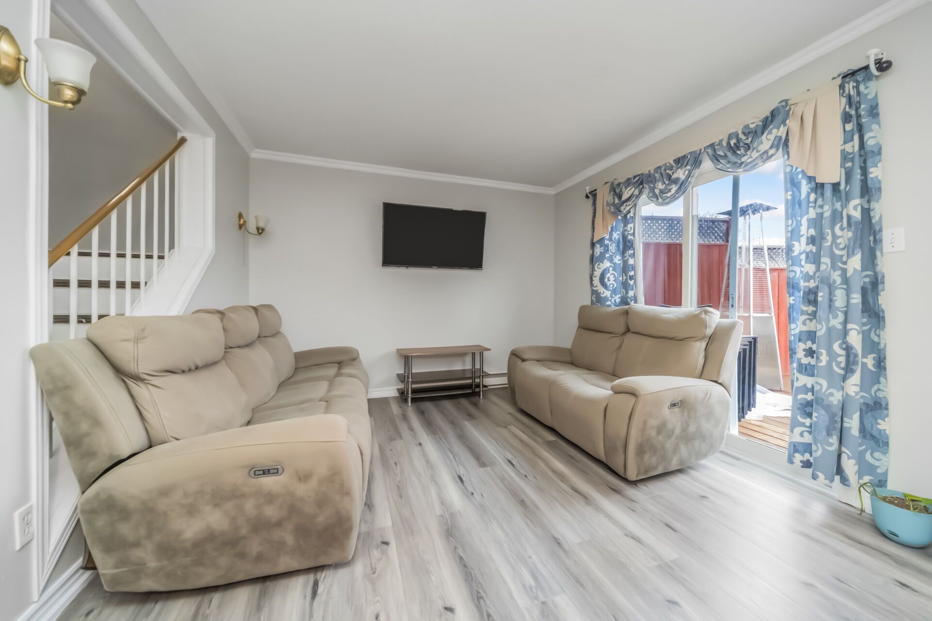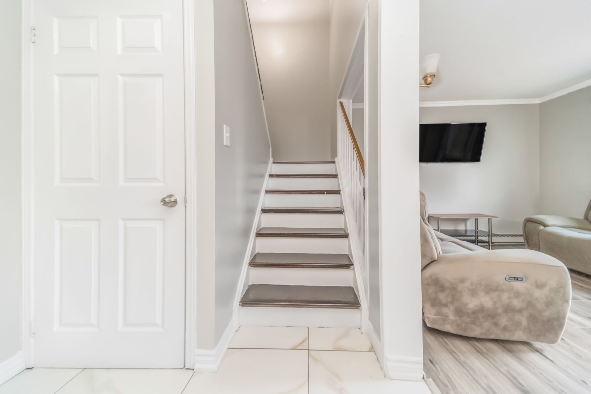 Stunning fully renovated freehold townhouse in prime family-friendly locationbeautifully renovated 3+1 bedroom freehold townhouse in prime family-friendly locationdiscover this stunning, fully renovated 3+1 bedroom freehold townhouse, designed to feel like asemi-detached end unit, tucked away on a quiet, child-safe cul-de-sac with an oversized lot. Step inside to find elegant crown moulding throughout and a spacious, sunlit living room thatseamlessly opens to a private deck-perfect for entertaining or relaxing. The modern kitchenboasts sleek undermount lighting and stylish finishes, offering a warm and functional space foreveryday living. Rest easy knowing the roof, siding, fence, providing peace of mind. The entire home underwent amajor renovation, including a modern kitchen, updated bathrooms, stylish flooring, and a fullyfinished basement-perfect for additional living space, a home office, or a guest suite. For ultimate convenience, your backyard gate leads directly to transit, making commuting abreeze. This home is just minutes from chinguacousy park, top-rated schools, and bramalea citycentre, offering the perfect blend of lifestyle, location, and convenience. Move-in ready and perfect for families-don't miss out! Book your showing today and make this gem your new home!
