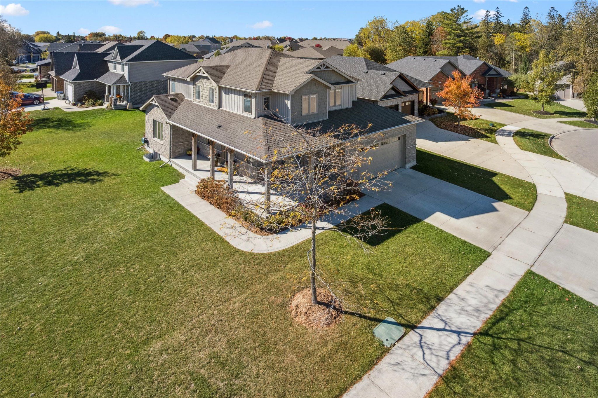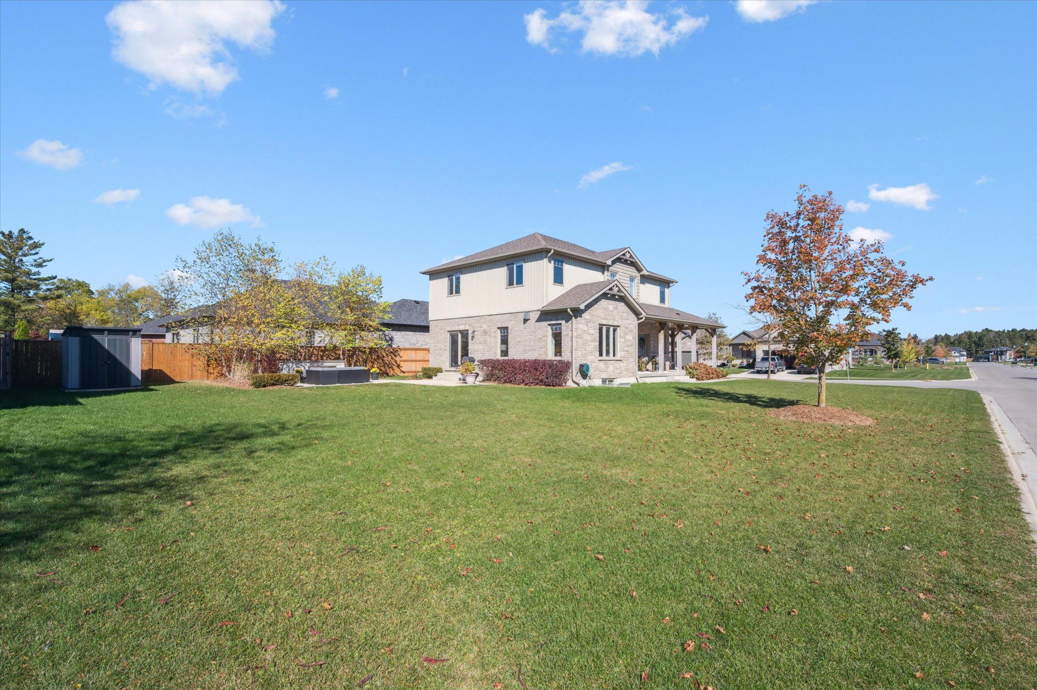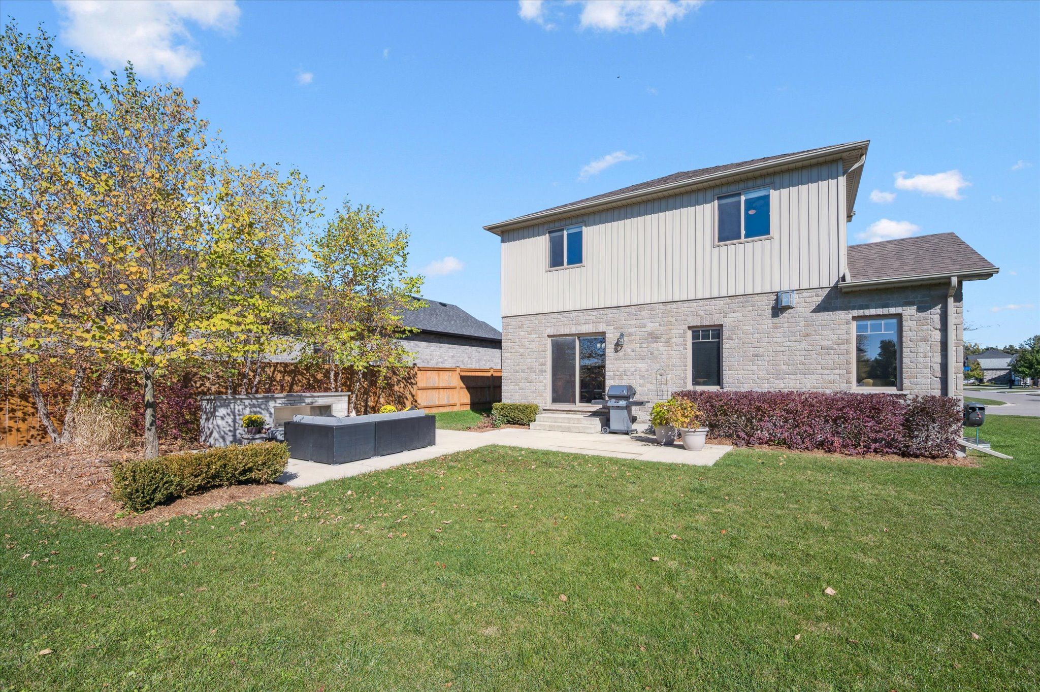 Welcome to 8 griffith court, a beautiful home where timeless elegance and everyday comfort come together in the coveted emerald greens neighbourhood of listowel. Expertly crafted by o'malley homes, this exceptional 4 bedroom, 3 bathroom home offers nearly 2,300 sq. Ft. Of beautifully curated living space - perfectly suited for modern family life. The main level impresses with 9' ceilings, rich hardwood flooring, and an expansive living room anchored by a warm gas fireplace and sun-filled windows that enhance the home's airy, inviting atmosphere. At the heart of the home, the beautiful kitchen showcases quality cabinetry, gleaming granite countertops, stainless steel appliances, and a generous island ideal for both casual mornings and effortless entertaining. The dining area comfortably hosts family gatherings and opens through sliding glass doors to a thoughtfully designed outdoor retreat, complete with a concrete patio, outdoor fireplace, gas bbq hookup, and ample backyard space for children or pets to enjoy. Completing the main level is a home office space, a convenient 2-pce bathroom, and direct access to the double-car garage. Ascend the open staircase to a well-planned second level featuring a large primary bedroom suite with his-and-her closets and a beautifully appointed ensuite bathroom. Three additional spacious bedrooms, an additional full bathroom, and a dedicated laundry area provide both comfort and functionality. The lower level is already framed and offers impressive approximately 9' ceilings, a rough-in for a bathroom, and endless potential - whether envisioned as a home theatre, gym, or playroom. Ideally located just steps from golf, schools, recreation facilities, and scenic parks and trails, this is a home that truly elevates everyday living. Discover the lifestyle that awaits in the emerald greens neighbourhood of listowel - where families thrive and every day feels a little more special.