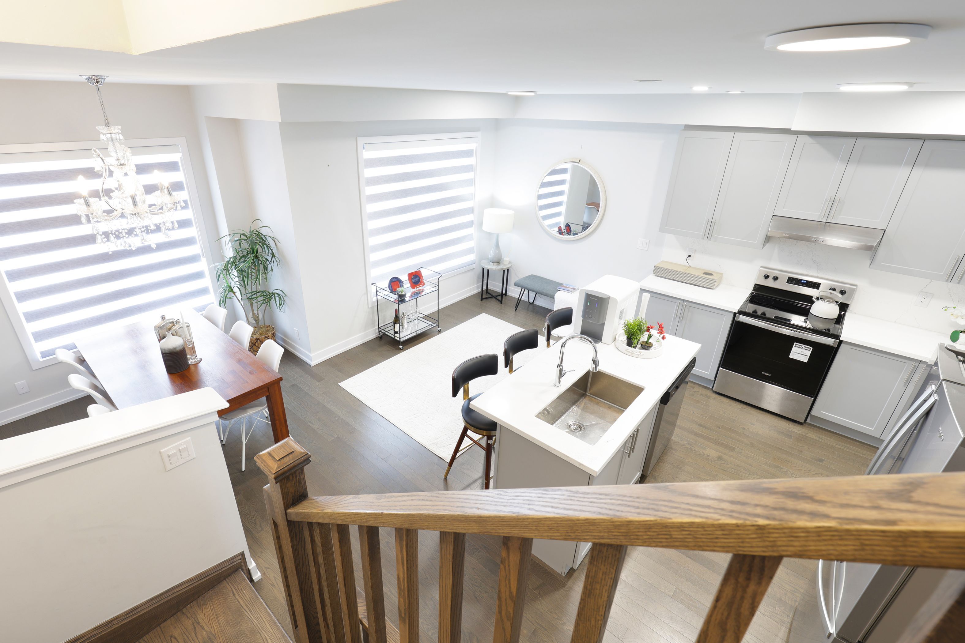 • Stylish open-concept kitchen with granite countertops and designer finishes.