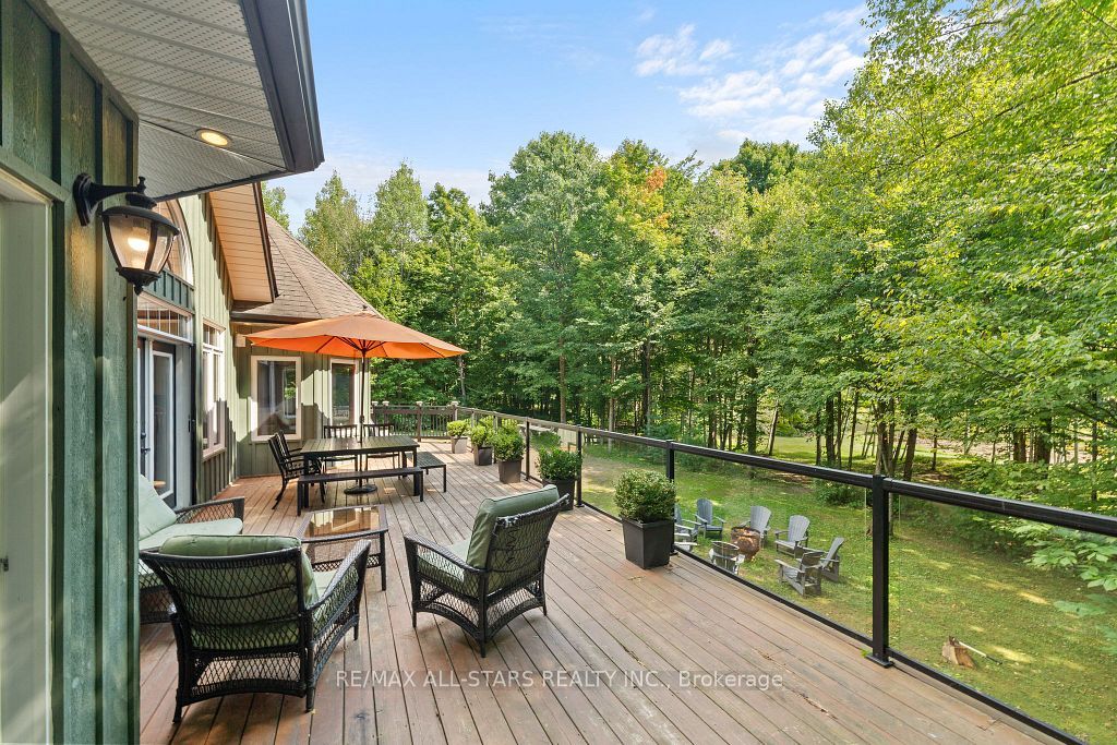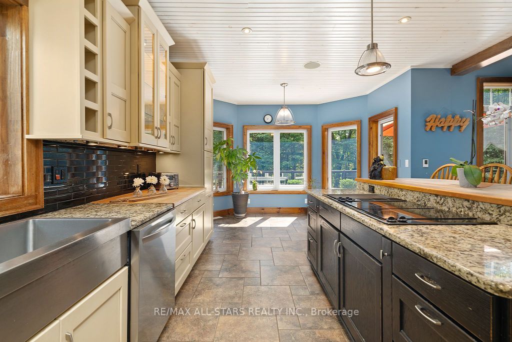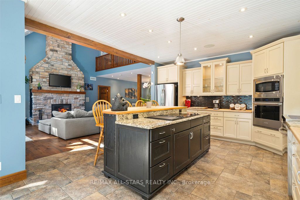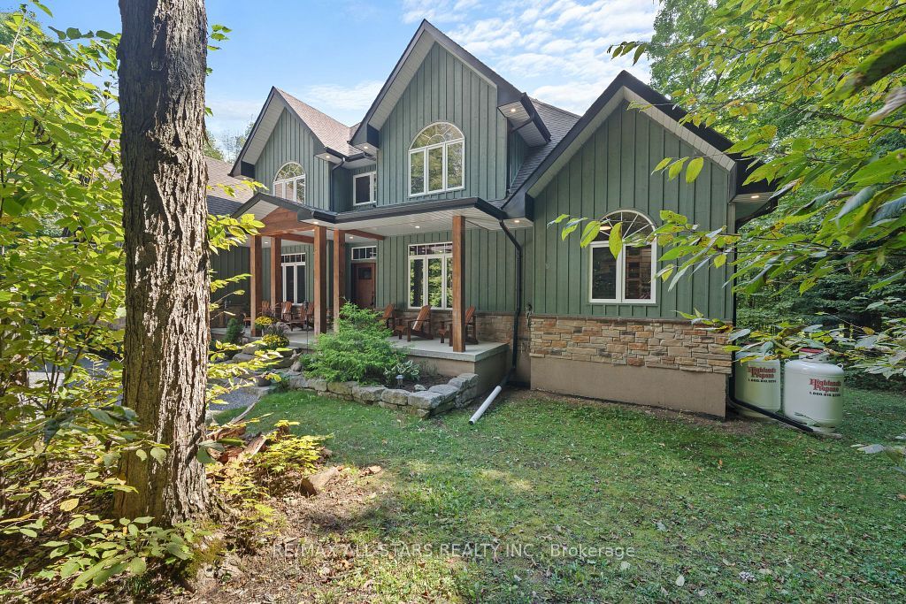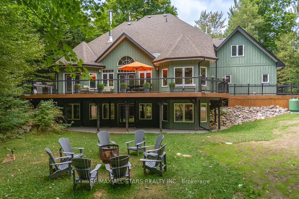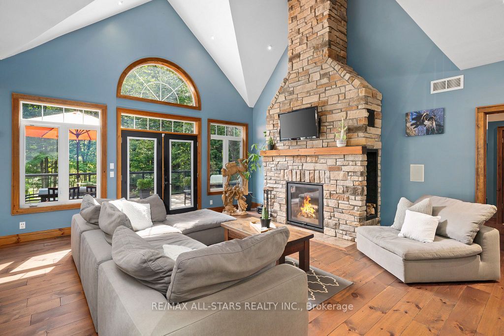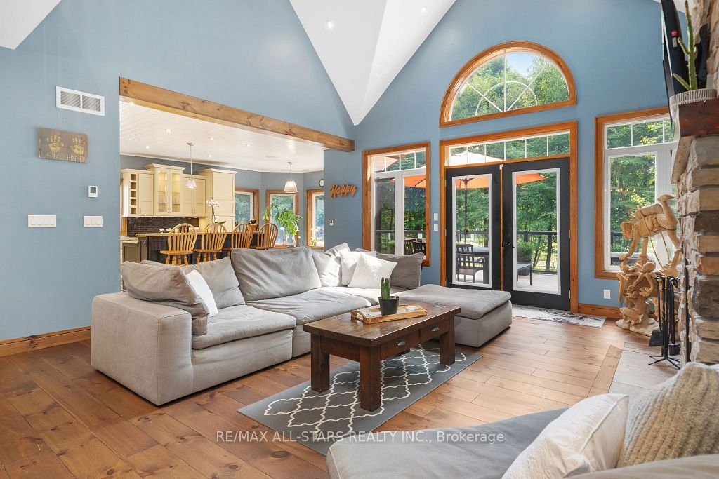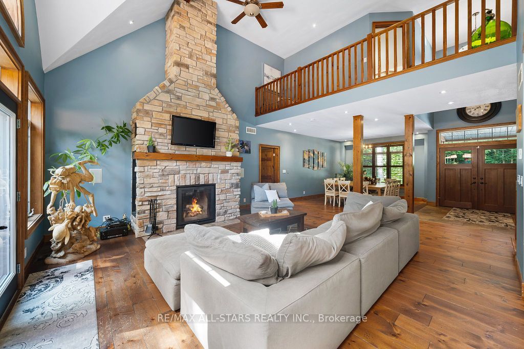 Welcome to black bear estates, where luxury and nature converge. This magnificent 3,404 sq/ft home offers over 190 ft of private waterfront connected to the renowned trent severn waterway. Featuring 6 bedrooms and 4 bathrooms, this home is designed for comfort and style. The main floor welcomes you with wide plank wood floors, 18 ft vaulted ceilings in the living room and a stunning floor-to-ceiling stone fireplace that sets the tone for relaxation. The open-concept layout also includes a large dining area, a gourmet eat-in kitchen, and main-floor laundry for convenience. The primary suite is a true retreat, with his-and-her walk-in closets, a spa-like 5-piece en-suite with a jacuzzi tub, dual vanities and a glass walk-in shower. Step out onto the private deck to enjoy sweeping views of the expansive backyard and tranquil waterfront. Upstairs, you'll find two bedrooms, an oversized versatile bonus room, perfect for a bedroom, games room, or office. The walk-out basement adds even more living space with a large family room, games area, workout space, bedroom and bathroom. There's also a generous storage room and oversized mudroom with plenty of space to keep everything organized. Outside, the property offers a large backyard, perfect for outdoor entertaining with a beach like waterfront and private dock or quiet evenings by the fire. This home is ideal for those seeking a luxurious, peaceful lifestyle on the water.