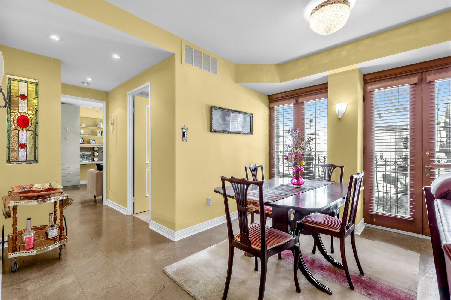 Nestled in a boutique condominium building surrounded by stately homes and mature greenery, this charming suite offers approximately 989 sq. Ft. Of thoughtfully designed living space in one of toronto's most coveted neighbourhoods. A welcoming foyer entry opens to an expansive living and dining room, beautifully anchored by a rare wood burning fireplace, the perfect setting to unwind. A wall of windows with four juliette balconies brings in abundant natural light while inviting fresh air and leafy neighbourhood views. The open concept kitchen features a distinctive curved island with breakfast bar seating, creating an ideal space for casual dining and entertaining while remaining connected to the principal living area. Beyond the main living space, the suite offers the luxury of separate living zones, including a comfortable primary bedroom with a bright sunroom that provides a wonderful extension, perfect for a reading area, or quiet retreat. The second bedroom is ideal as a home office or guest room, filled with natural light and offering a versatile space for work or relaxation. Additional conveniences include ensuite laundry, one underground parking space, and an out of suite locker. Residents enjoy outdoor living on the rooftop terrace, ideal for entertaining, summer barbecues, and tending to a small garden. The building also features a beautifully maintained shared backyard offering a rare and peaceful outdoor retreat for residents. The location is exceptional, steps to parks, scenic trails, the ravine system, and the evergreen brick works, with castle frank ttc station within walking distance and the shops and restaurants of yorkville just a short stroll away. A rare opportunity to enjoy peaceful, character filled living in a beautifully situated pet friendly building.