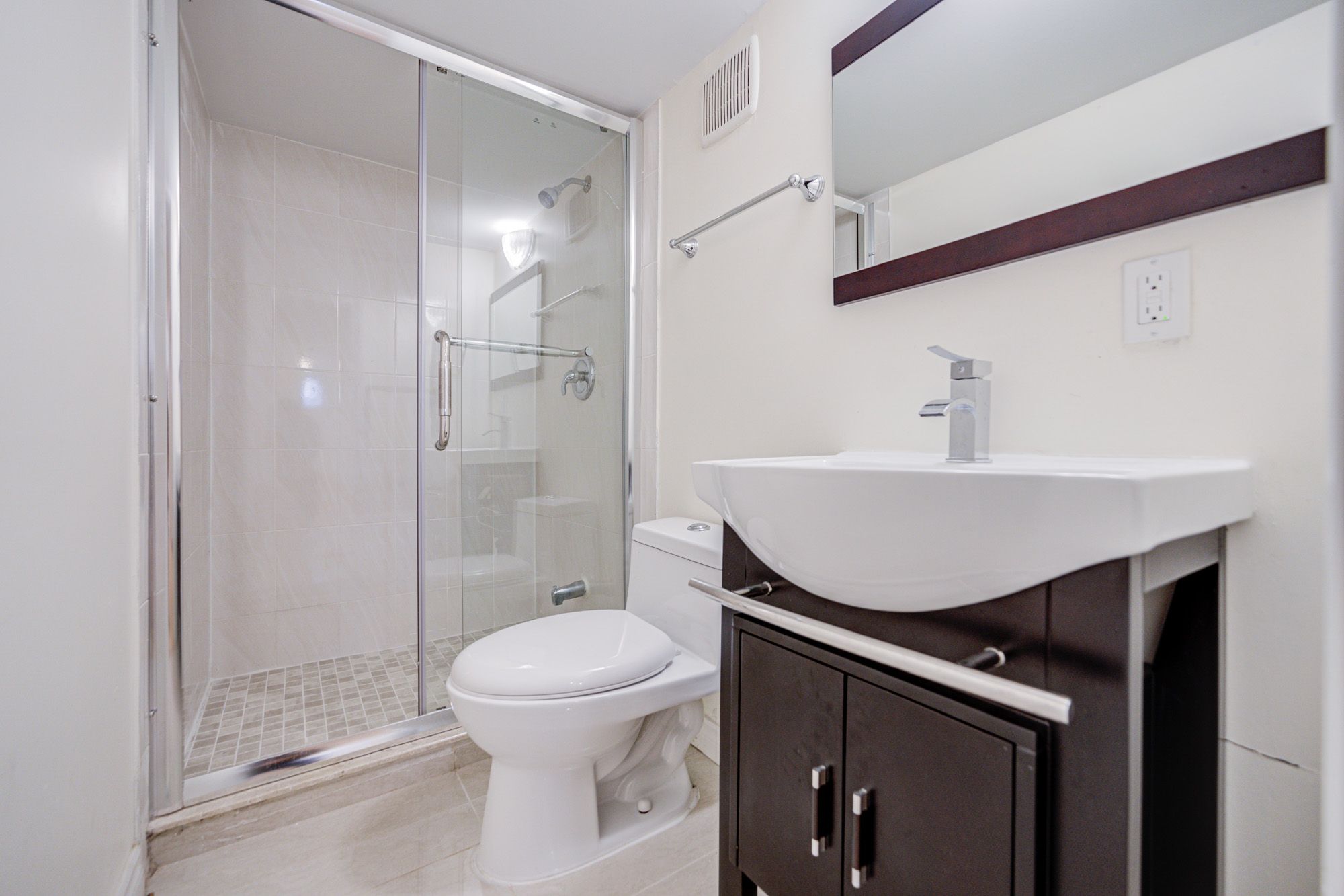 • Modern kitchen and bathrooms with hardwood floors throughout.