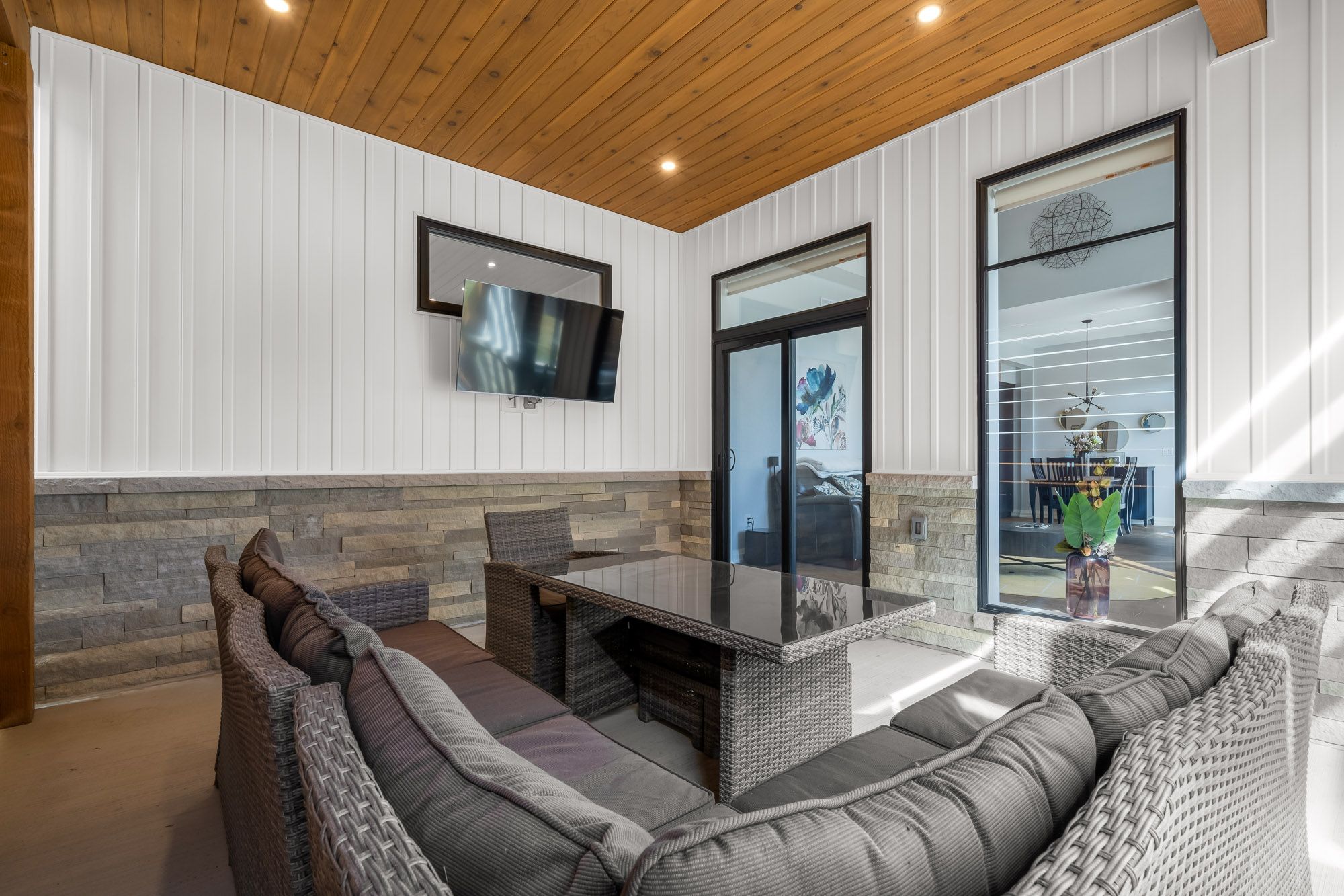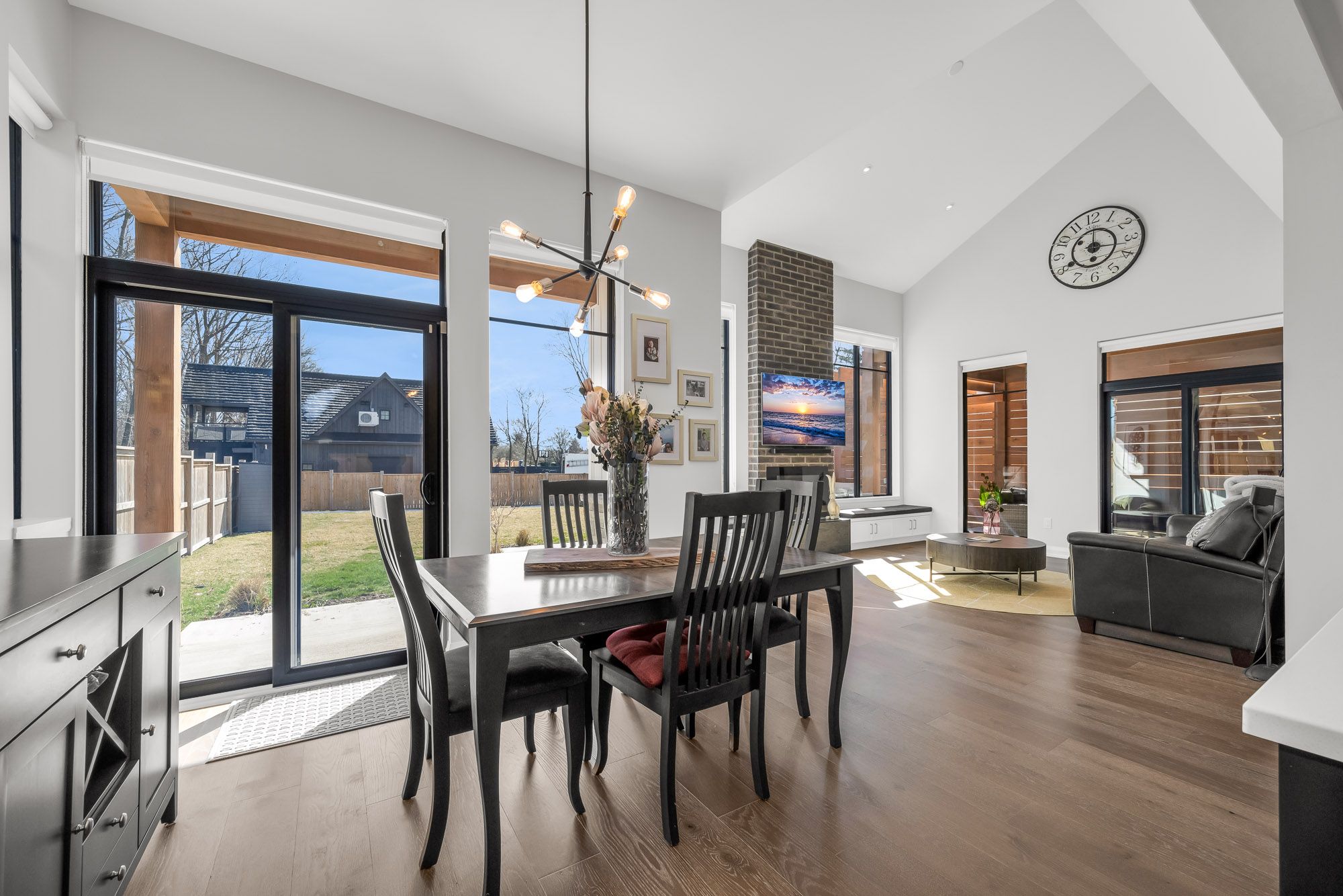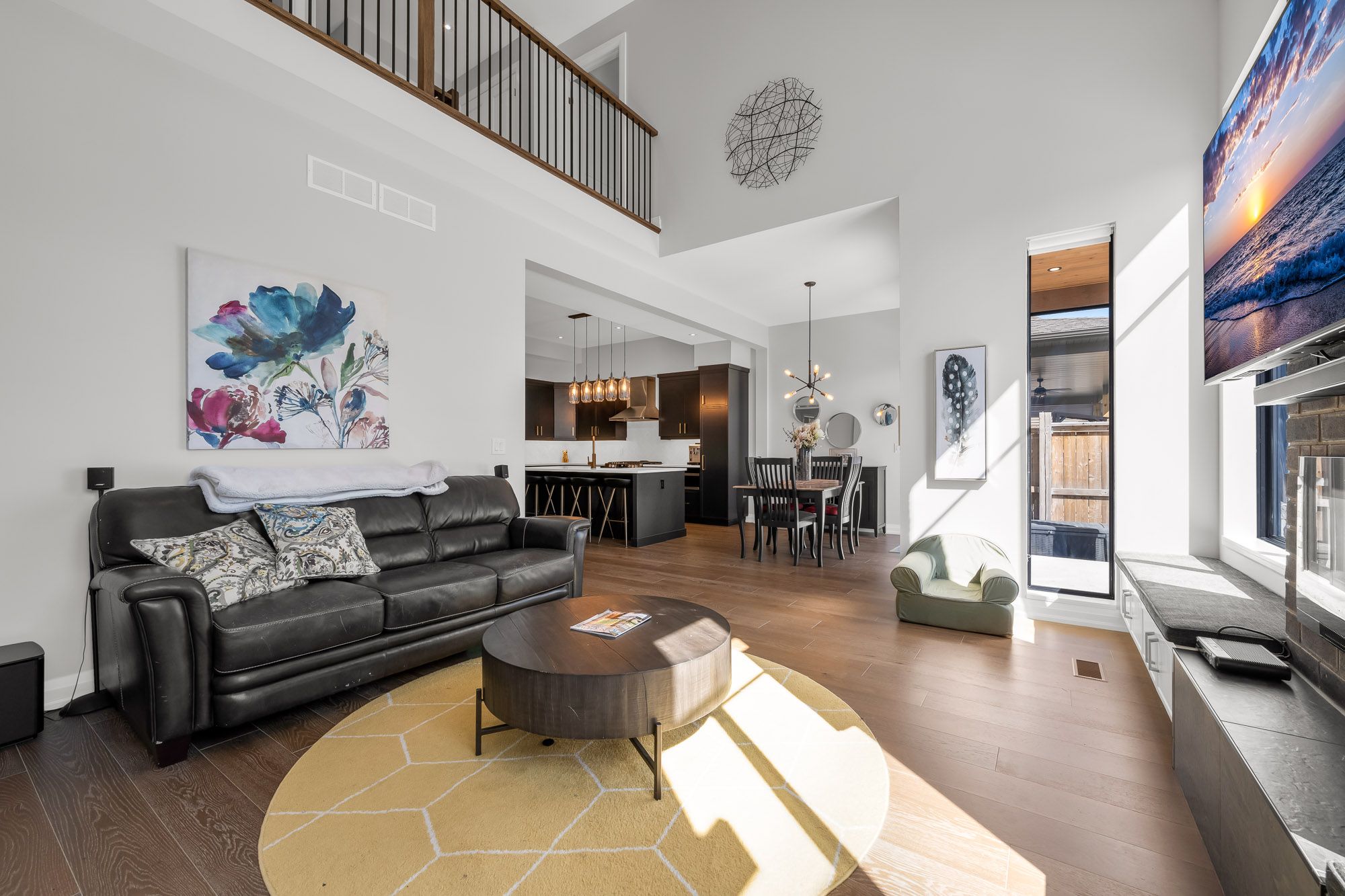 • Great room features towering vaulted ceiling and leads to a covered deck.