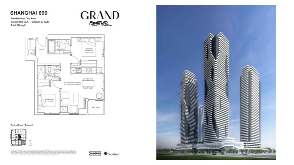 Brand new, never lived in 2-bedroom, 2-bathroom southwest corner unit in the prestigious grand festival towers! This high-level suite offers an exceptional layout with abundant natural light pouring through large windows, showcasing breathtaking views of the cn tower and the toronto skyline right beneath you. The spacious primary bedroom features a private 4-piece ensuite, while the second bedroom is conveniently located beside a modern 3-piece bathroom-perfect for guests, roommates, or family. Enjoy high ceilings and a contemporary living space complemented by brand-new built-in appliances and stylish finishes throughout. Ideal for young professionals, couples, or students seeking comfort, convenience, and vibrant city living. Located just minutes from ttc transit, vmc subway station, viva bus lines, and highway 400, commuting across the gta is effortless. Everyday essentials and entertainment are all nearby, including costco, cineplex, dollarama, a variety of restaurants, grocery stores, pubs, and more. You're also close to vaughan mills and countless lifestyle amenities. Enjoy unbeatable connectivity with a direct subway trip to downtown toronto or easy access to markham via viva transit. Experience modern living in one of vaughan's most desirable locations-close to everything you need.
