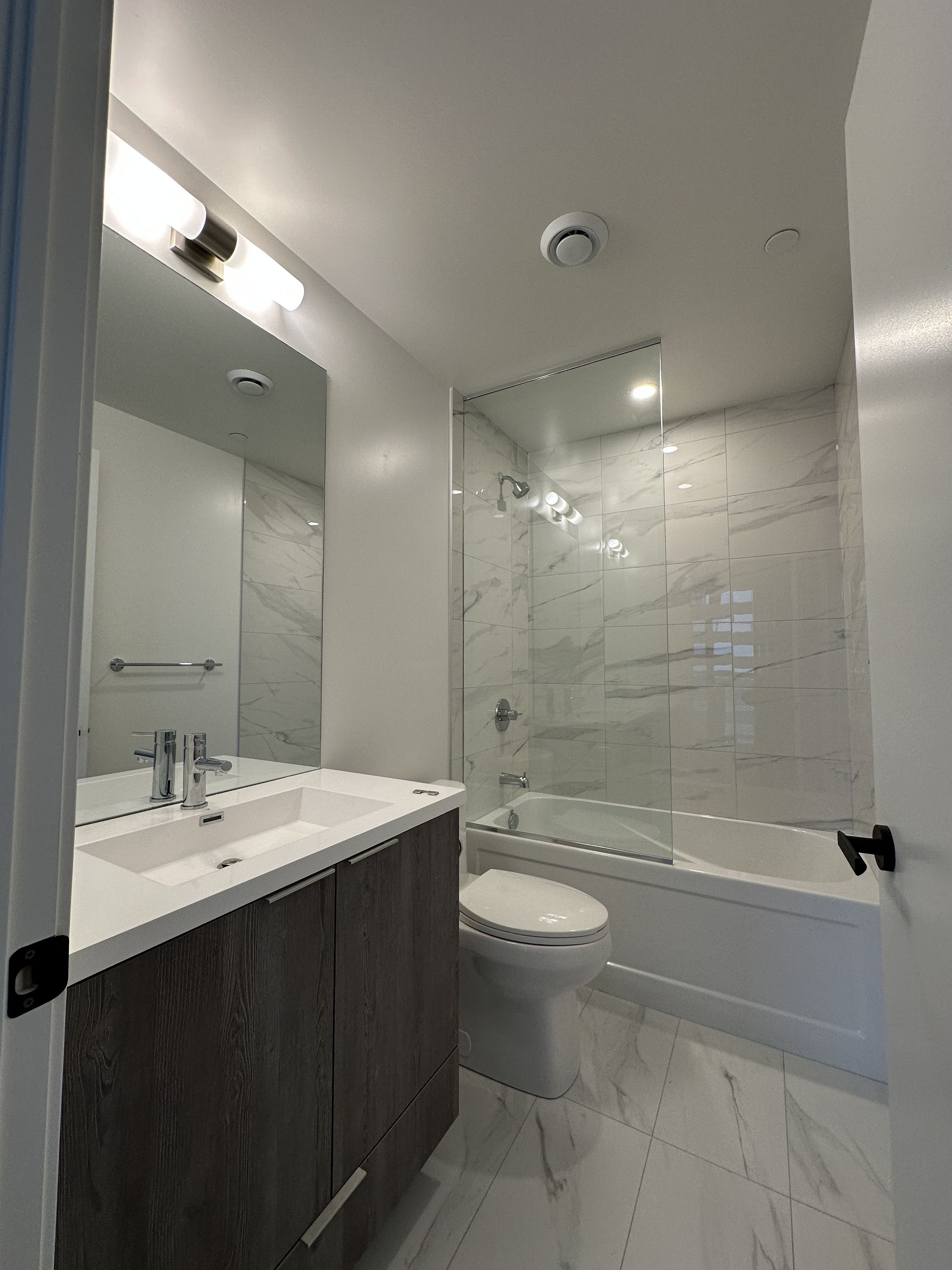 Brand new & luxury menkes high built, 1 bedroom+den with 2 bathroom. Master bedroom with ensuite 4-piece bathroom. Den convertible to a home office or 2nd bedroom. Interior 583sqft and with large balcony. This unit features a bright and functional open-concept layout with floor-to-ceiling windows, high end finishes, stone countertops, and integrated appliances. Conveniently located just steps from the vmc subway station and quick access to hwy 400 & 407, go train, ttc subway, york university, cineplex, ikea, costco, many restaurants, and easy to reach to canada's wonderland and vaughan mills. Perfect for professionals, students, or anyone seeking style, convenience, and connectivity in one of vaughan's most exciting communities. A vibrant, new downtown surrounded by modern office towers, immersive retail shopping and expansive green spaces.