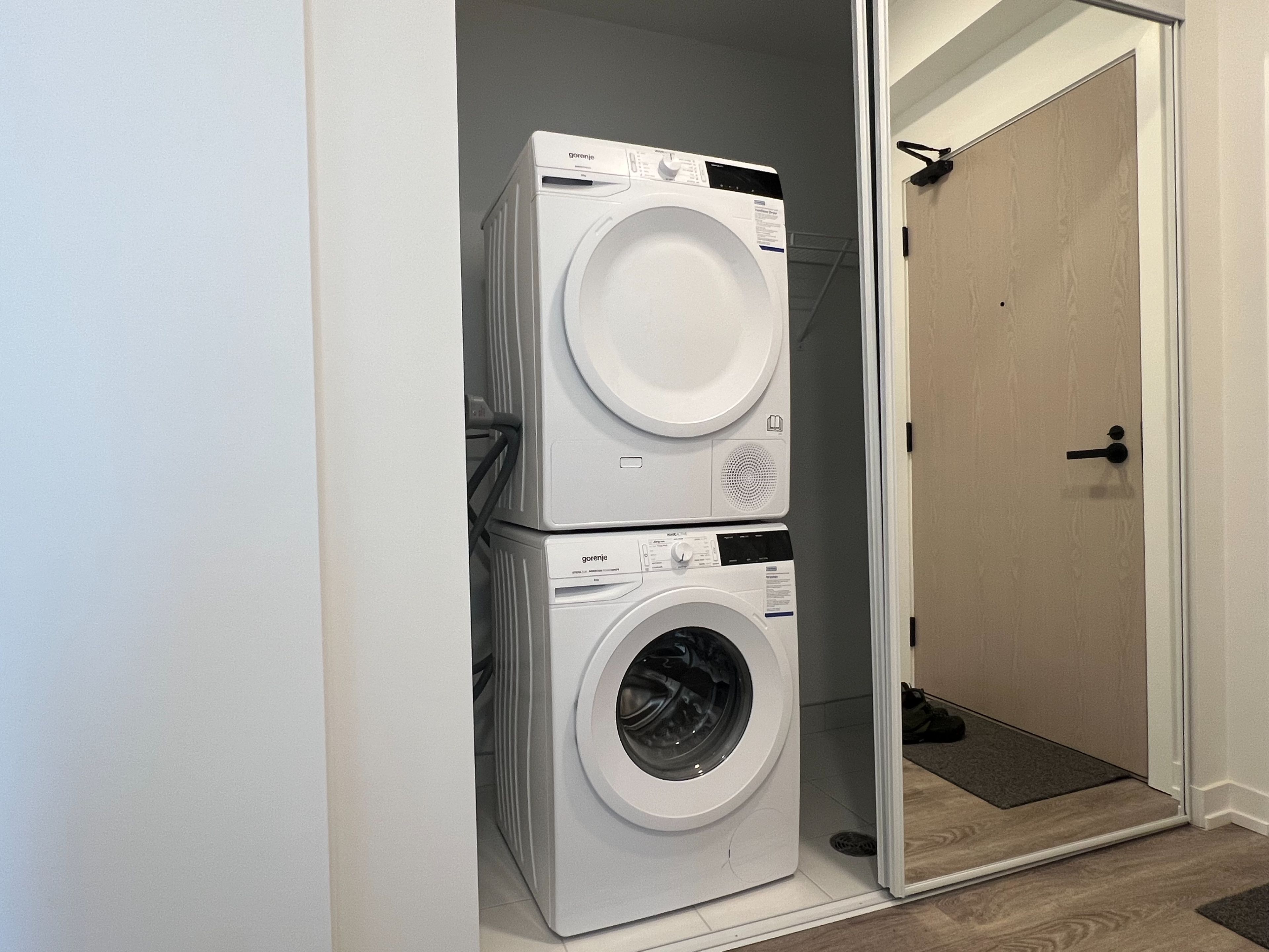 Brand-new grand festival tower c by menkes. This bright and spacious 2-bedroom corner suite features unobstructed southeast-facing city views and an efficient 699 sq. Ft. Layout. Floor-to-ceiling windows and 9-foot ceilings fill the unit with natural light, complemented by a sleek open-concept kitchen with quartz countertops and built-in appliances. The well-separated bedrooms provide excellent privacy, with the primary bedroom offering a private ensuite. Enjoy an expansive wrap-around balcony ideal for outdoor living. Ensuite laundry and one underground parking space included. Conveniently located steps from vmc subway station, bus transit, and highway 7, with quick access to highways 400/407, vaughan mills, ikea, costco, and york university. Residents have access to premium amenities including a fitness centre, bbq terrace, party lounge, and 24-hour concierge. An exceptional corner unit in a fast-growing and highly desirable community. One parking and one locker included.