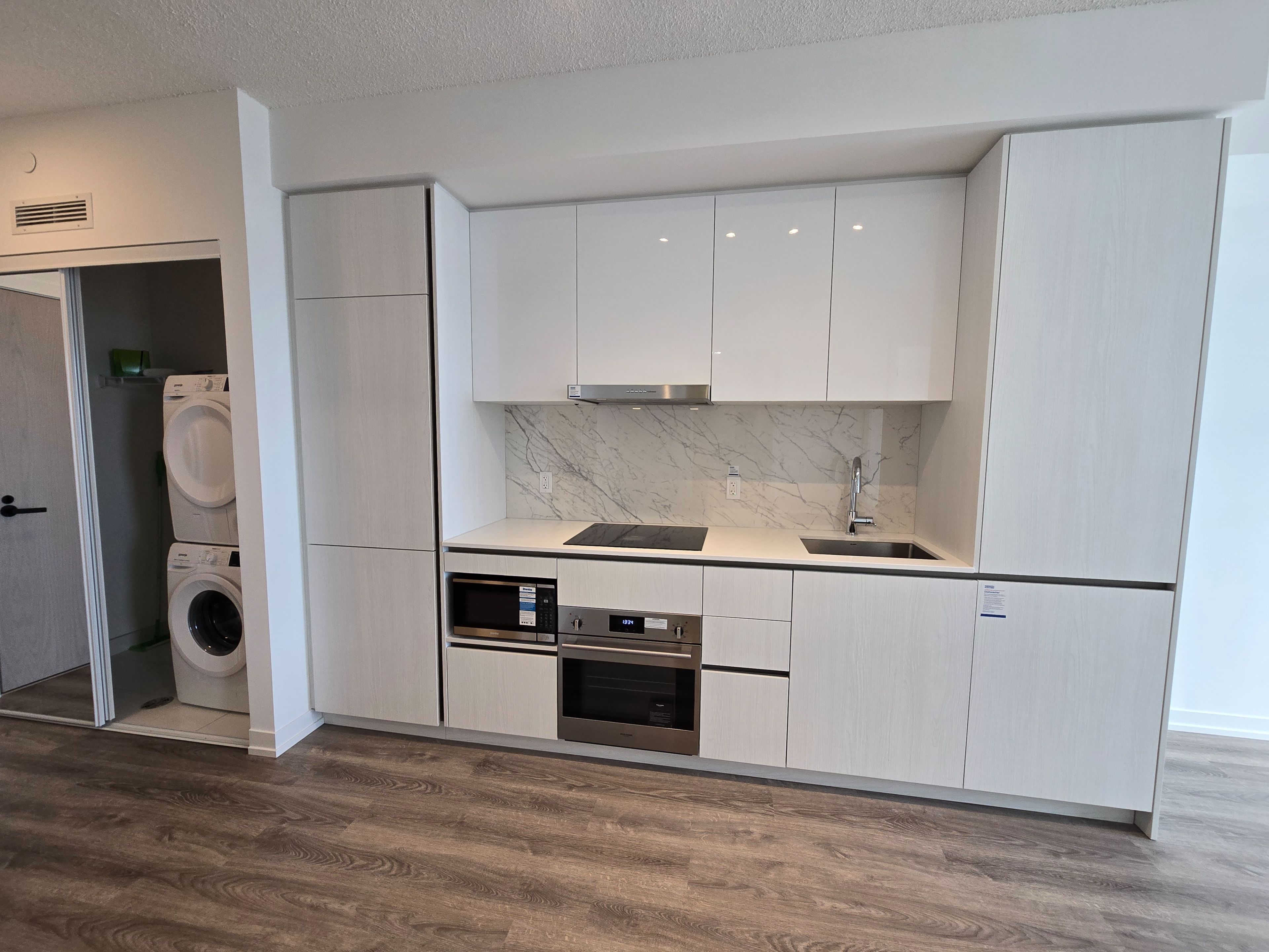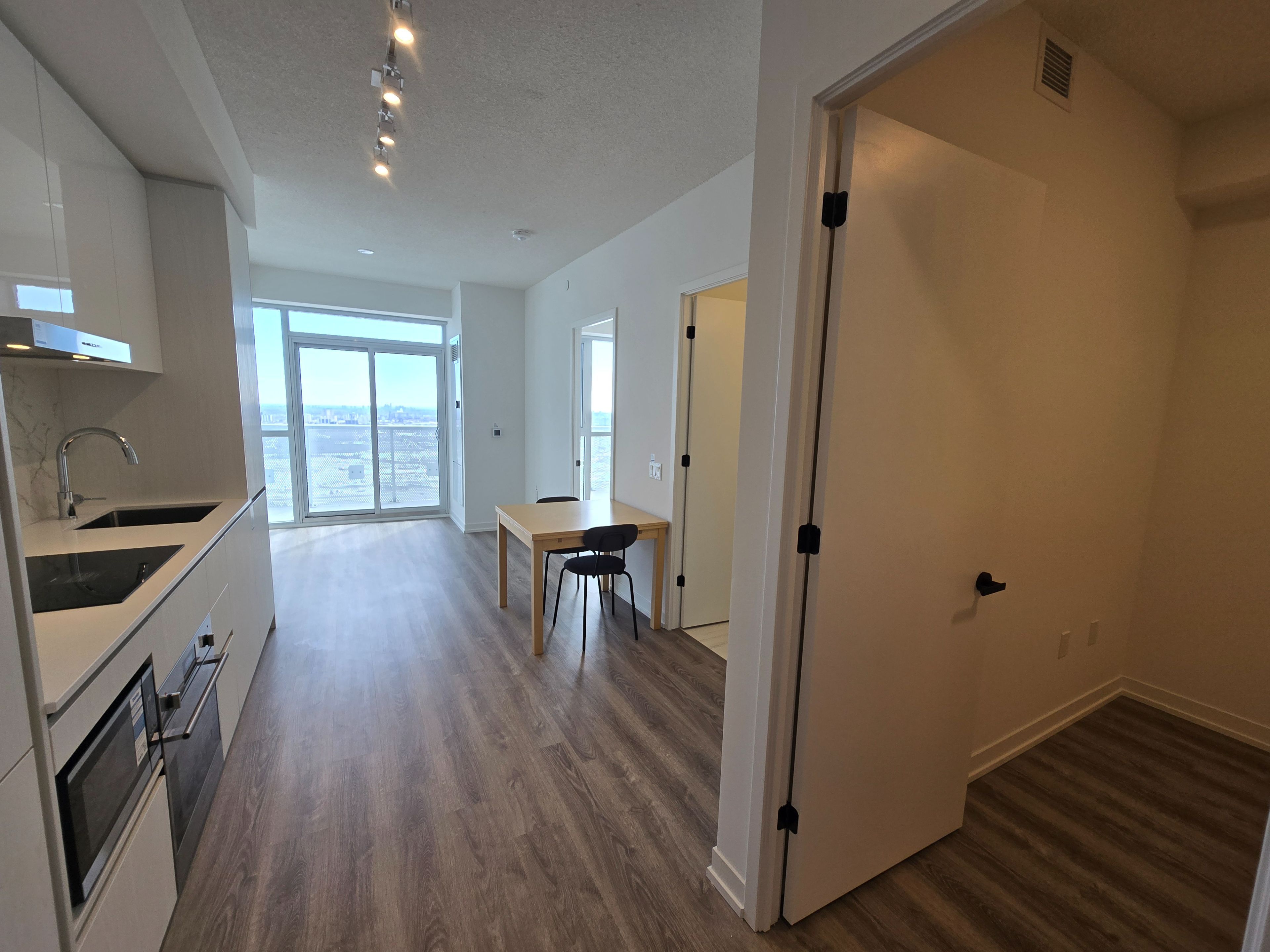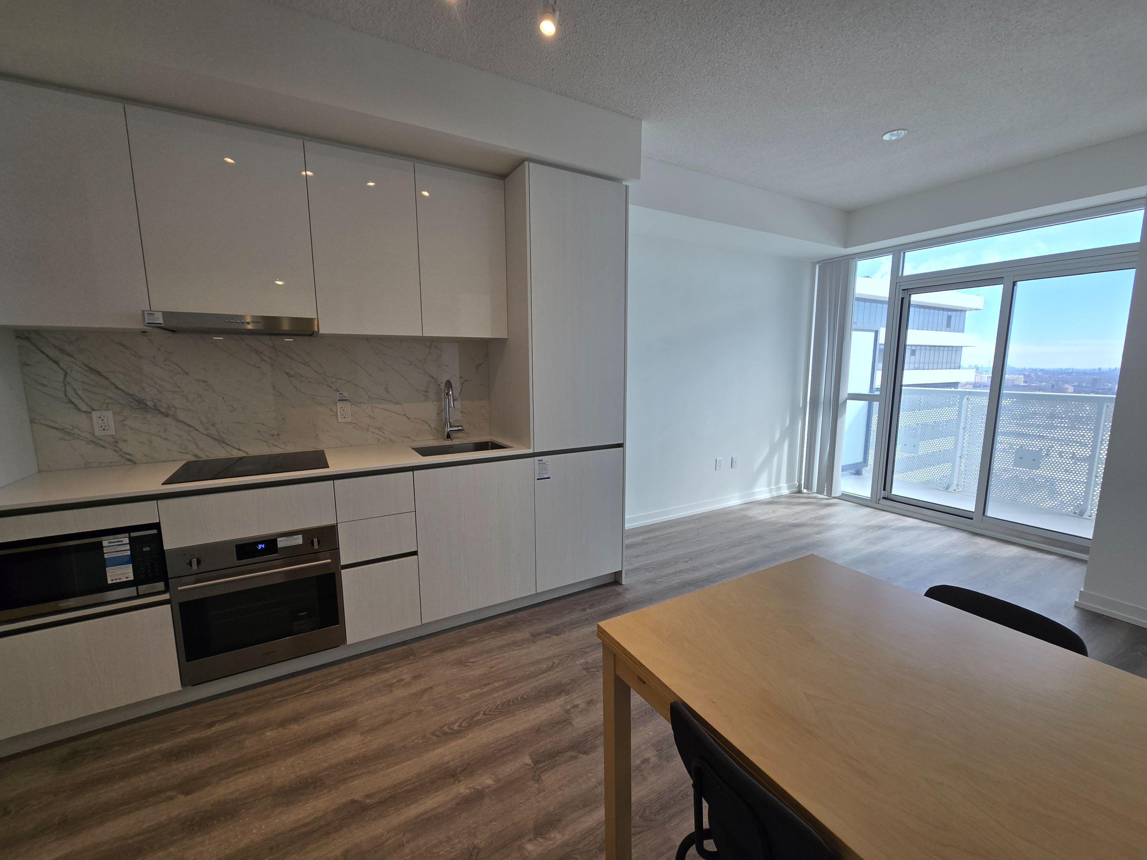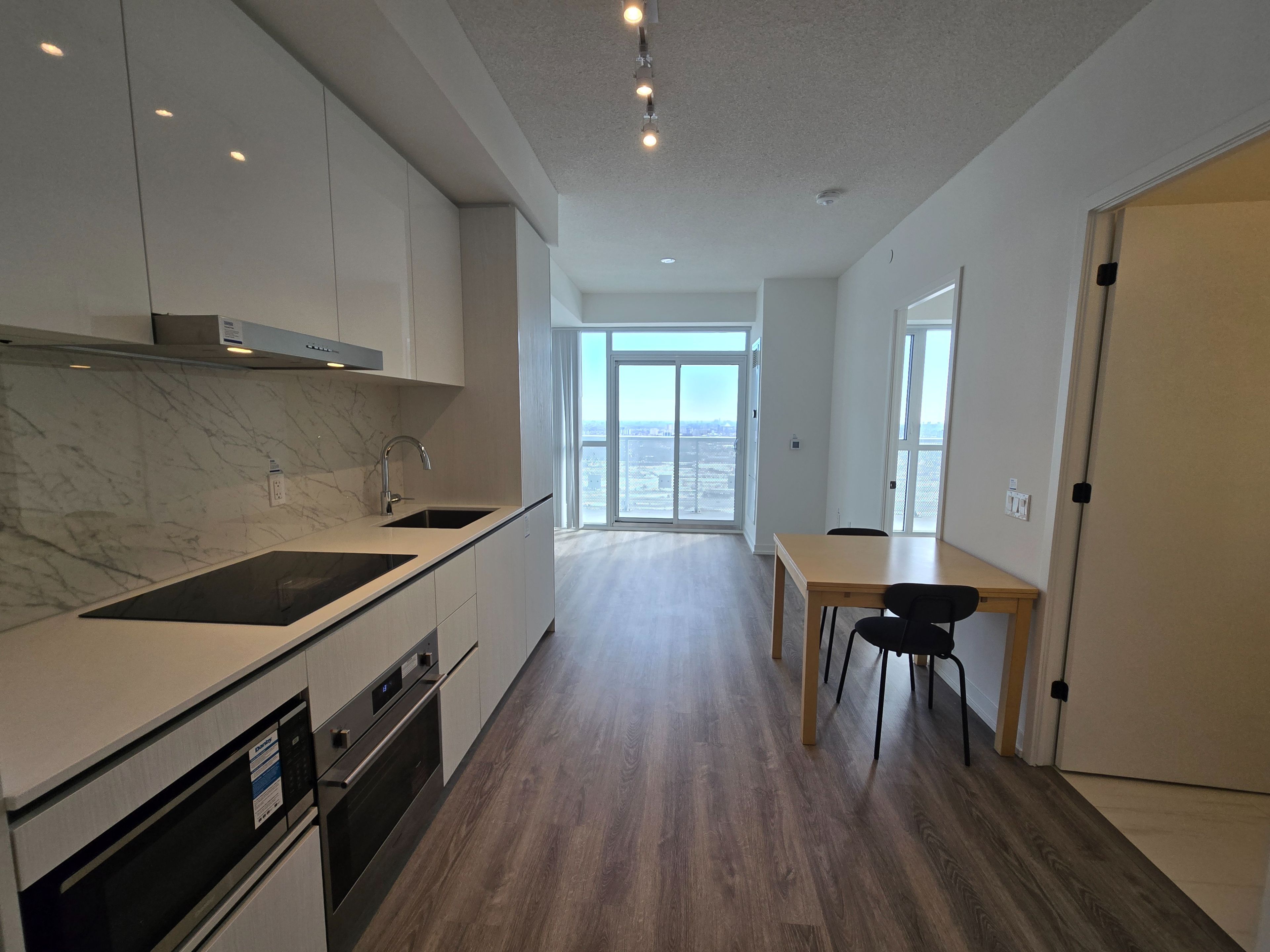 Brand new luxury 1 bed + den, 1 bath at grand festival condo! Literally unobstructed all day light south view. Spacious separate den(8. 4*7. 9ft) with light fixture/room door can be useful for 2nd bedrm or multi-purposes. Bright spacious open-concept(no waste space!), 9ft ceiling with floor-to-ceiling windows surrounded. Built-in appliances w/ quartz countertop and custom backsplash. Large double closet in bedrm. Steps to everything from vmc, subway, transit, hwy400/407, hospital, shopping, restaurants, ikea, walmart to much more.
