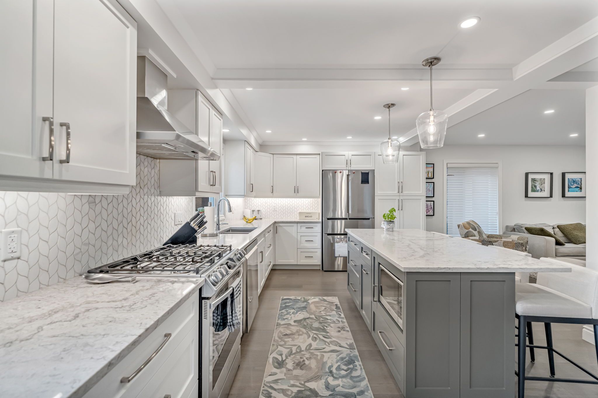 • Open concept main floor with a modern chef's kitchen and dining area.