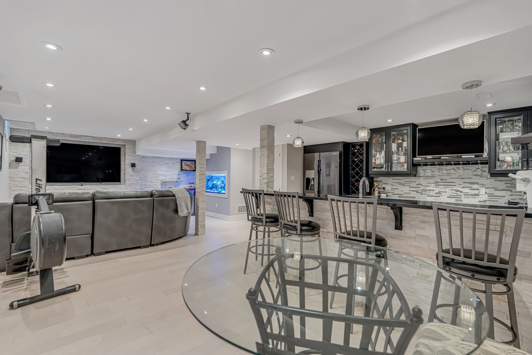 Welcome to this beautifully upgraded 4+1 bedroom, 3+2 bath home offering nearly 2,900 sqft of total finished living space on a generous 45 x 151 ft lot. Designed with versatility and modern living in mind, this property is ideal for growing families or multi-generational living. The newly renovated main floor (2023) features an open concept living and dining space, chef's kitchen with premium stainless steel appliances, including a gas stove and bosch refrigerator, and ample cabinetry for storage. Convenient inside entry from the double garage adds everyday functionality. The finished basement impresses with a full in-law suite, featuring a custom kitchen/bar with granite countertops, modern black stainless steel appliances, glass display cabinets, and a stylish stone accent wall framing a gas fireplace. Upstairs, the primary suite offers a true retreat with an expanded walk-in closet and a spa-inspired 5-piece ensuite, showcasing his-and-hers sinks, a glass shower, and a luxurious soaker tub. Three additional spacious bedrooms and a full bathroom provide plenty of room for family, guests, or a dedicated home office. Perfectly situated close to waterdown's downtown, schools, and local trails, this home combines modern comfort, thoughtful design, and a fantastic location. This is not one to miss!