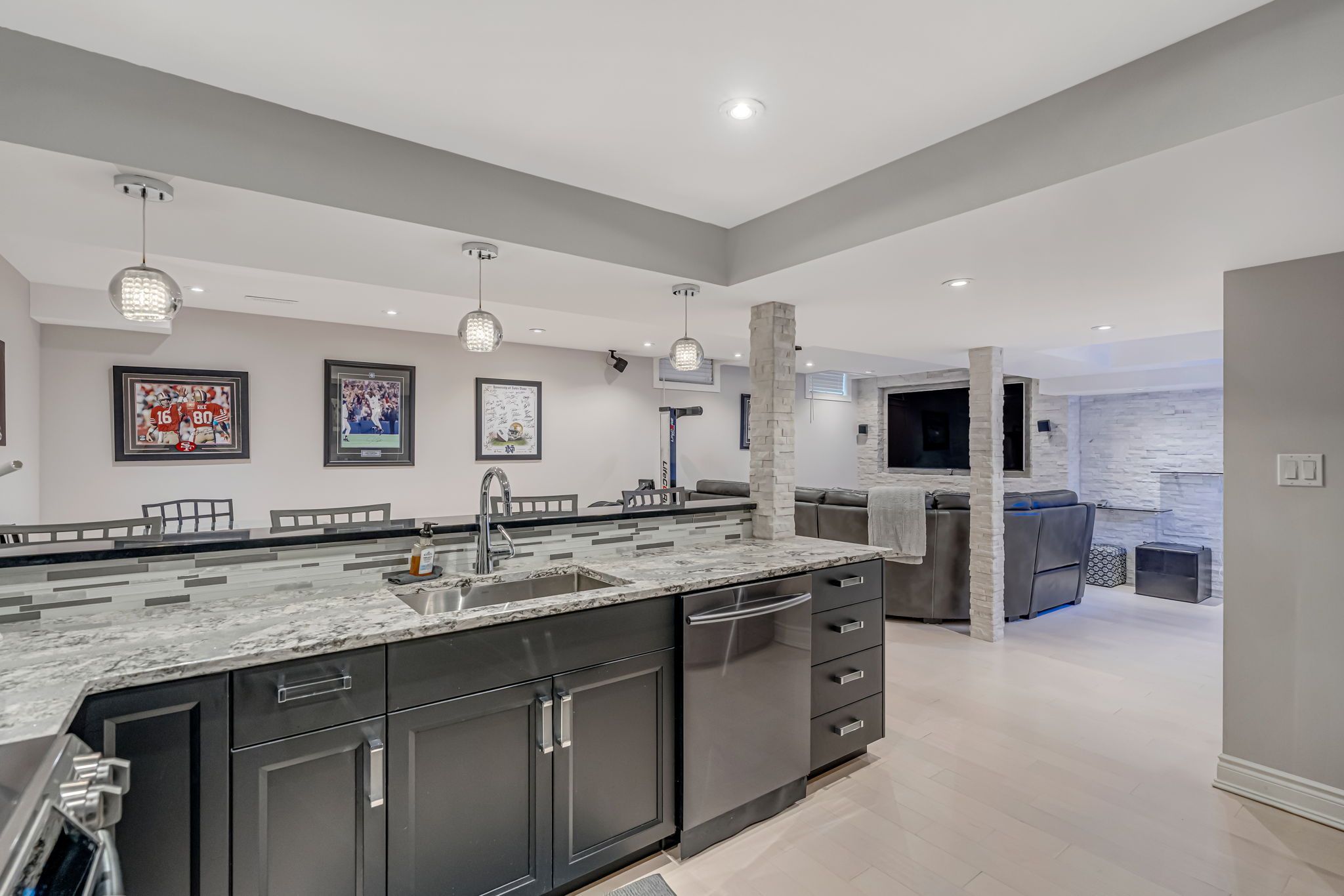 • Finished basement featuring a custom in-law suite with kitchen and gas fireplace.