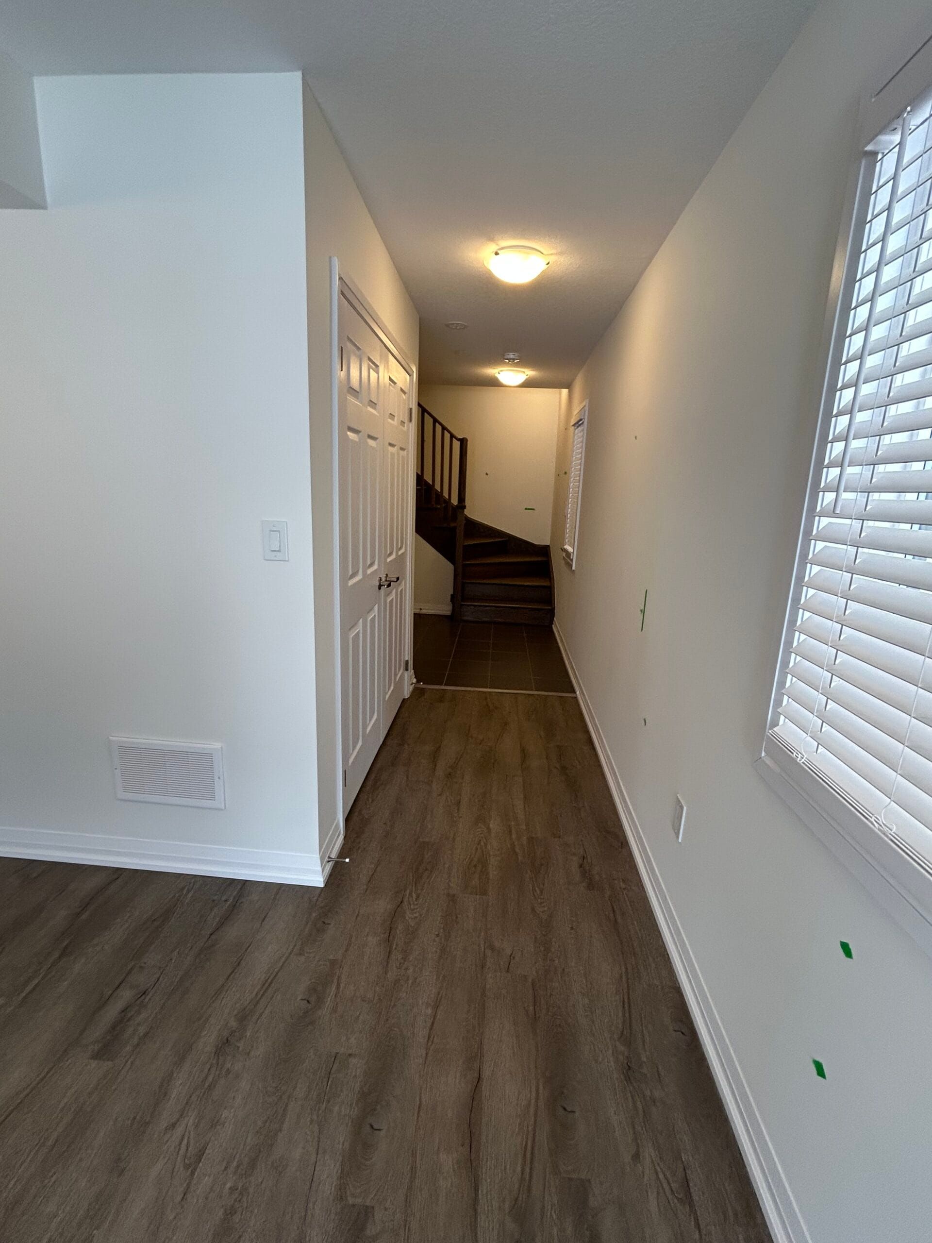 This spacious three-story freehold townhouse, built by empire communities. Is located in the heart of caledonia and offers 1690 square feet of modern, comfortable living. The home is filled with natural light and features well-appointed living spaces and stylish finishes throughout. The main level provides ample space for a busy family and a conveniently located laundry area. On the second floor, a bright living area flows seamlessly into the kitchen and dining space, creating an ideal environment for everyday living and entertaining. The kitchen is super functional, with stainless steel appliances, a standout feature of this home is its private balcony from the living area which is perfect for morning coffee, evening sunsets, or fresh-air gatherings. The primary bedroom on the third floor includes a walk-in closet and an ensuite, and another private balcony access two additional generous bedrooms for family, guests, or office. Desirable neighborhood. This unit is perfect for first time buyer. Just steps from all daily conveniences-shopping, restaurants, and parks, with easy access to hamilton international airport, mount hope, port dover, and major highways including hwy 6 and hwy 403. Property taxes to be re-assessed. *for additional property details click the brochure icon below*