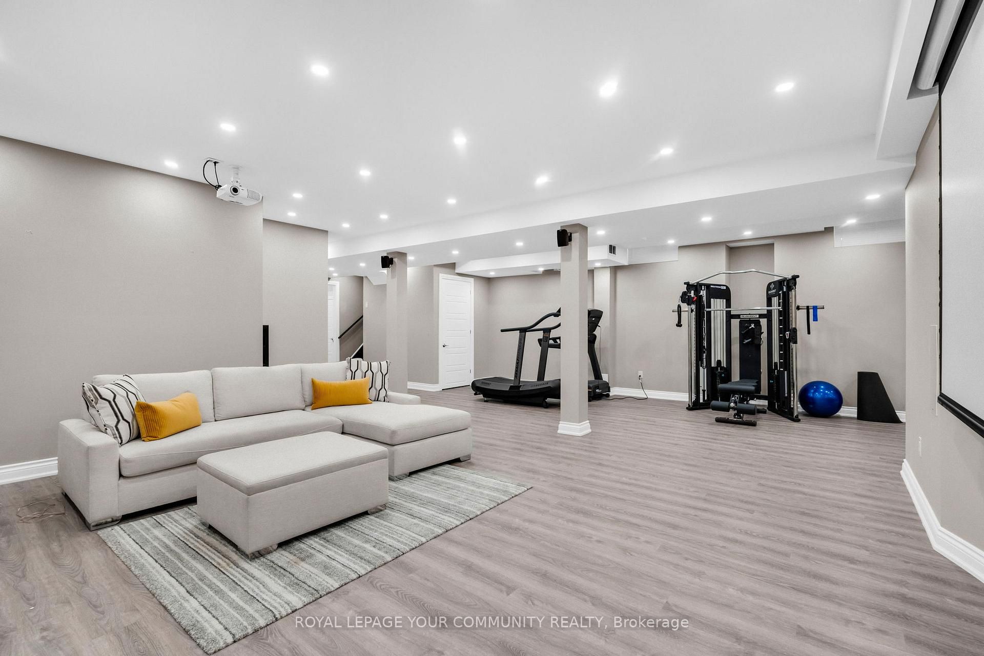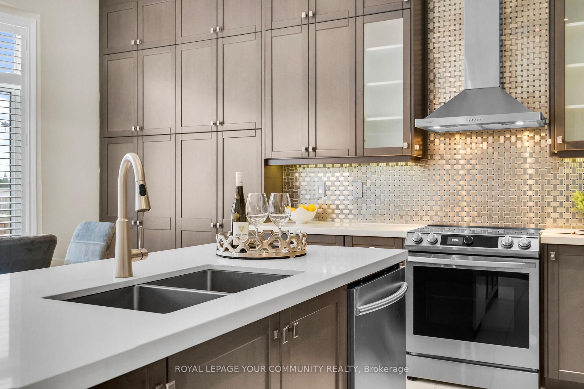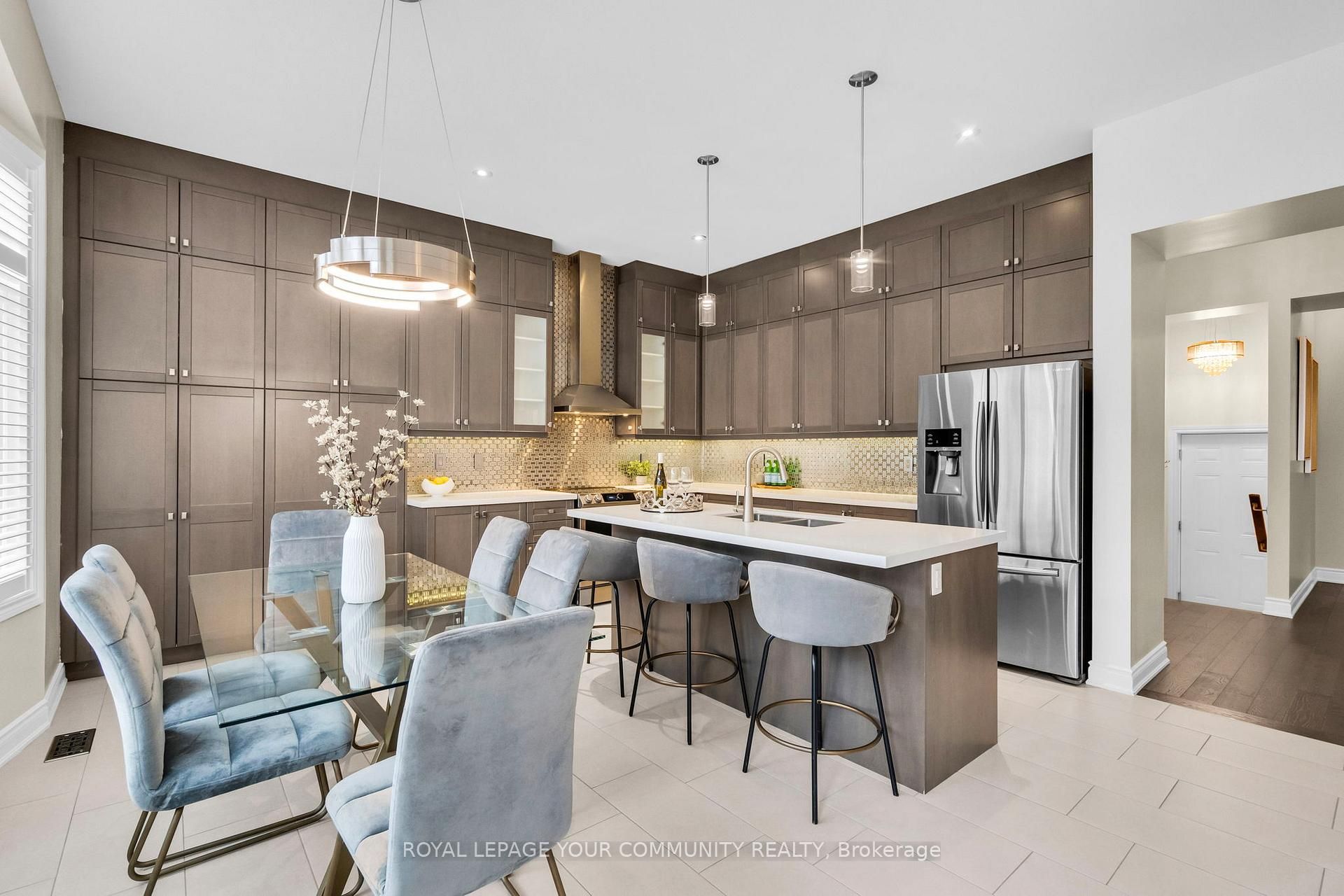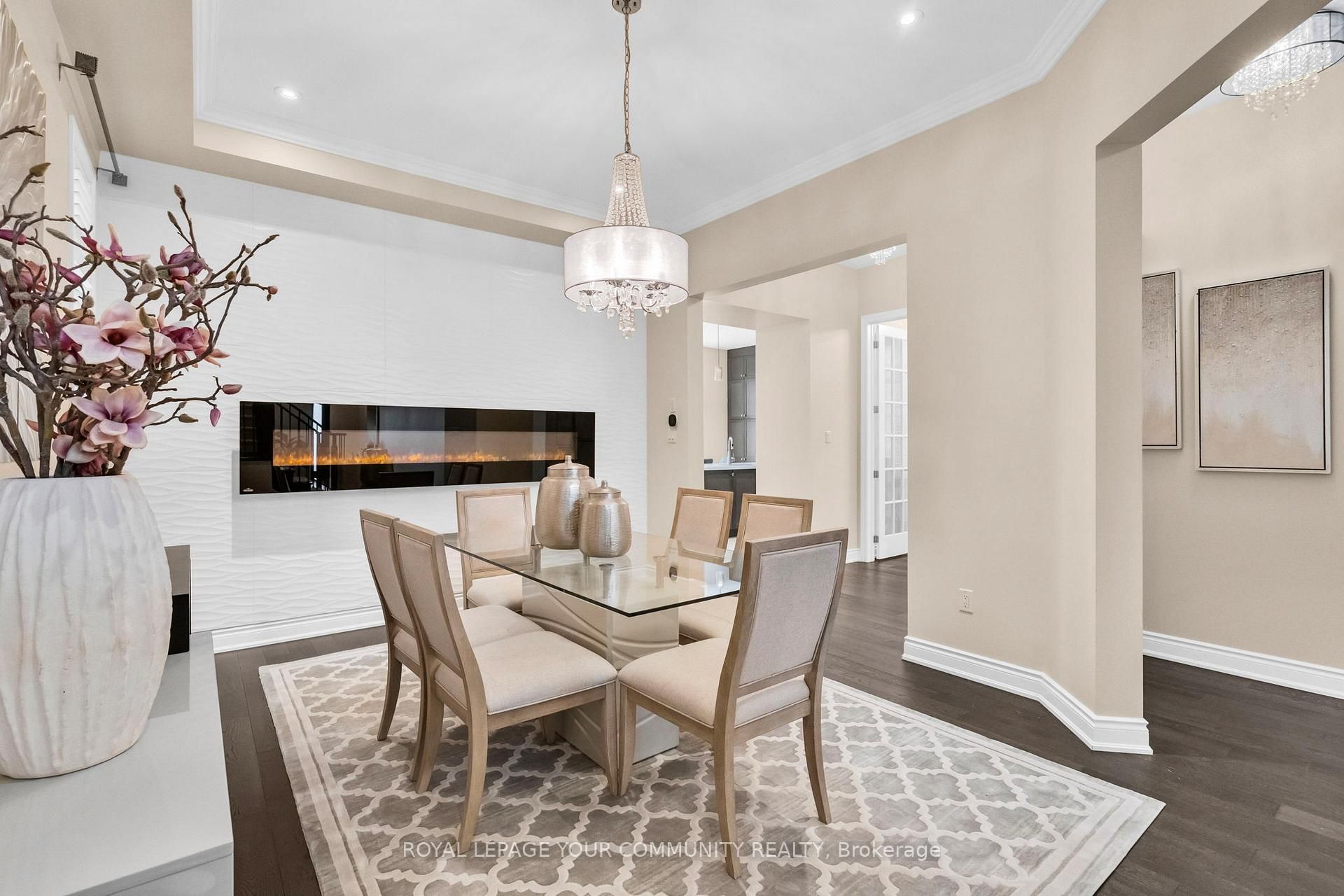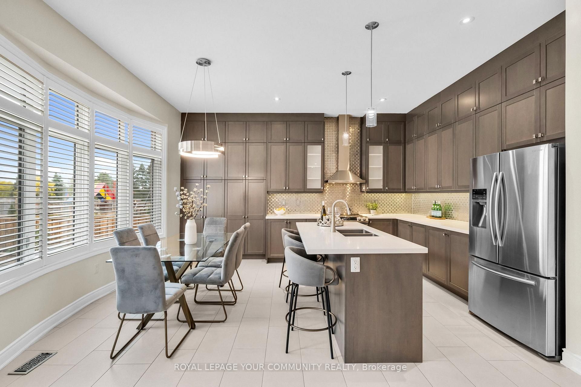 Welcome to lucky number 8 king boulevard, an elegant fully renovated home in a peaceful residential pocket of king city. Perfectly positioned across from a school park with no neighbors in front, this home blends comfort and style. Step inside to soaring 10 foot ceilings, abundant natural light, and above average finishes throughout. The gourmet kitchen is a showpiece with custom cabinetry, a stylish backsplash, a large quartz countertop with a breakfast bar, and a bright breakfast area overlooking the backyard. The family room is warm and inviting with a gas fireplace, built in shelves, and surround sound speakers. The dining room features an electric fireplace that creates a refined setting for entertaining. A formal office with french doors adds flexibility and elegance. Upstairs, the oversized primary bedroom includes his and hers walk in closets, with one offering custom built ins and a secure safe. The second bedroom has its own 3 piece bathroom, while bedrooms three and four share a 4 piece bathroom with double sinks. An open loft and convenient laundry room complete the upper level. The finished basement offers a spacious recreation area currently set up as a home gym and media room with a projector screen and surround sound. A private bedroom and 3 piece bathroom provide space for guests or extended family. Step outside to the backyard oasis with a charming pergola, perfect for relaxing or entertaining. Families will love the quiet setting, top rated schools, nearby trails, parks, local shops, cafés, and easy access to transit and major routes. This exceptional home combines thoughtful design, quality upgrades, and an unbeatable location in the heart of king city. Double car garage, 10 ft ceilings, custom kitchen, main floor office, gas and electric fireplaces, loft and laundry upstairs, finished basement with media area and gym, pergola, 5 minute drive to the go station, 3 minutes to the king city arena & community centre.