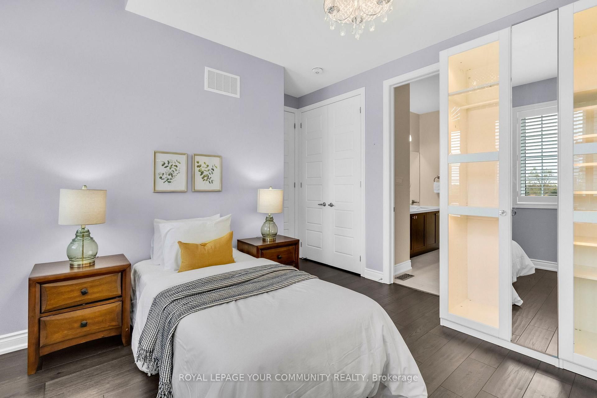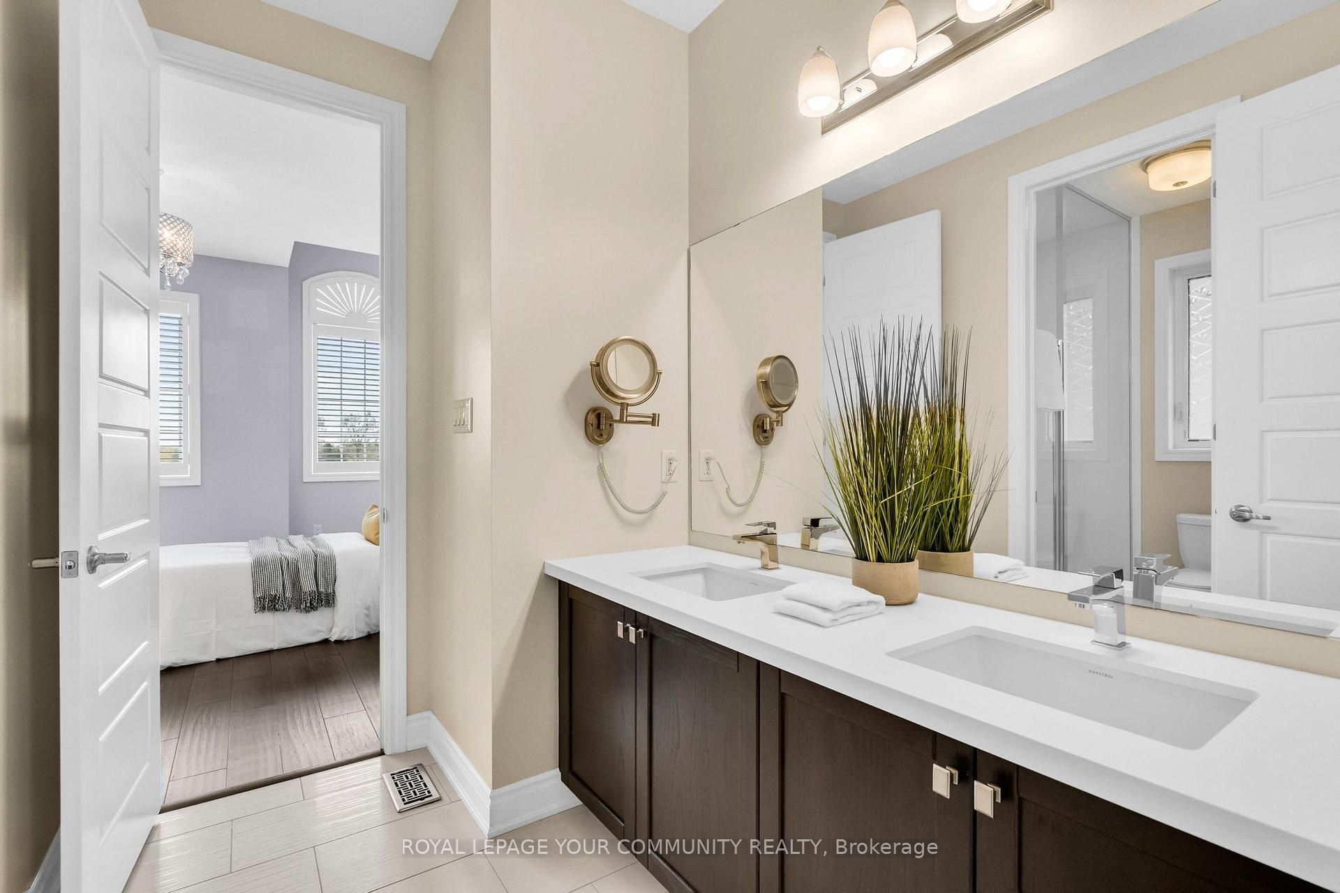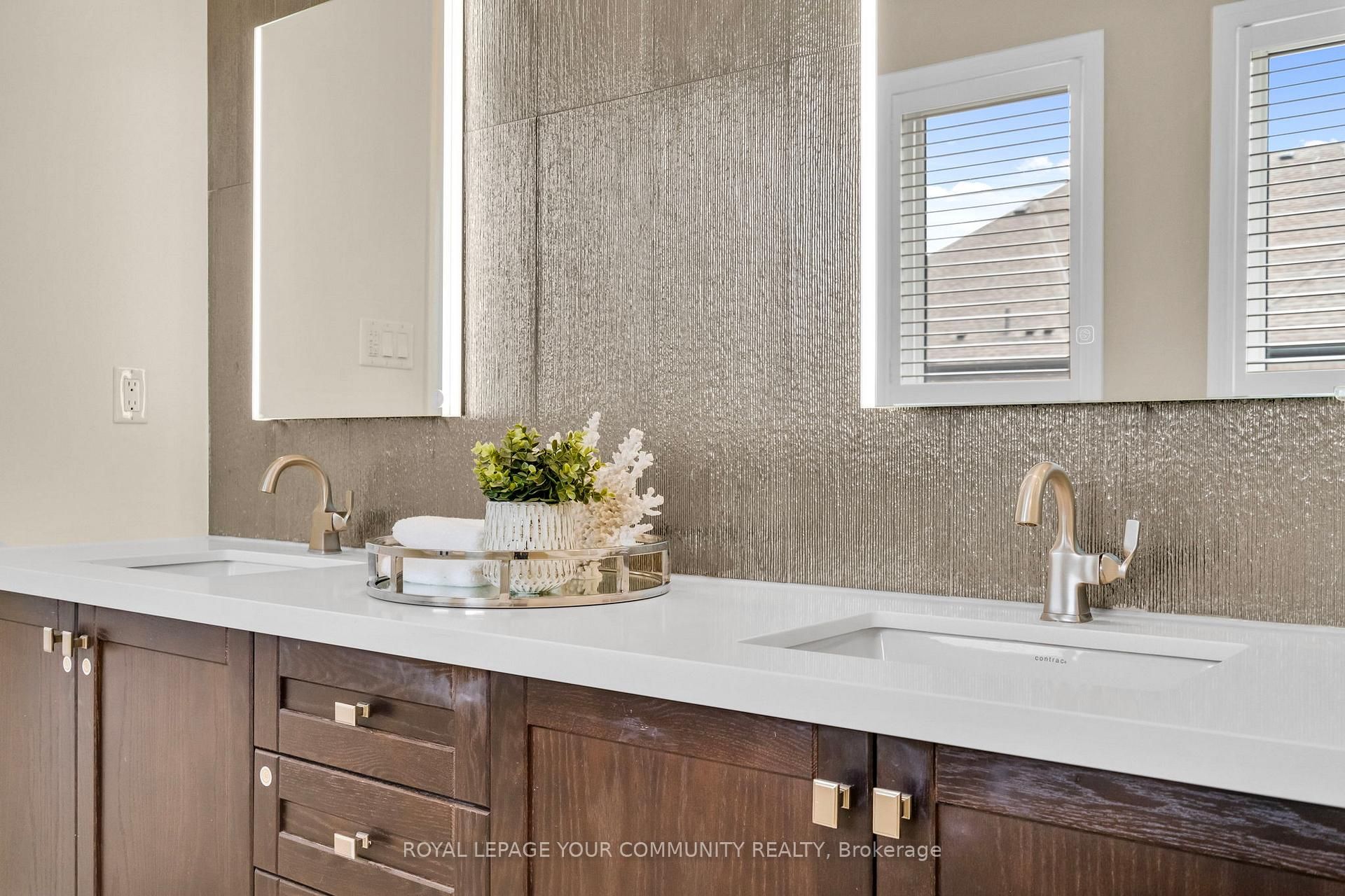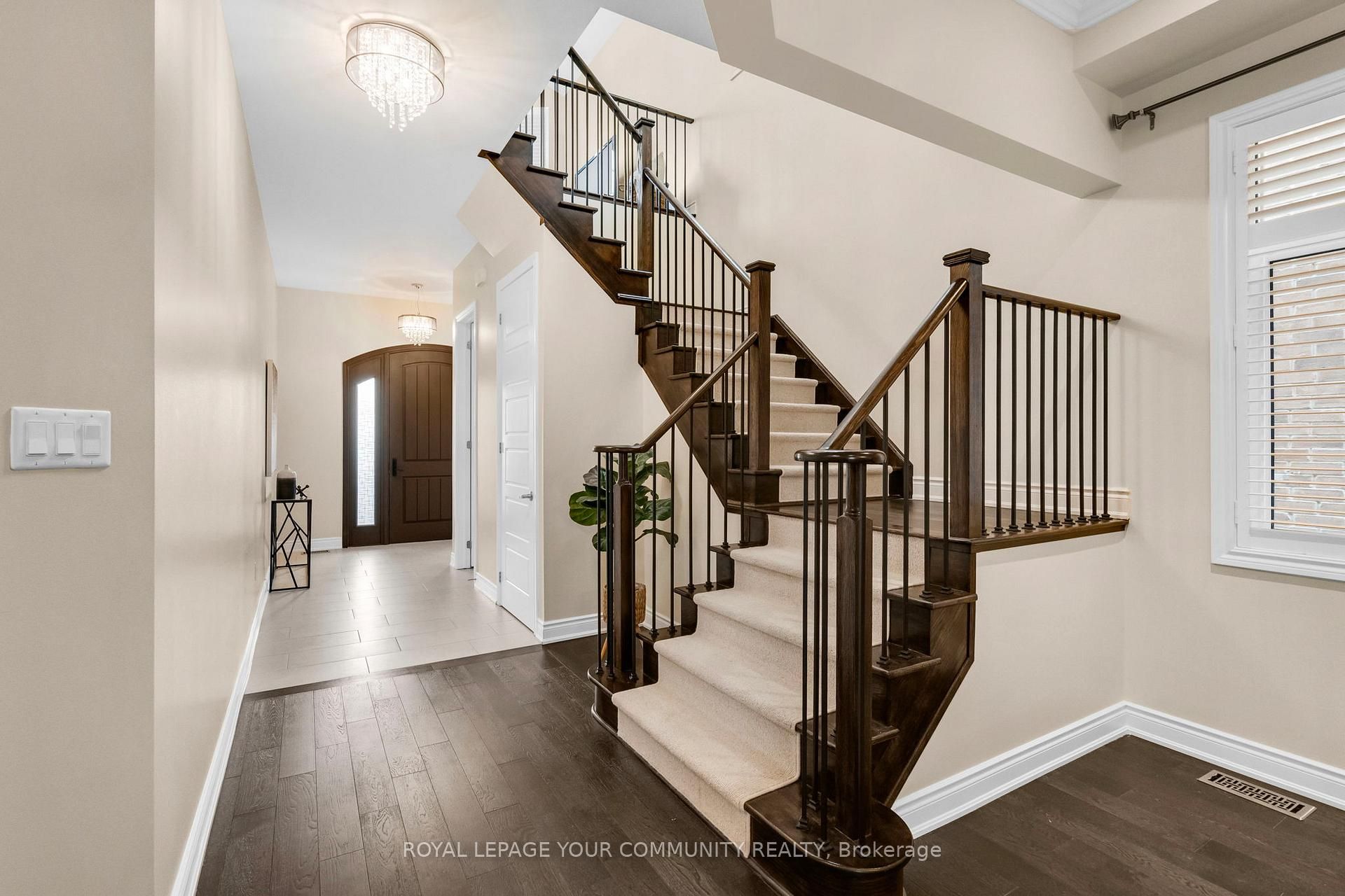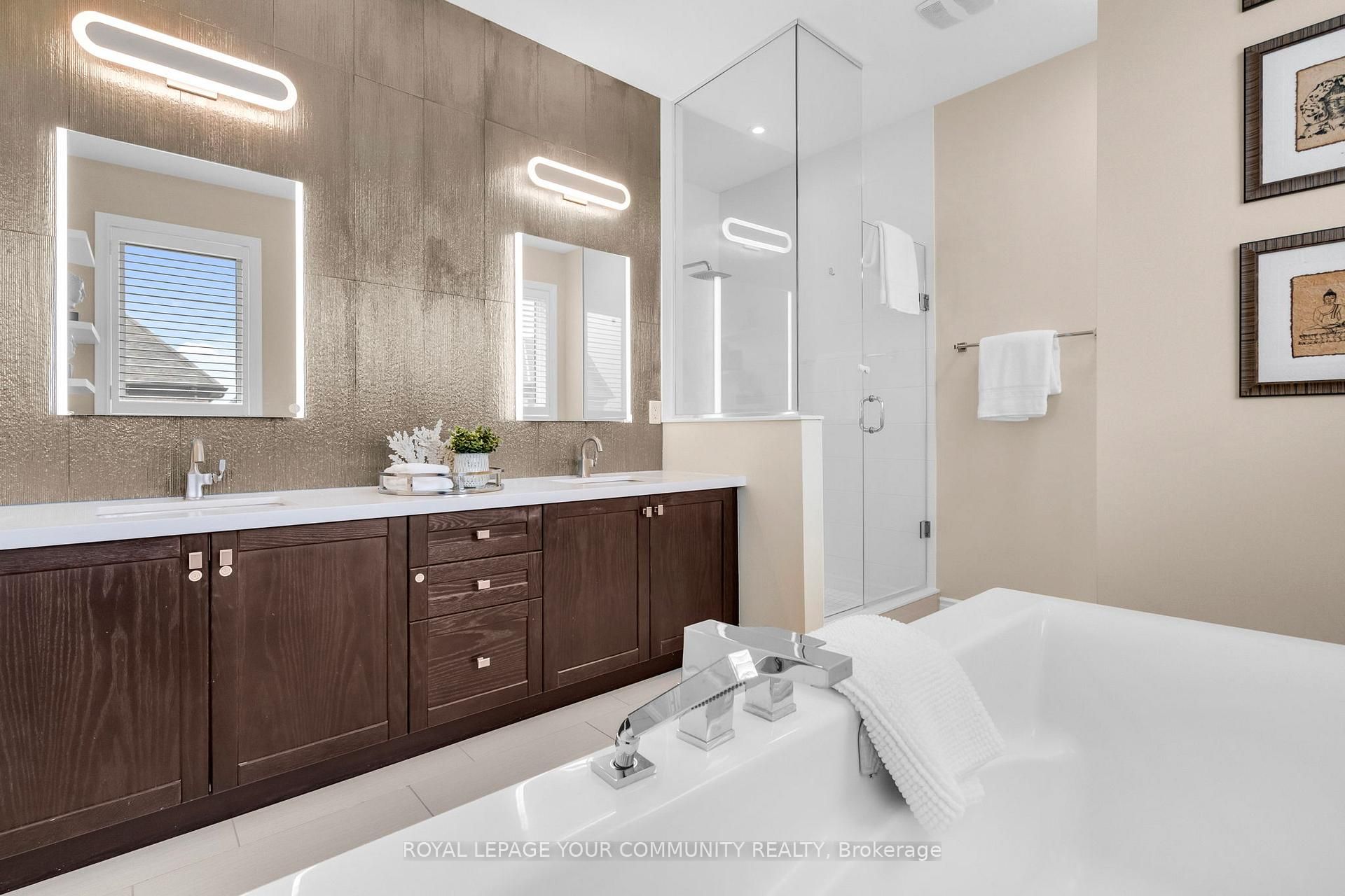 Welcome to lucky number 8 king boulevard, an elegant fully renovated home in a peaceful residential pocket of king city. Perfectly positioned across from a school park with no neighbors in front, this home blends comfort and style. Step inside to soaring 10 foot ceilings, abundant natural light, and above average finishes throughout. The gourmet kitchen is a showpiece with custom cabinetry, a stylish backsplash, a large quartz countertop with a breakfast bar, and a bright breakfast area overlooking the backyard. The family room is warm and inviting with a gas fireplace, built in shelves, and surround sound speakers. The dining room features an electric fireplace that creates a refined setting for entertaining. A formal office with french doors adds flexibility and elegance. Upstairs, the oversized primary bedroom includes his and hers walk in closets, with one offering custom built ins and a secure safe. The second bedroom has its own 3 piece bathroom, while bedrooms three and four share a 4 piece bathroom with double sinks. An open loft and convenient laundry room complete the upper level. The finished basement offers a spacious recreation area currently set up as a home gym and media room with a projector screen and surround sound. A private bedroom and 3 piece bathroom provide space for guests or extended family. Step outside to the backyard oasis with a charming pergola, perfect for relaxing or entertaining. Families will love the quiet setting, top rated schools, nearby trails, parks, local shops, cafés, and easy access to transit and major routes. This exceptional home combines thoughtful design, quality upgrades, and an unbeatable location in the heart of king city. Double car garage, 10 ft ceilings, custom kitchen, main floor office, gas and electric fireplaces, loft and laundry upstairs, finished basement with media area and gym, pergola, 5 minute drive to the go station, 3 minutes to the king city arena & community centre.