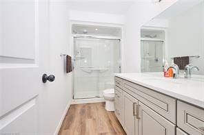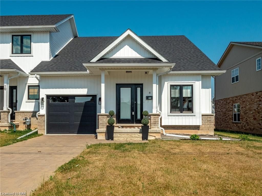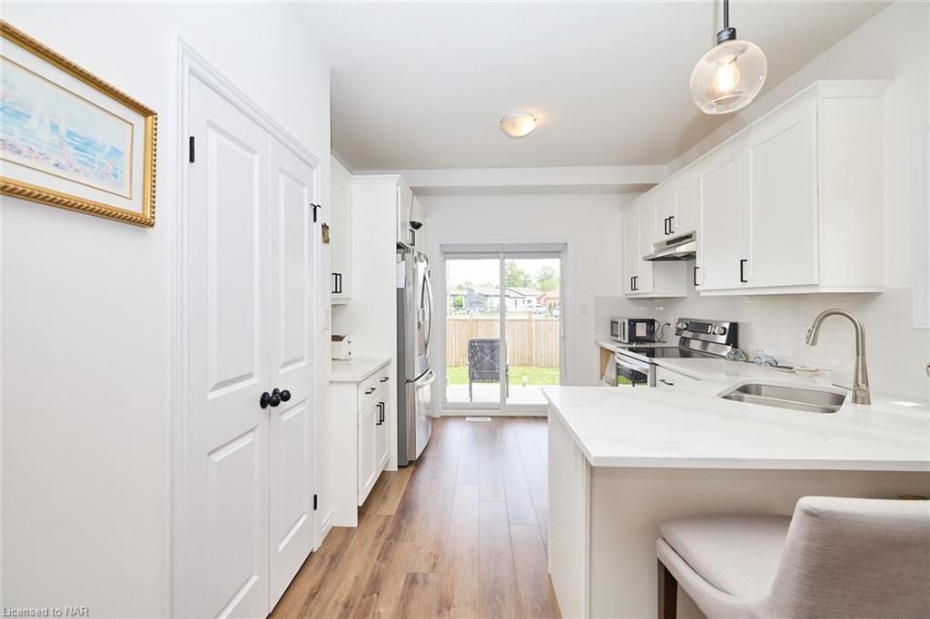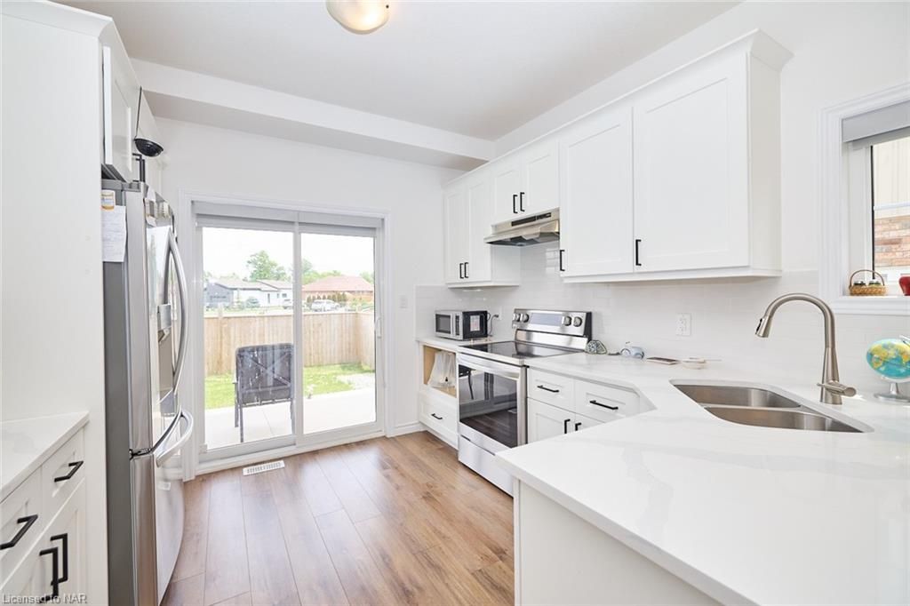 Highly sought after freehold end unit with convenient main floor living designed for comfort & ease! This immaculate 5 year old, 3 bedroom, 2. 5 bathroom is sure to impress you. Features include open concept, 9' ceilings, kitchen with breakfast bar, elegant quartz countertops, plenty of cabinets, & patio doors to the spacious fenced back yard, convenient main floor laundry, 2 pc bathroom, large main floor primary bedroom with 2 closets with one being a spacious walk-in, 3pc ensuite with walk-in shower & door to the partly covered back patio. Upstairs you'll find a 4 pc bathroom and 2 very spacious bedrooms. The basement is unfinished and features high ceilings & large windows. End units are a rare find. You won't want to miss out on this one! Close to usa border, shopping, qew.