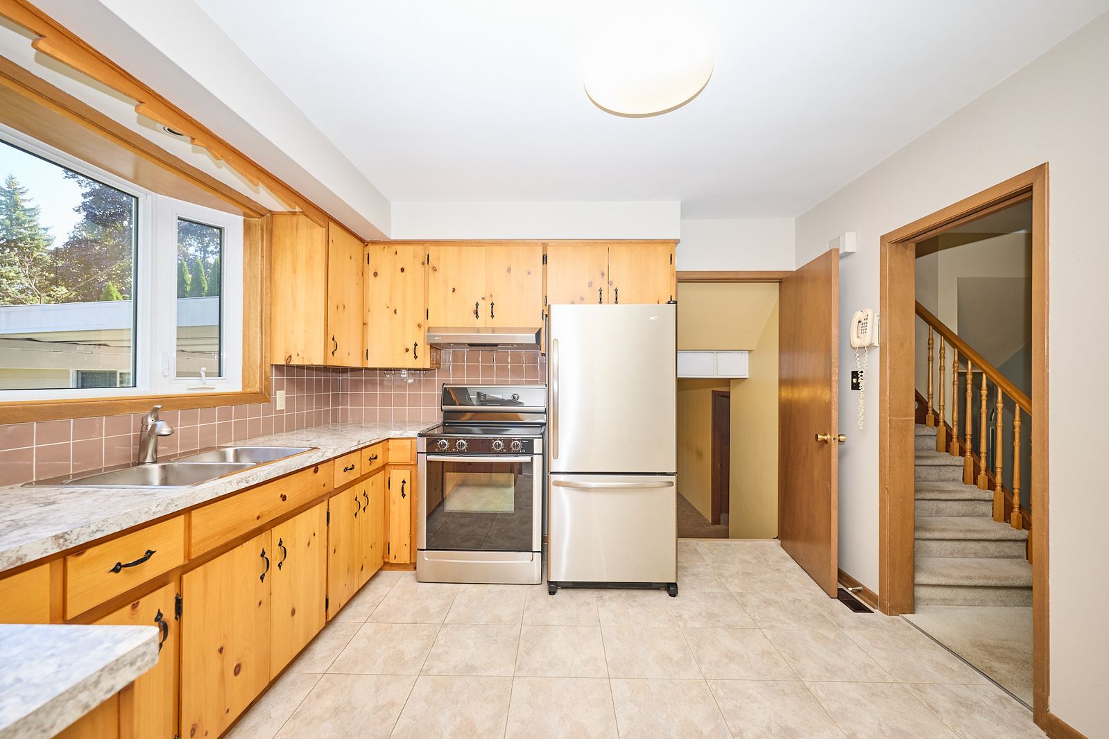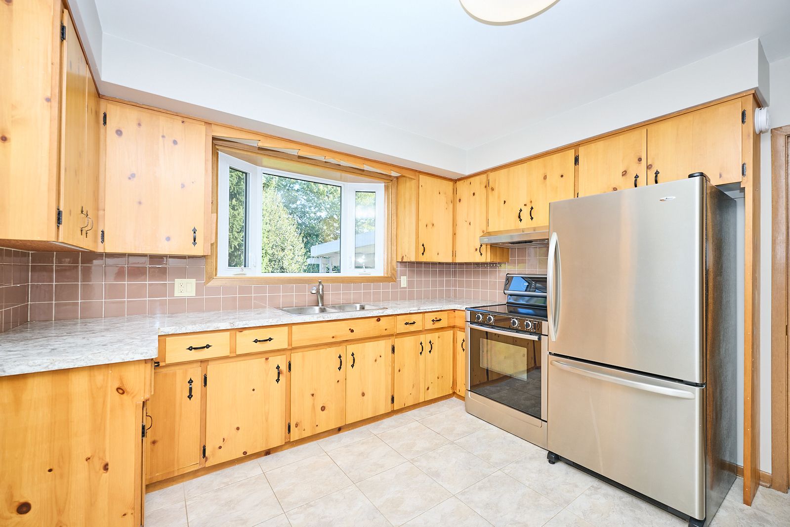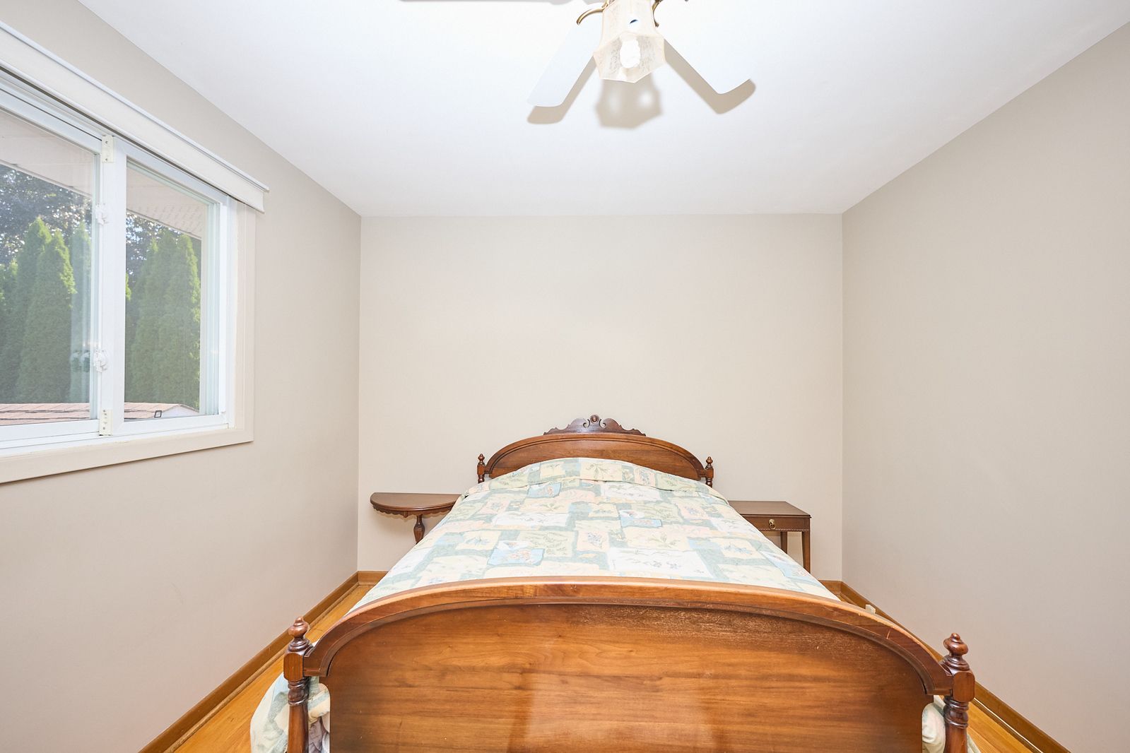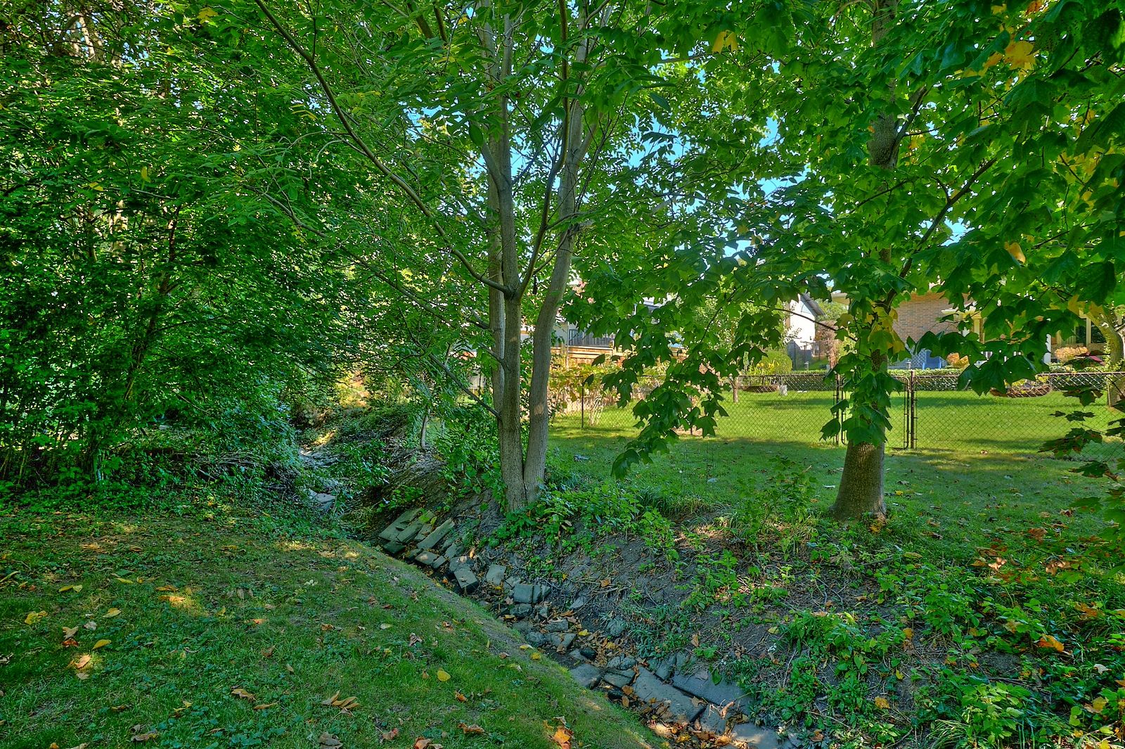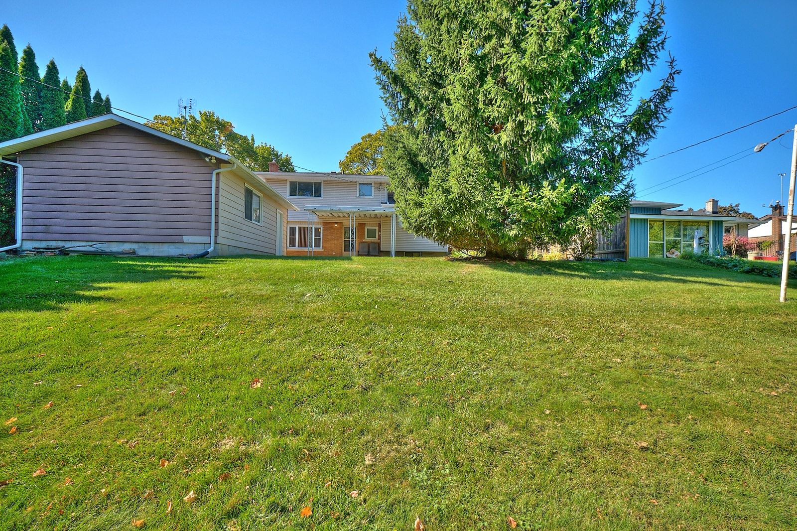 Offered for the first time since 1972, this cherished four-level side-split is situated in a highly desirable north-end location with the rare advantage backing directly onto a peaceful creek. The functional layout begins with a spacious foyer leading to a bright main-floor family room anchored by a classic gas fireplace. This level also features a convenient guest bedroom and a powder room. The heart of the home offers a large living room and a formal dining room complete with a charming bay window overlooking the backyard, perfectly situated off the eat-in kitchen. The upper level has three good sized bedrooms, all featuring original hardwood flooring, and a full updated four-piece bath. For additional living space, the finished basement includes a recreation room and a laundry area with a dedicated shower. Outdoor features a covered rear patio. Hobbyists will appreciate the detached 18'x23' garage equipped with hydro, complemented by a large paved double driveway. Wiring 2019, furnance 2011, roof 2015