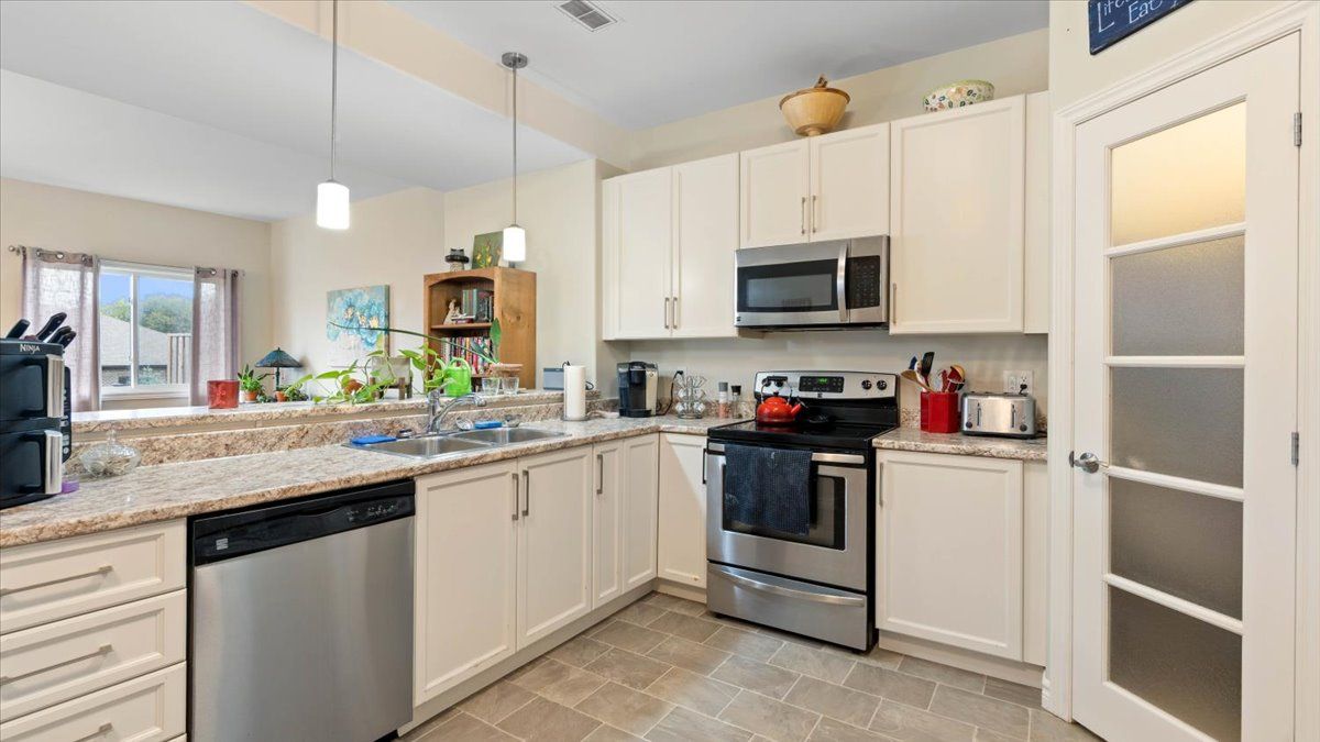 • Well-equipped kitchen with stainless steel appliances and walk-in corner pantry.