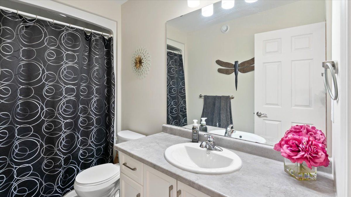 • Upstairs primary bedroom with walk-in closet and ensuite bathroom.